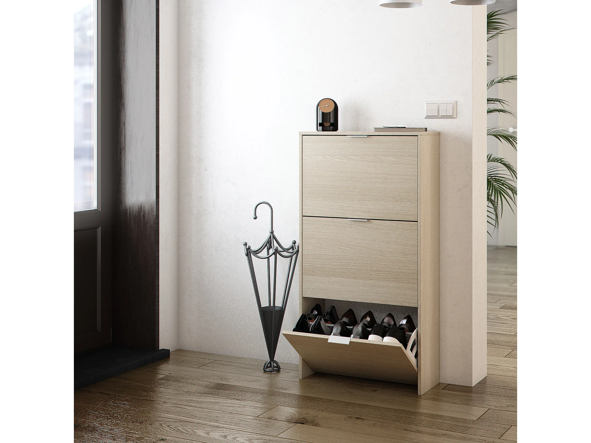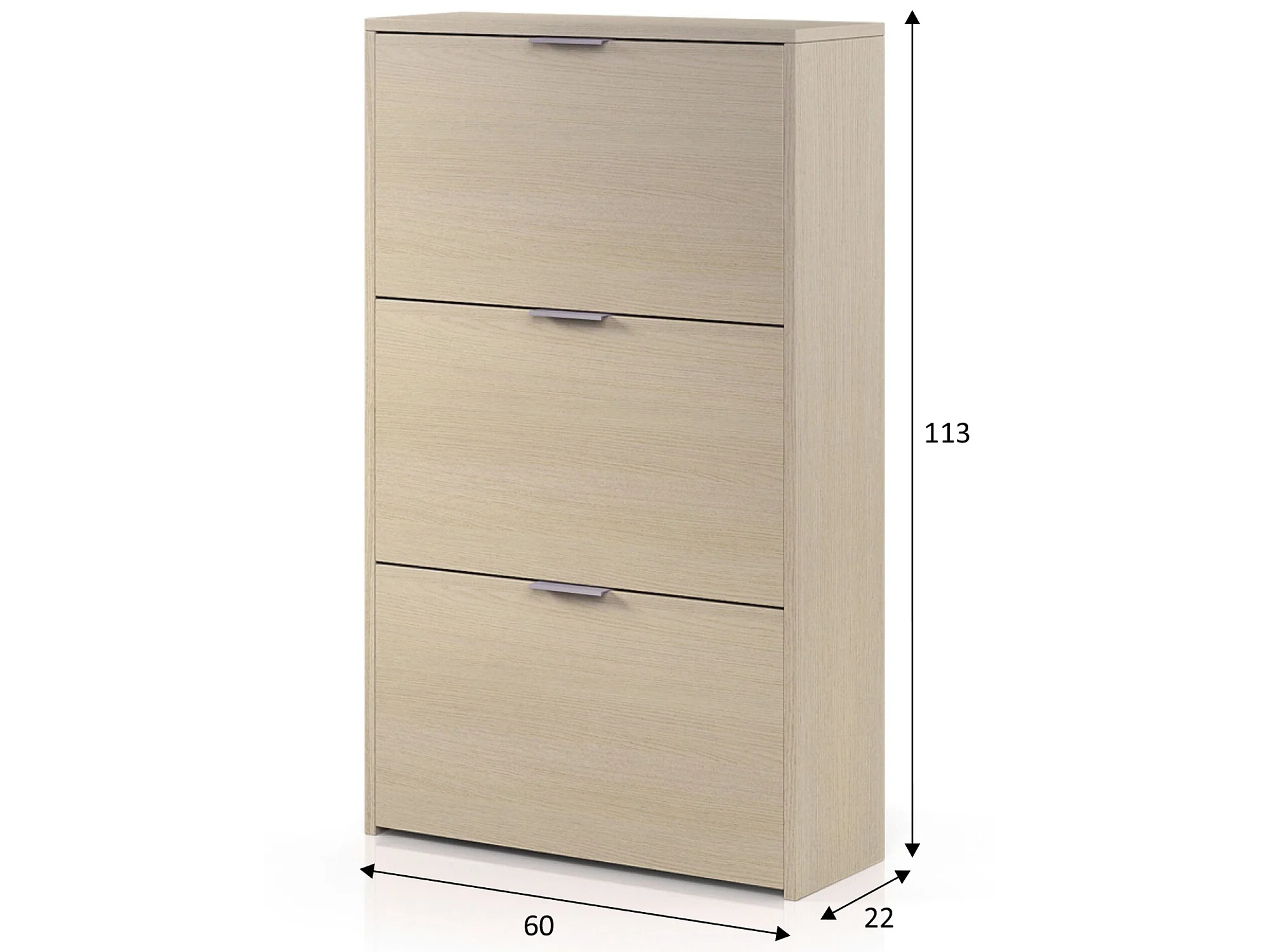 Meuble à Chaussures 3 Portes Rubi, Couleur Chêne, 60 cm Largeur
