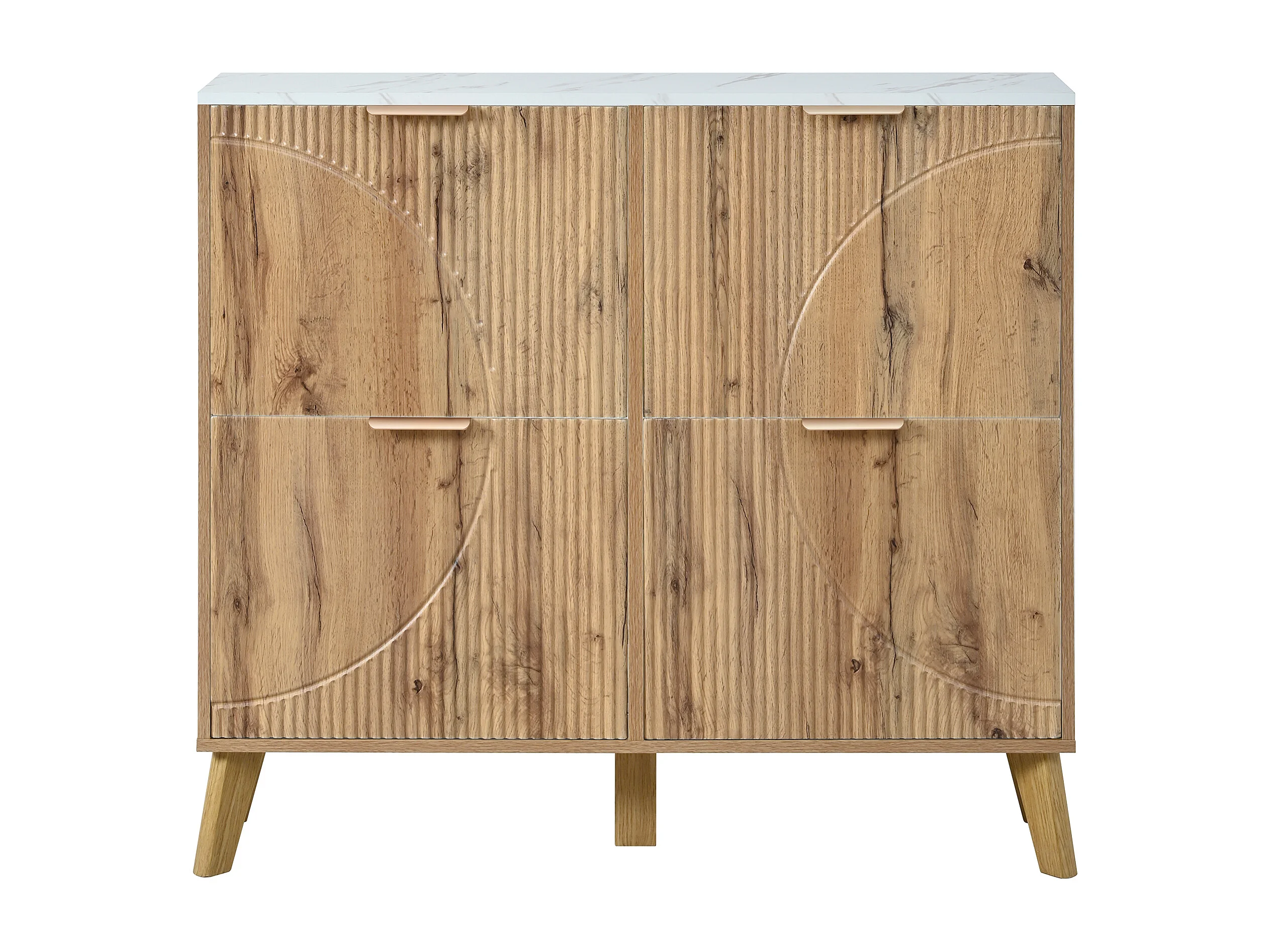 Meuble à chaussures 4 portes 105x24x95.5 cm - aspect bois - plateau effet marbre - MDF - Naturel