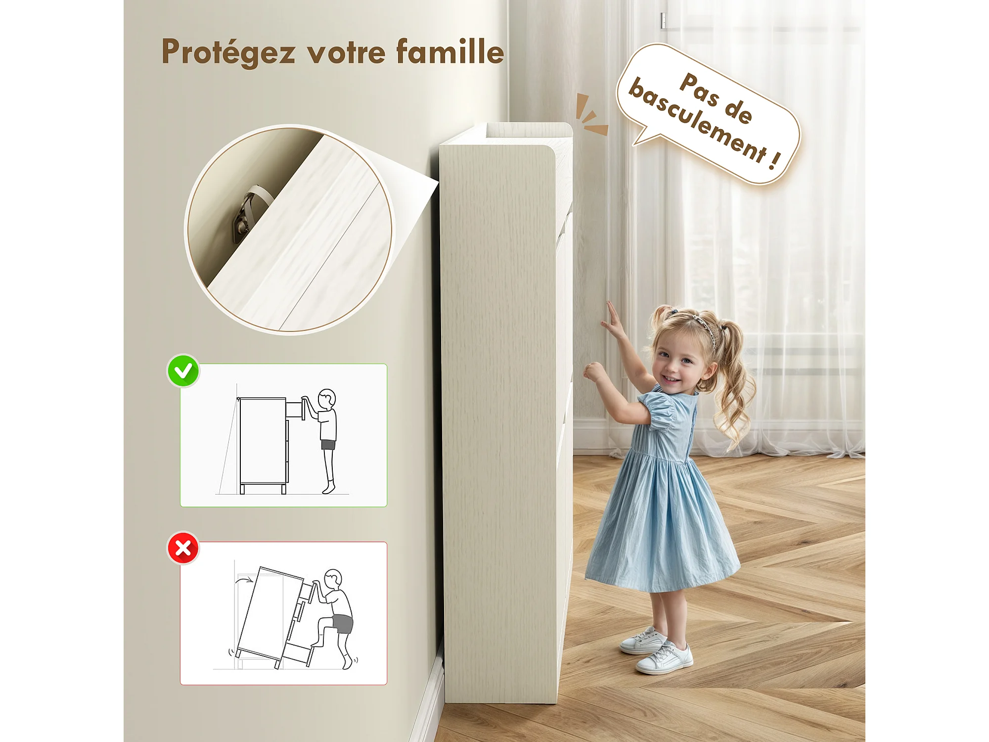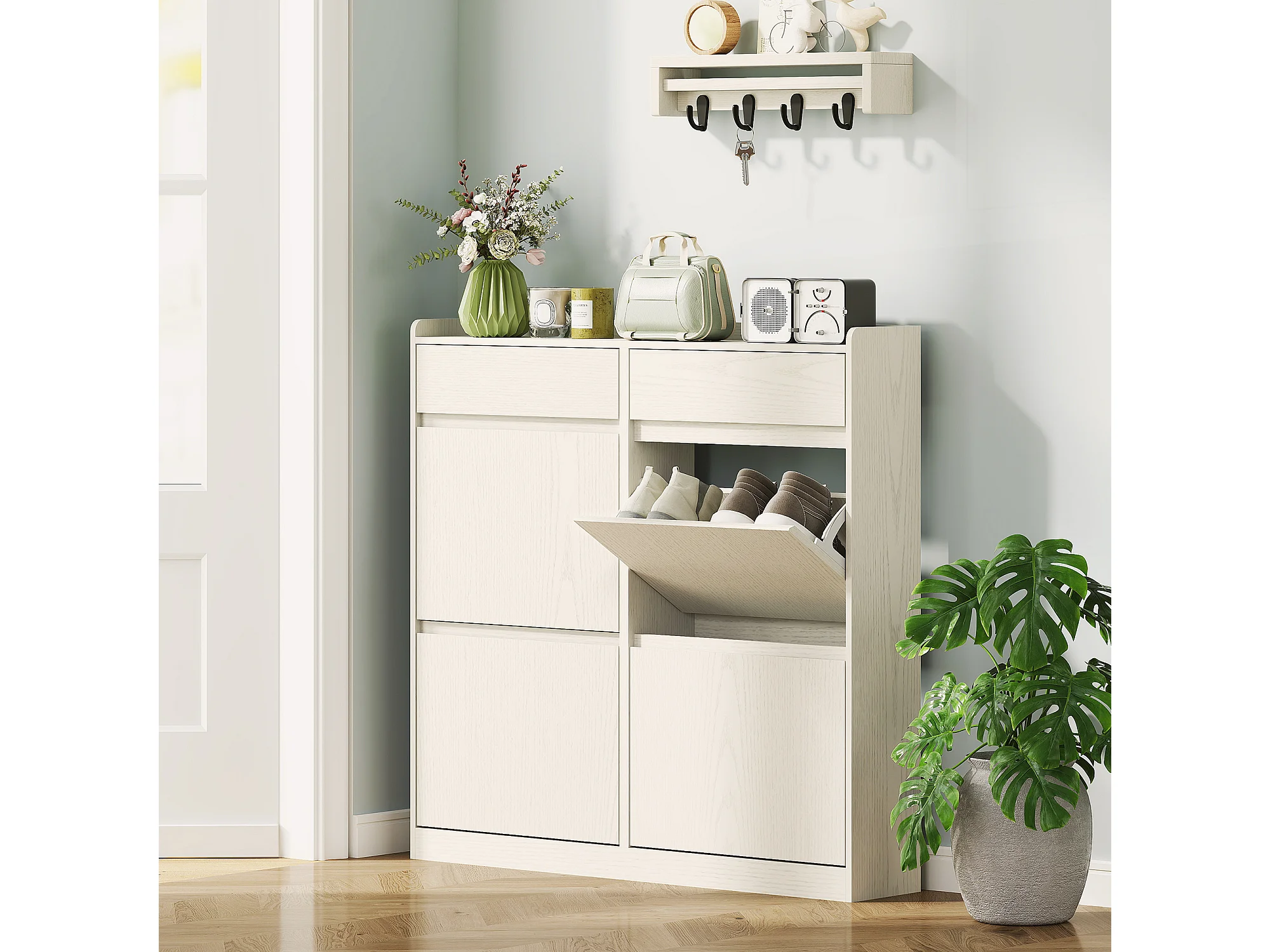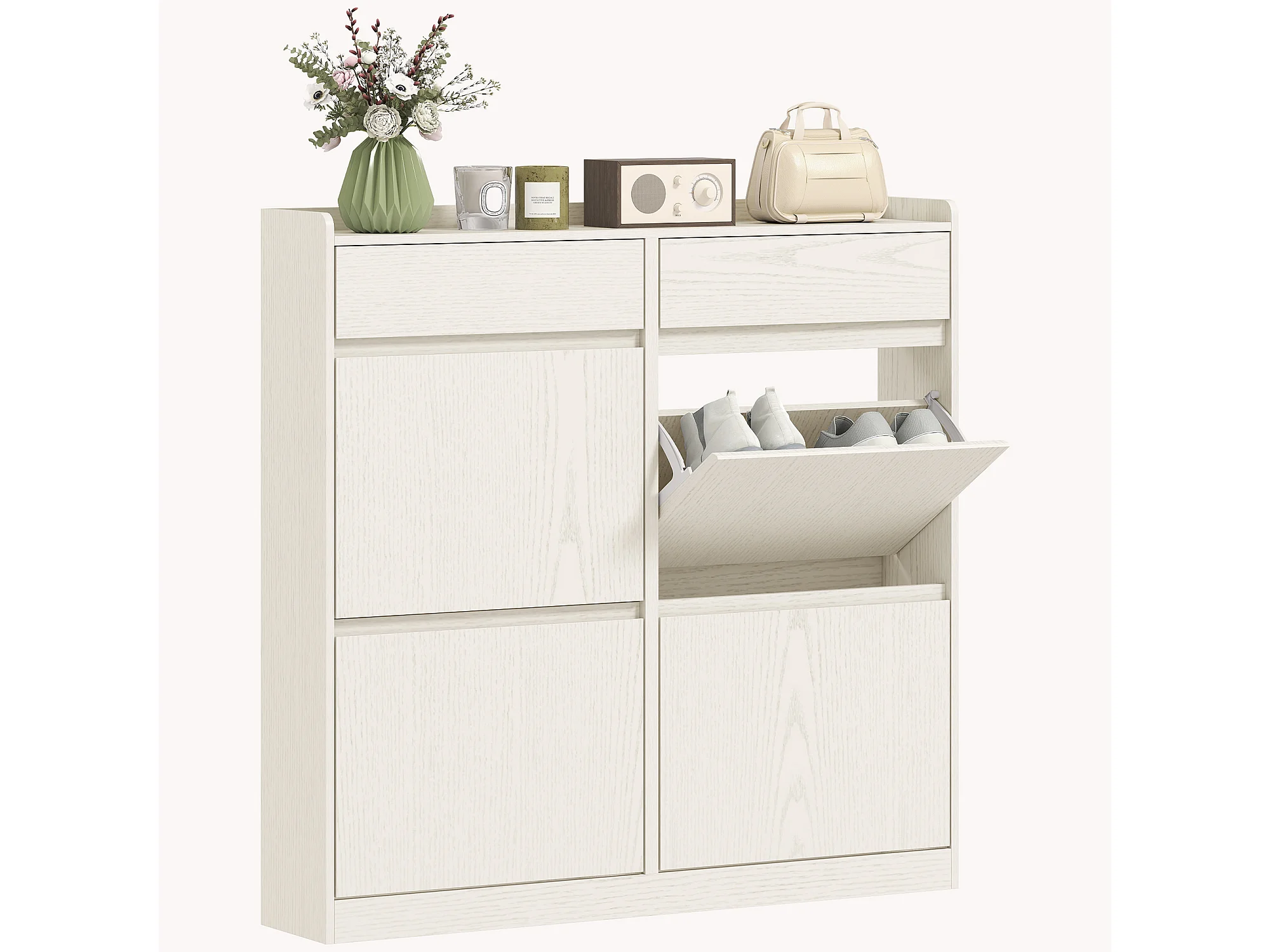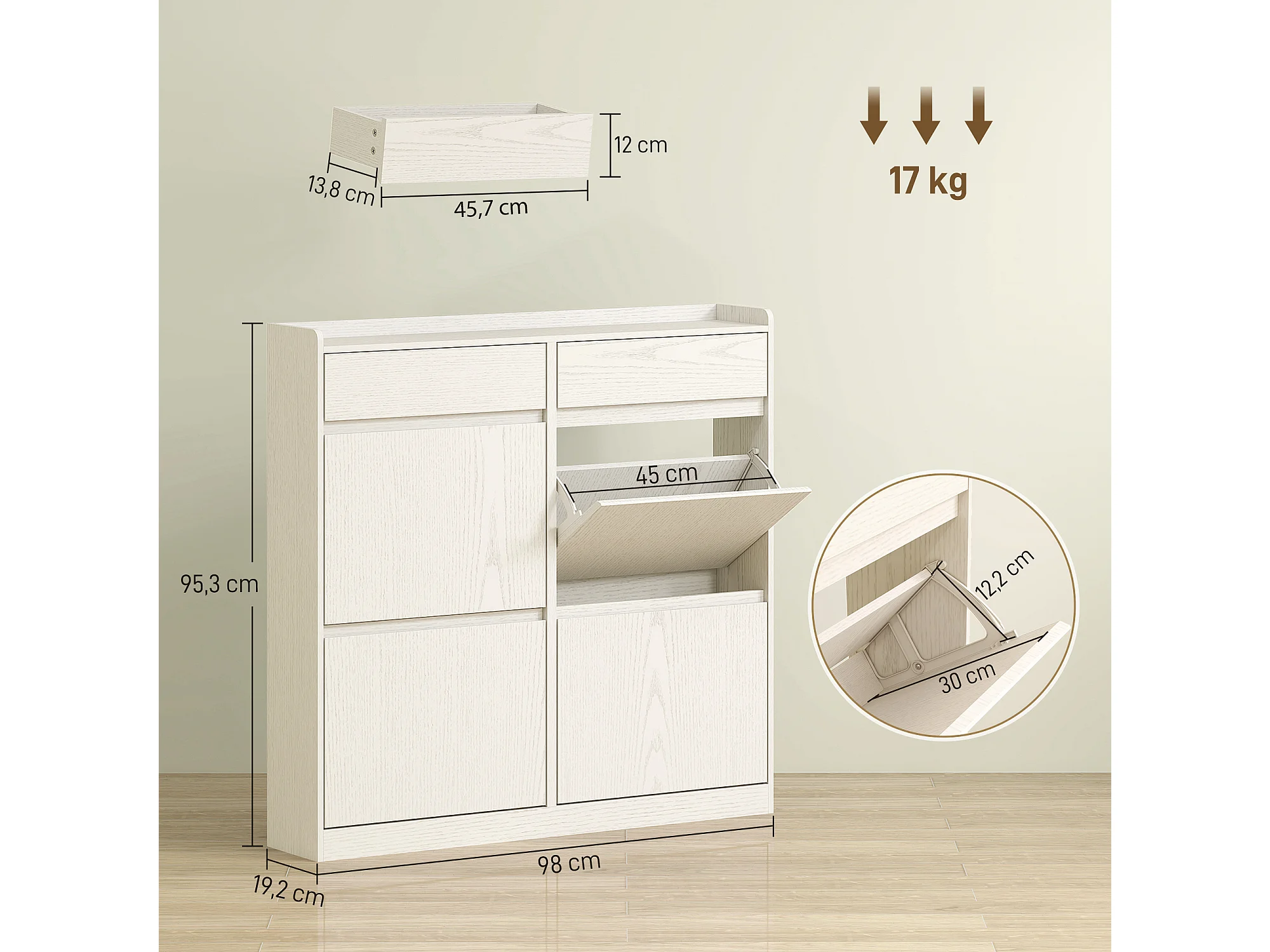 Meuble à chaussures 4 tiroirs rabattables 2 tiroirs coulissants dim. 98 x 19 x 95 cm blanc