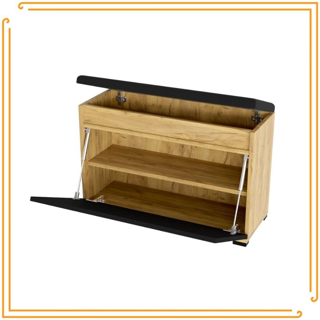 Meuble à chaussures 40 cm avec rangement, assise rembourrée, étagère – Chêne noir