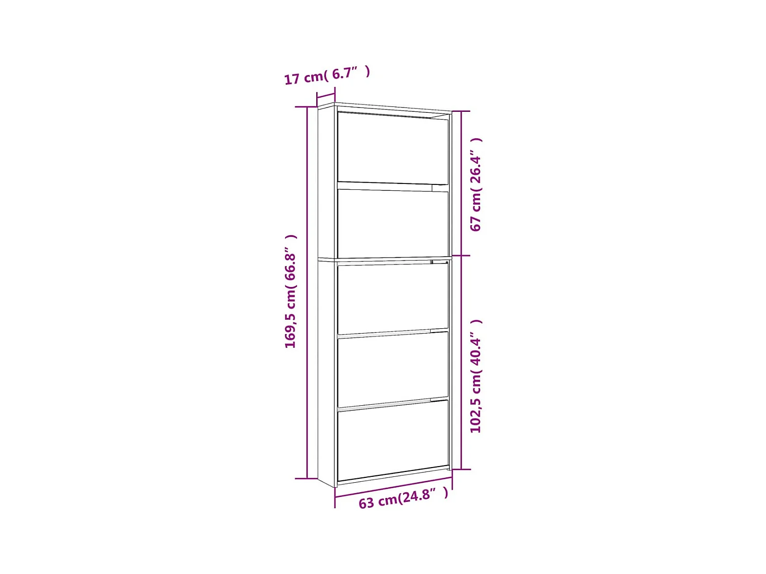 Meuble à chaussures 5 étagères et miroir 63x17x169,5 Blanc