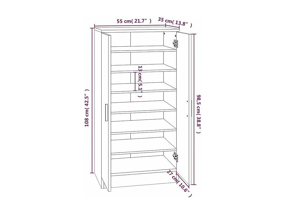 Meuble à chaussures 7 niveaux Palina L55xH108xP35 – Élégance et fonctionnalité-Couleur Blanc brillant