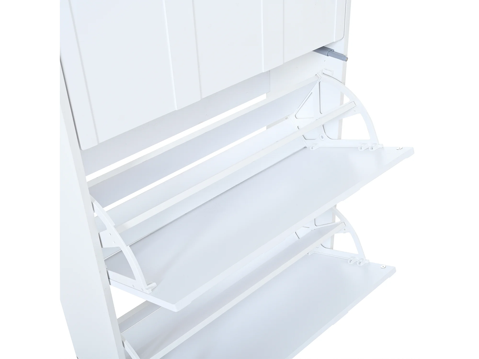Meuble à chaussures 70x25x120 cm - avec 6 compartiments - 3 portes abattantes - MDF - Blanc