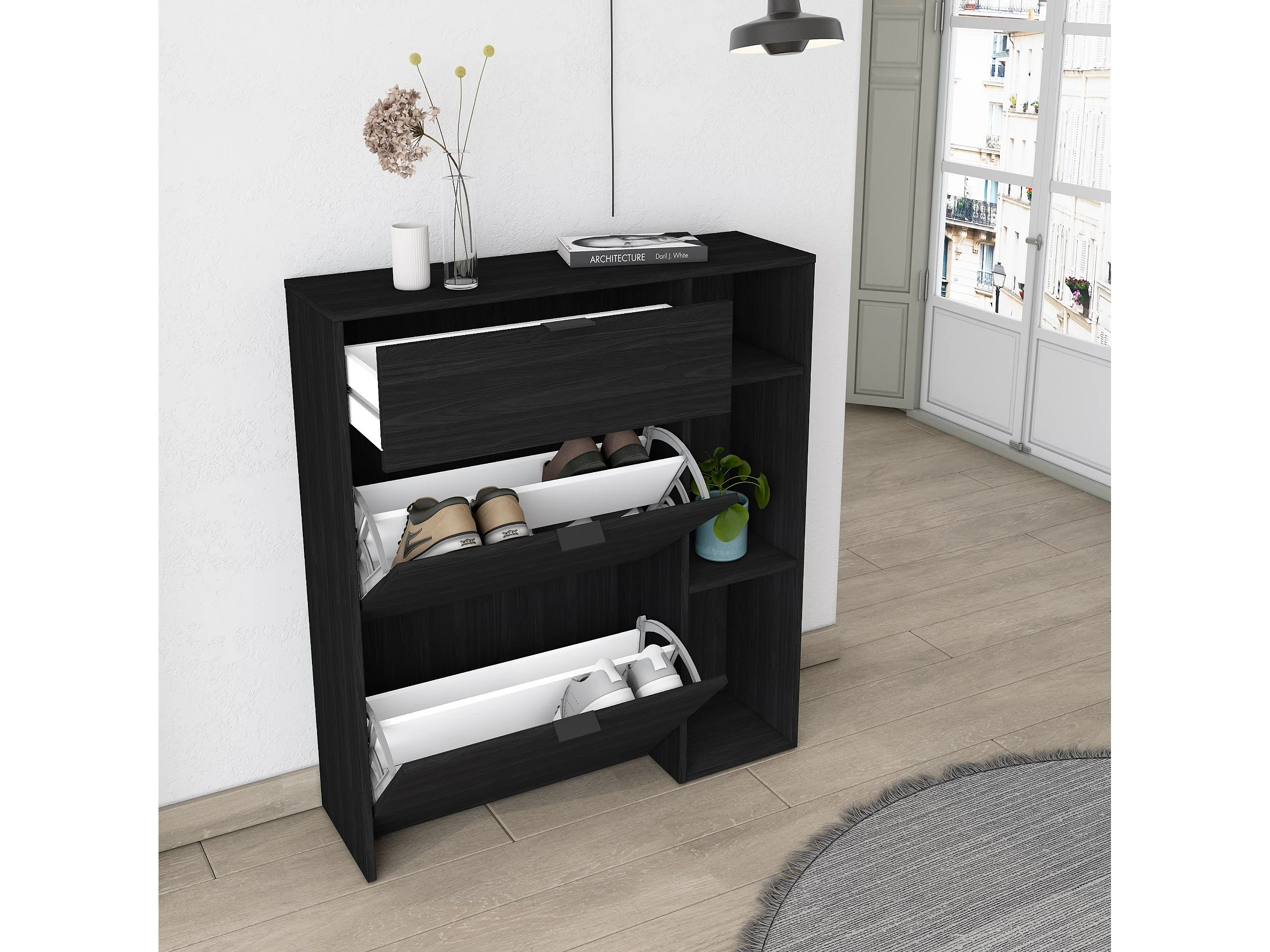 Meuble à Chaussures, 90x102x27 cm, 10 paires de chaussures, Pour Entrée, Noir