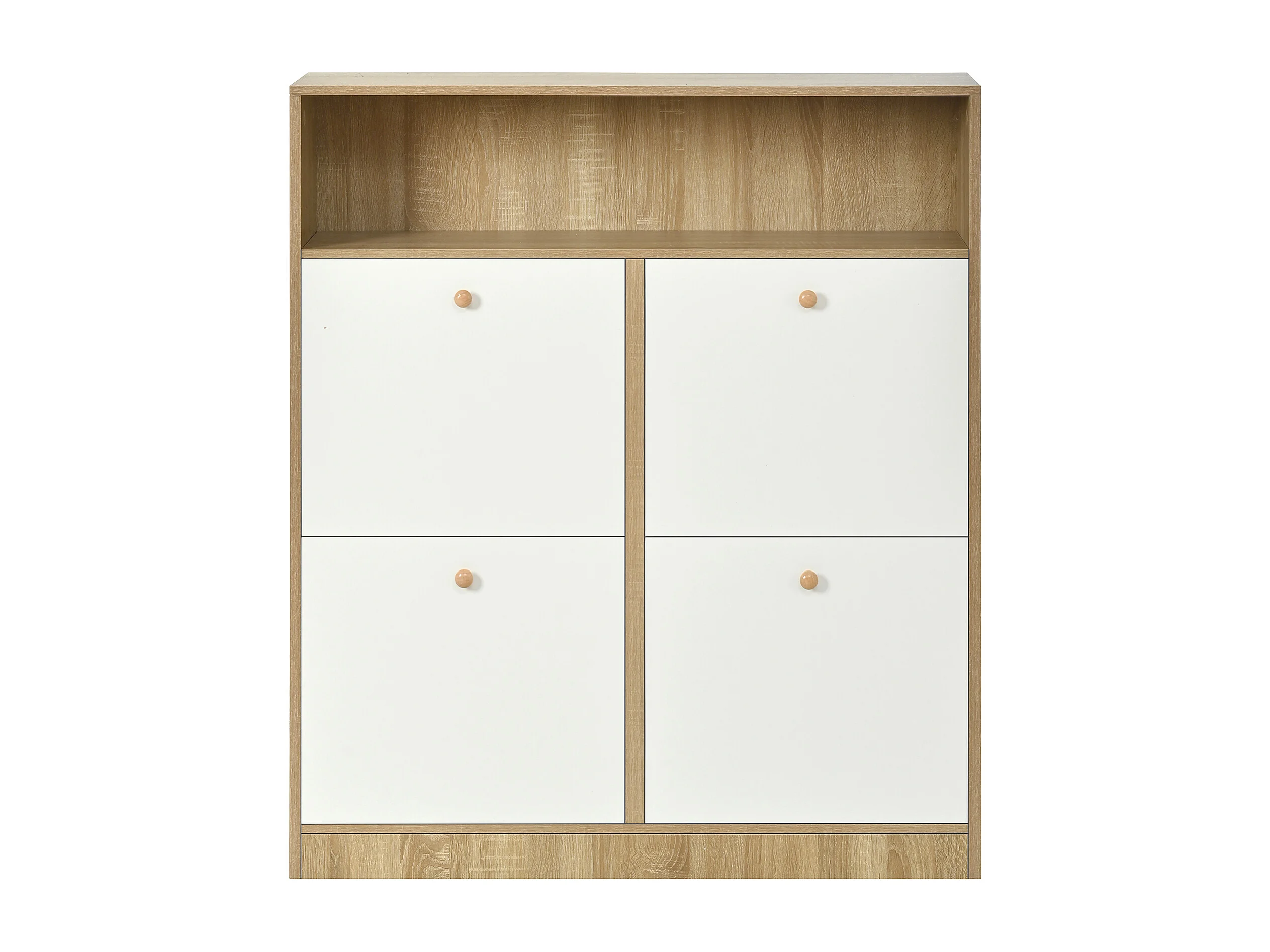 Meuble à chaussures à 4 portes - 90 x 24 x 104.5 cm - avec étagères ouvertes - pour entrée/couloir - MDF - naturel + blanc