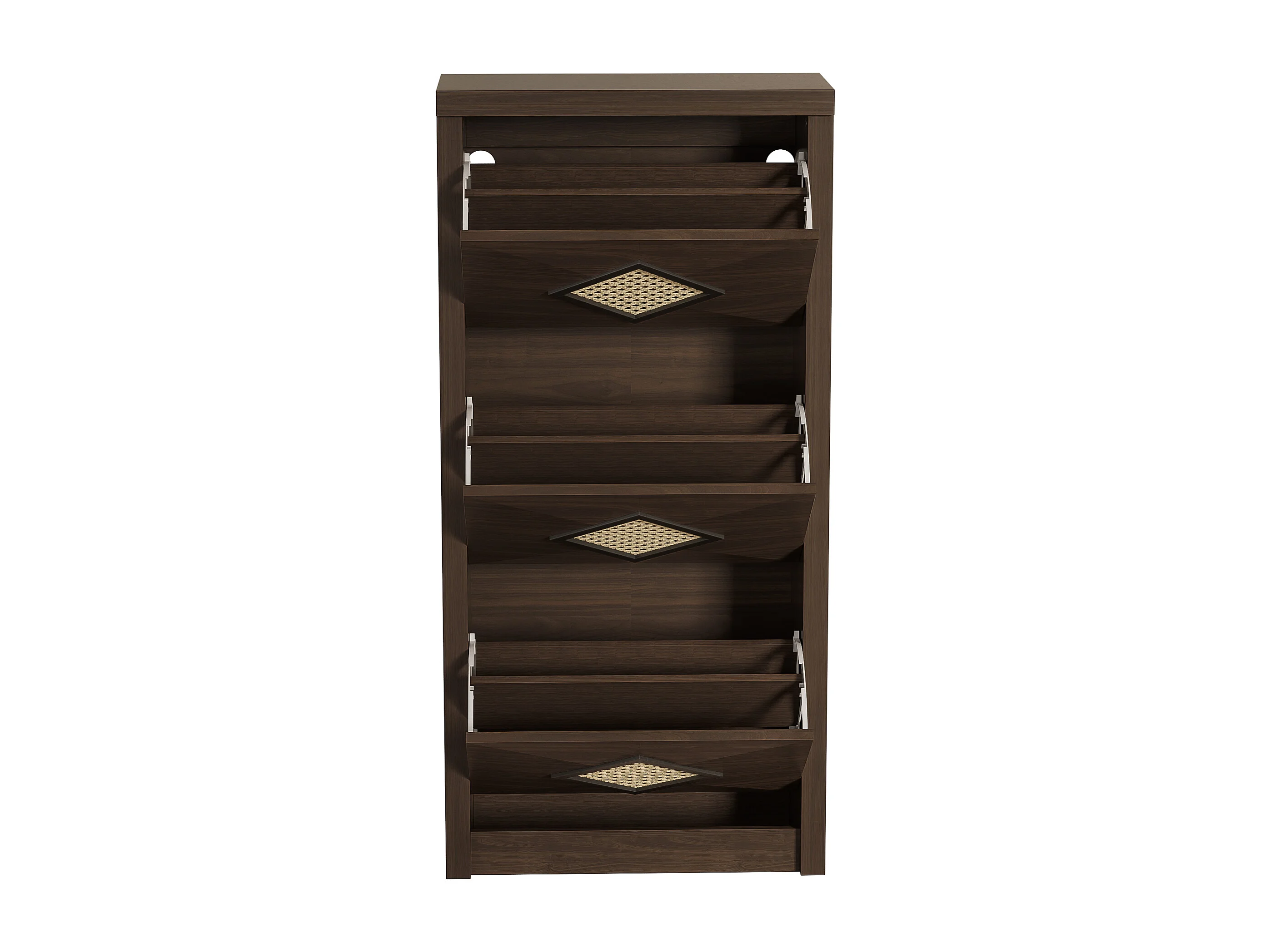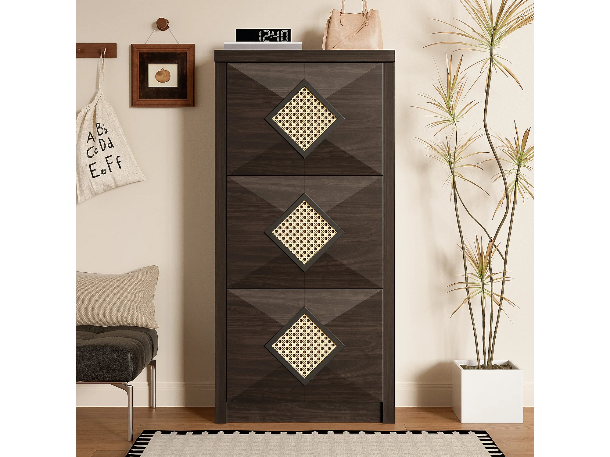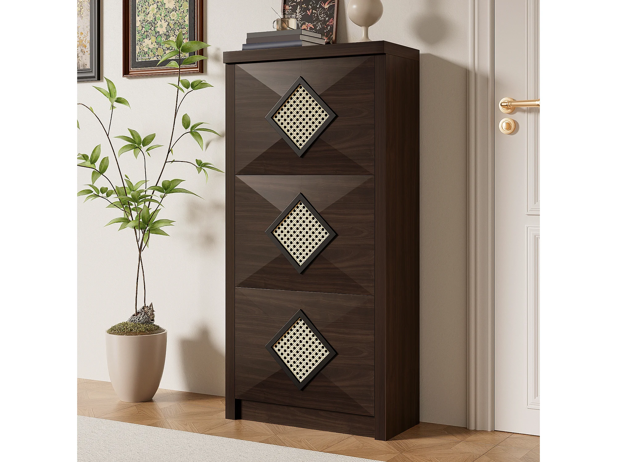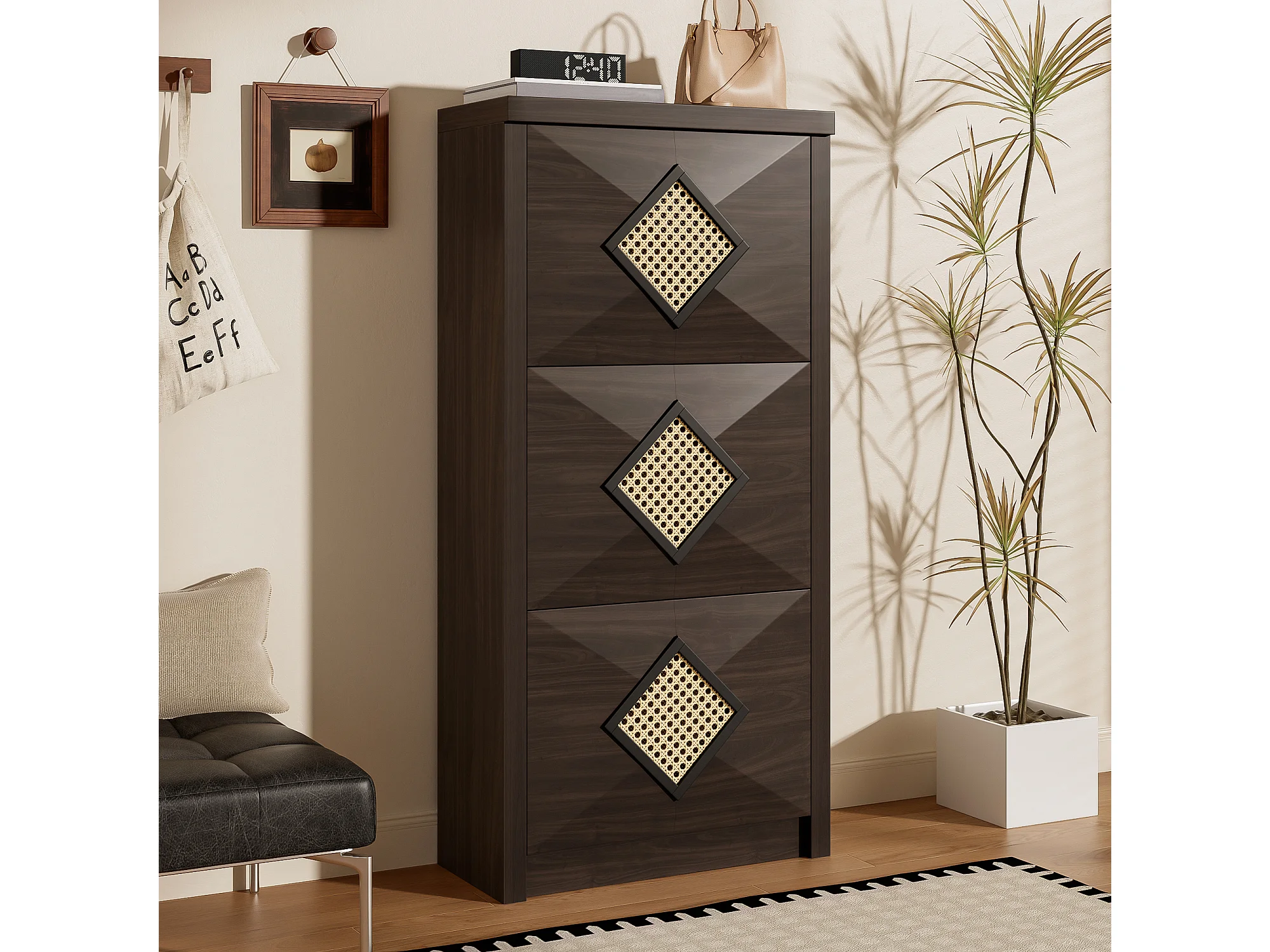 Meuble à chaussures à abattants, décor en rotin, panneaux de particules, bois foncé (54x25x115cm)