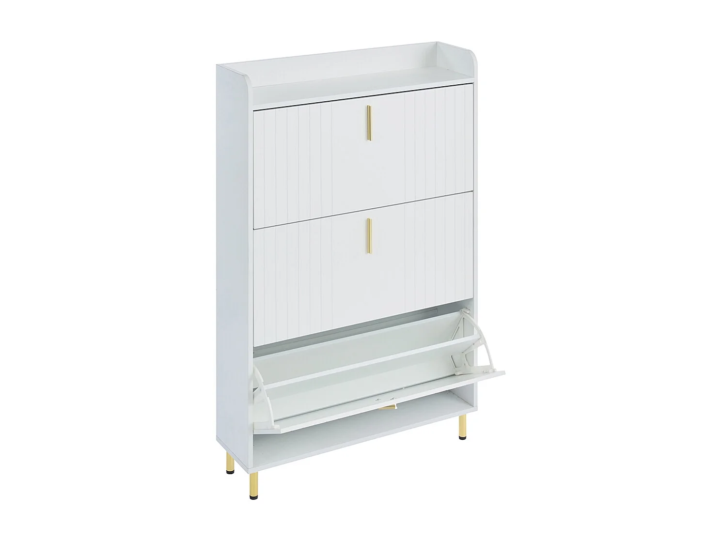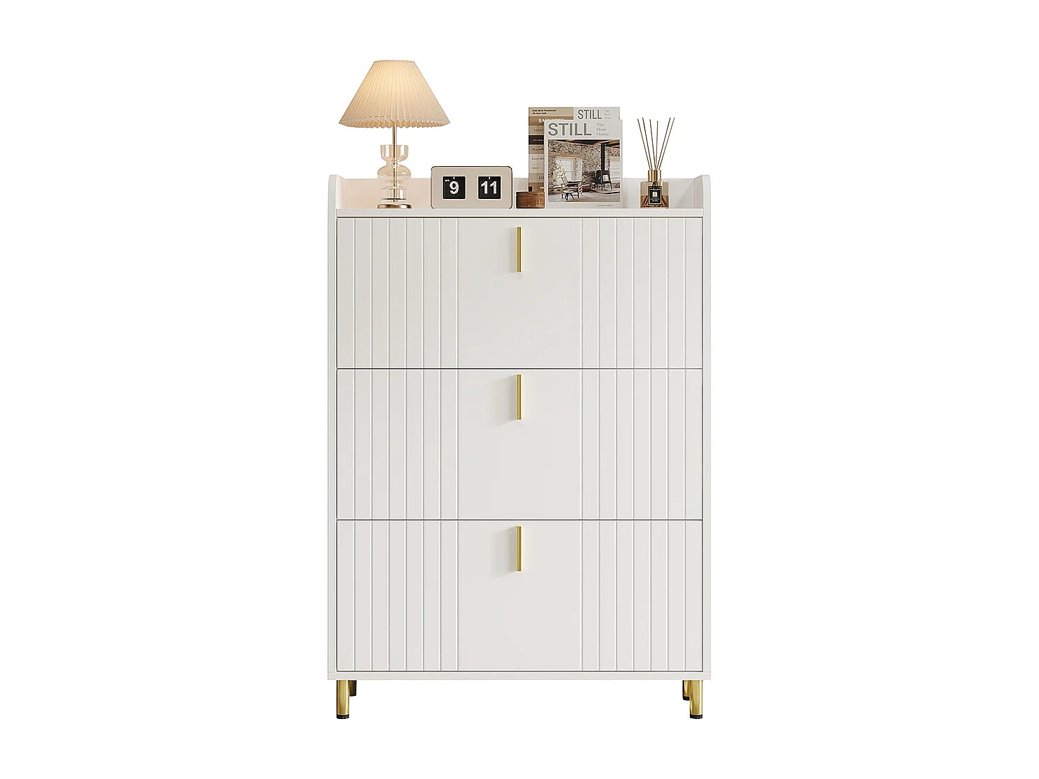 Armoire Banc à chaussures avec trois portes de rangement Avec poignées métalliques asymétriques Blanc