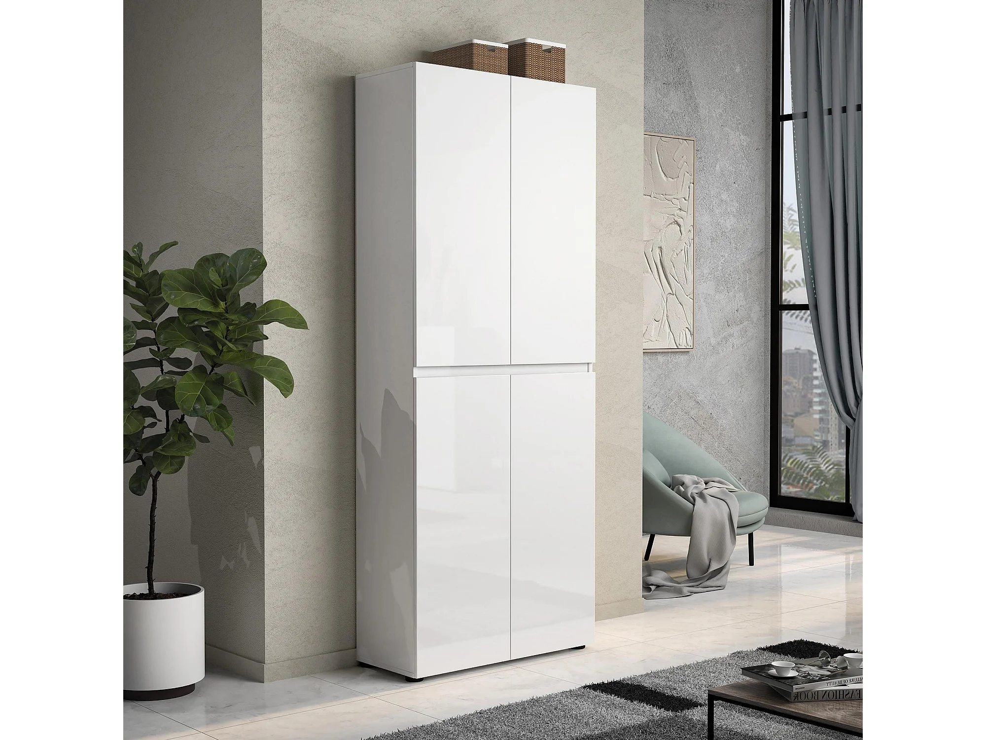 Meuble à chaussures Alberton, Meuble à chaussures, Armoire d'entrée polyvalente, Rangement pour chaussures, Made in Italy, 80x34h200 cm, Blanc brillant