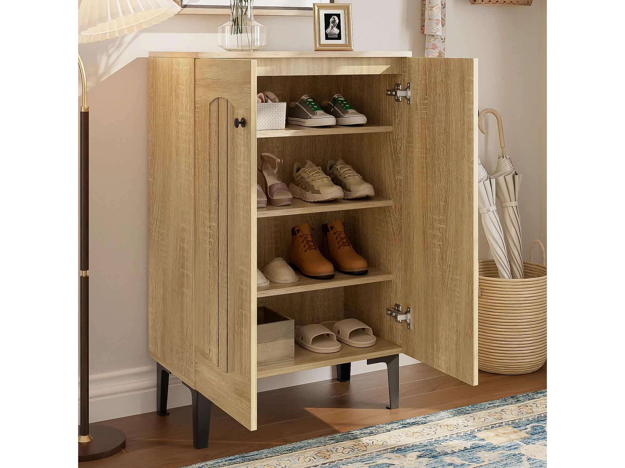Meuble à chaussures avec 2 porte - étagères réglables - Couleur bois et noir