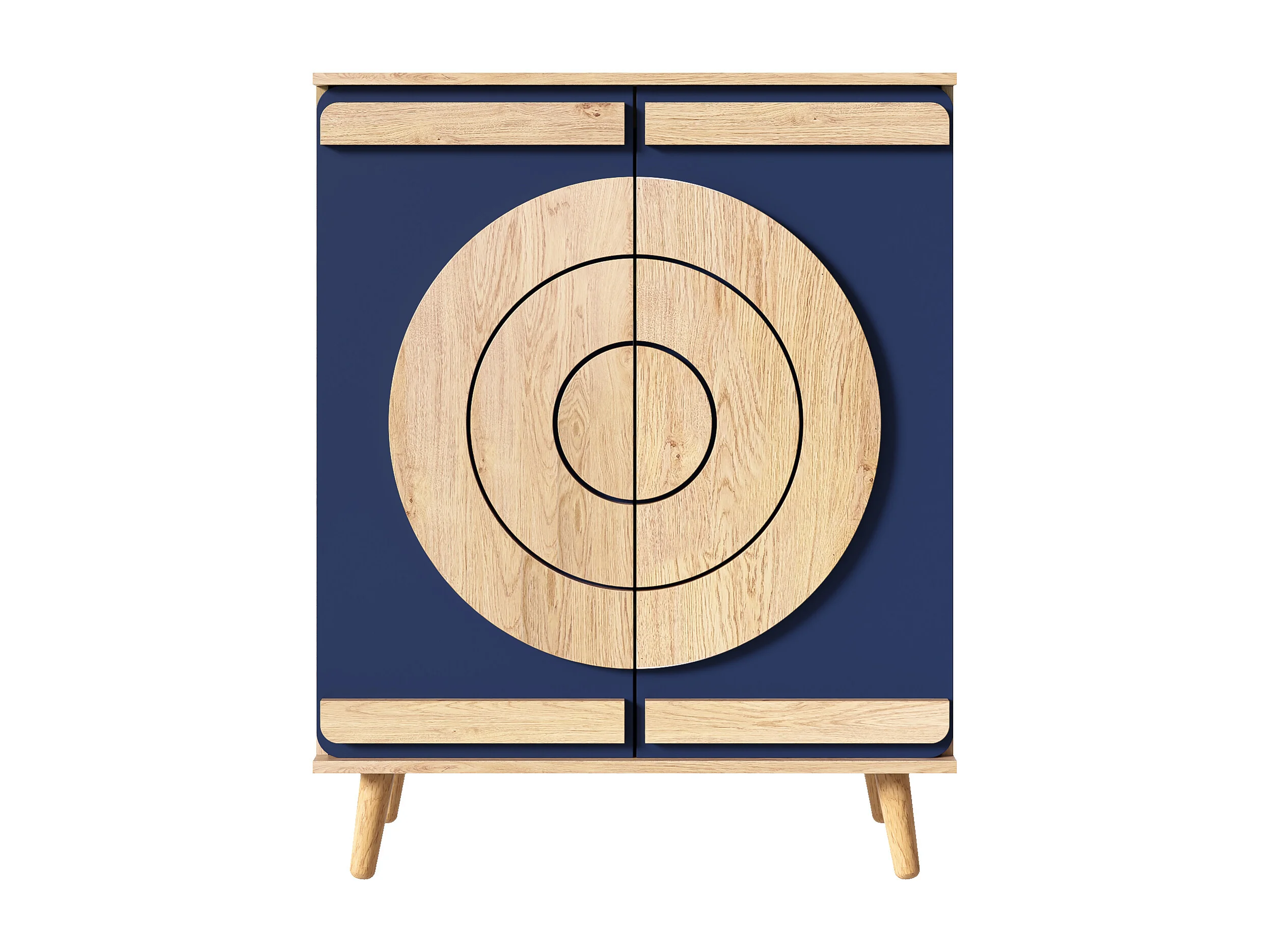 Meuble à chaussures avec 2 portes rondes et géométrique - Bleu et naturel clair