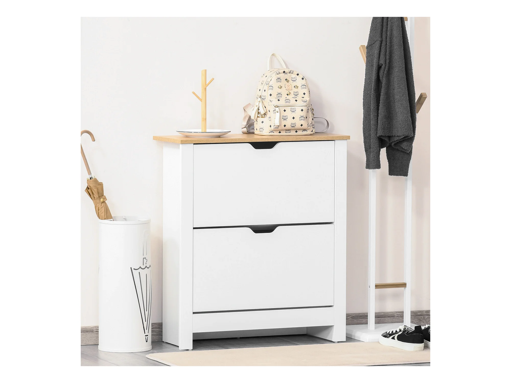 Meuble à chaussures avec 2 tiroirs, capacité 12 paires, bois MDF, blanc et naturel (72x26x80 cm)