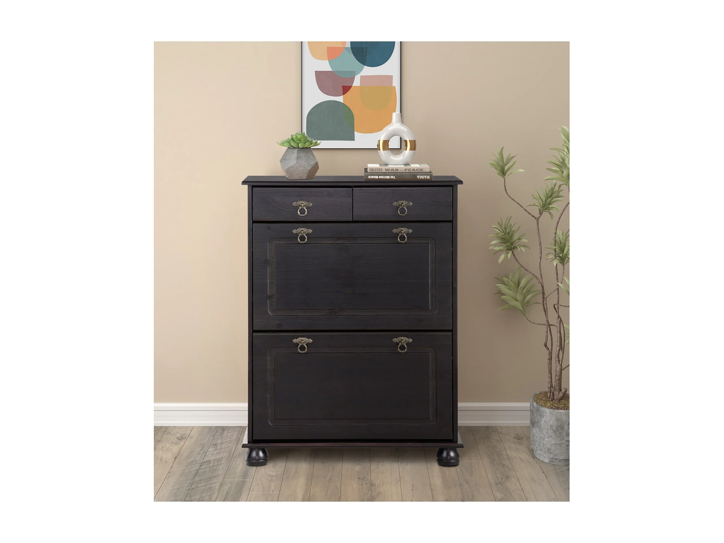 Finca | Meuble à chaussures avec 2 tiroirs et 2 abattants en pin brun