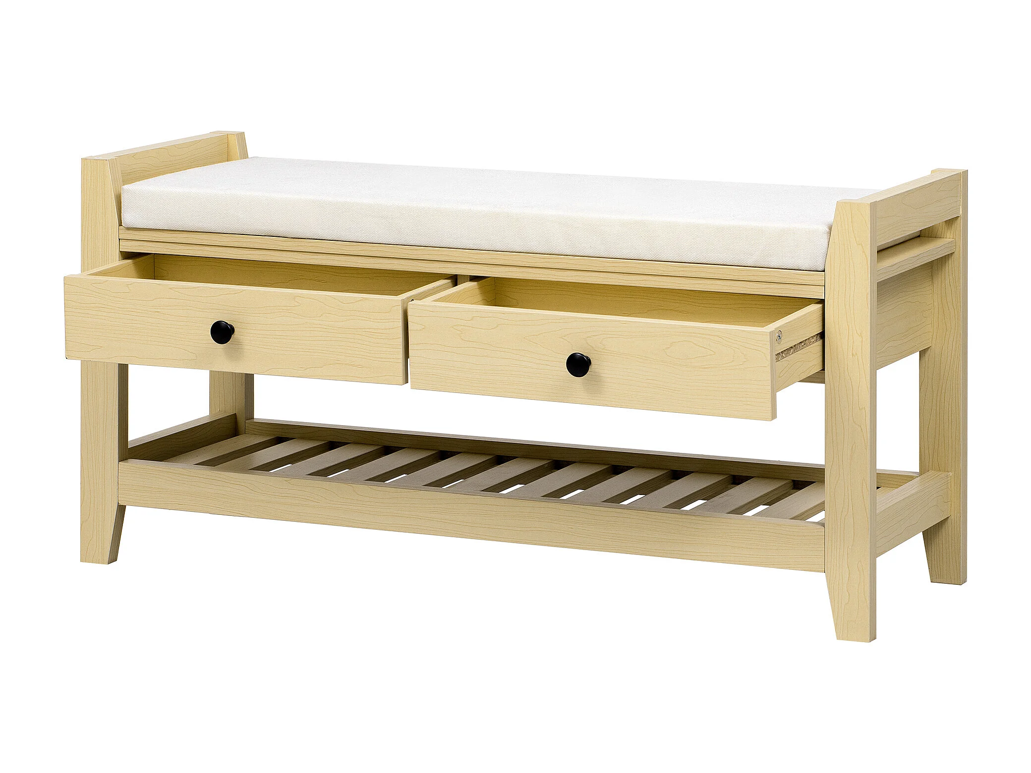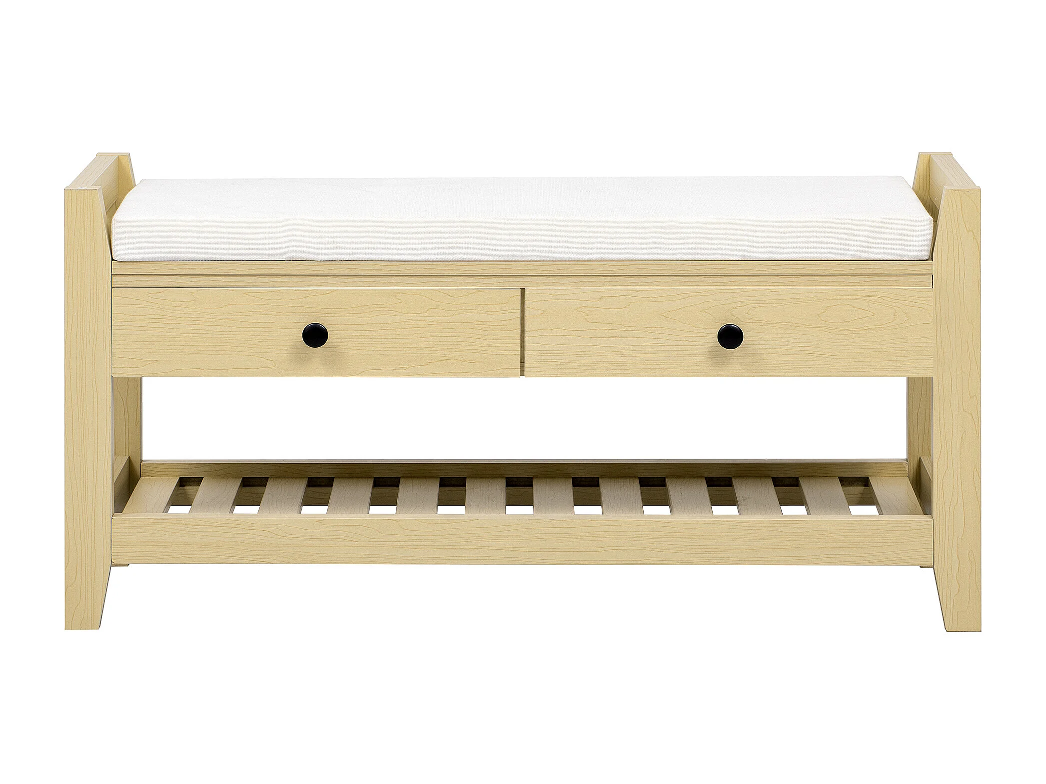 Meuble à chaussures avec 2 tiroirs et coussin - Bois MDF- Couleur naturel