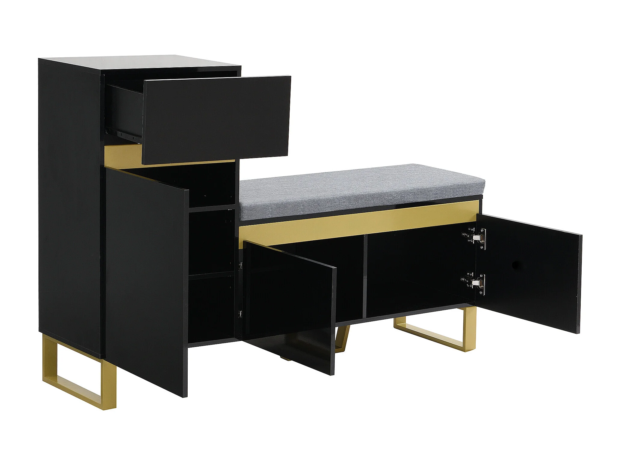 Meuble à chaussures avec 3 portes, 1 tiroir et coussin - Noir et doré