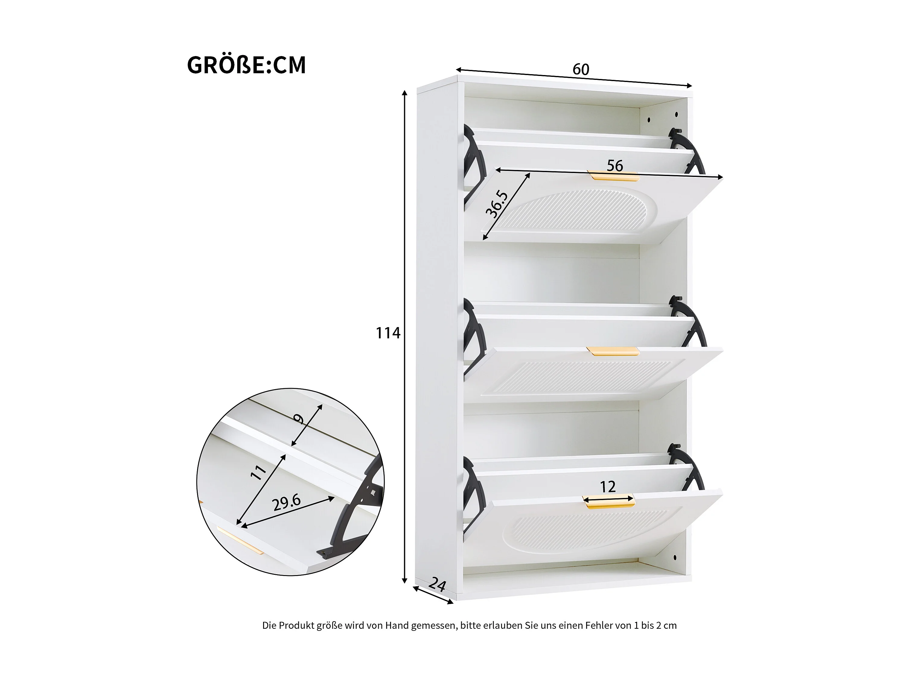 Meuble à chaussures avec 3 portes - Blanc 60 x 24 x 114 cm