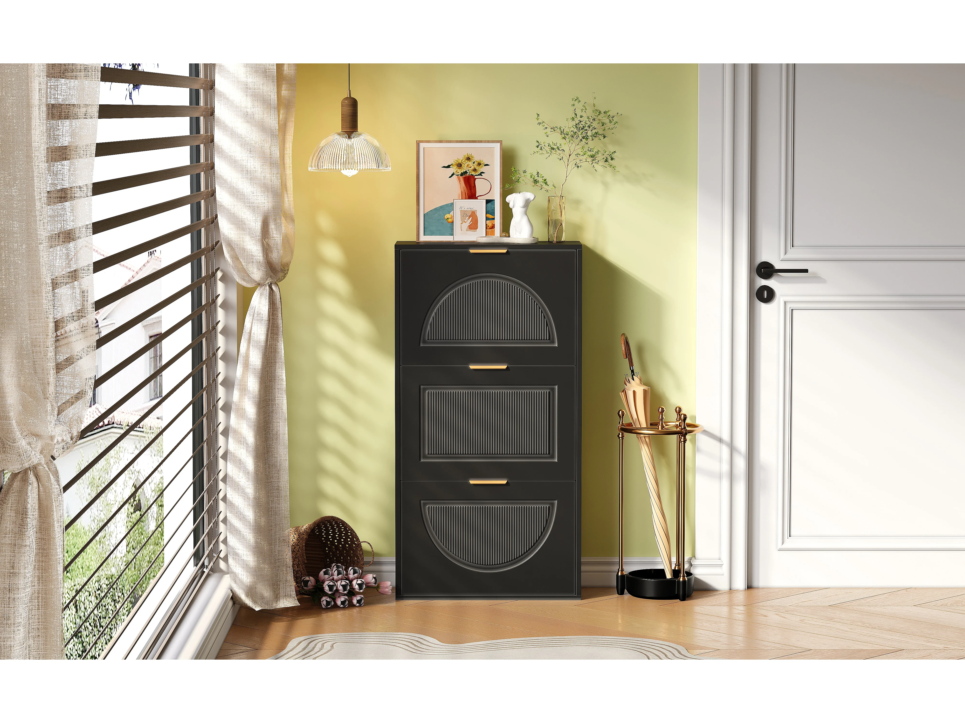 Meuble à chaussures avec 3 portes - Noir 60 x 24 x 114 cm