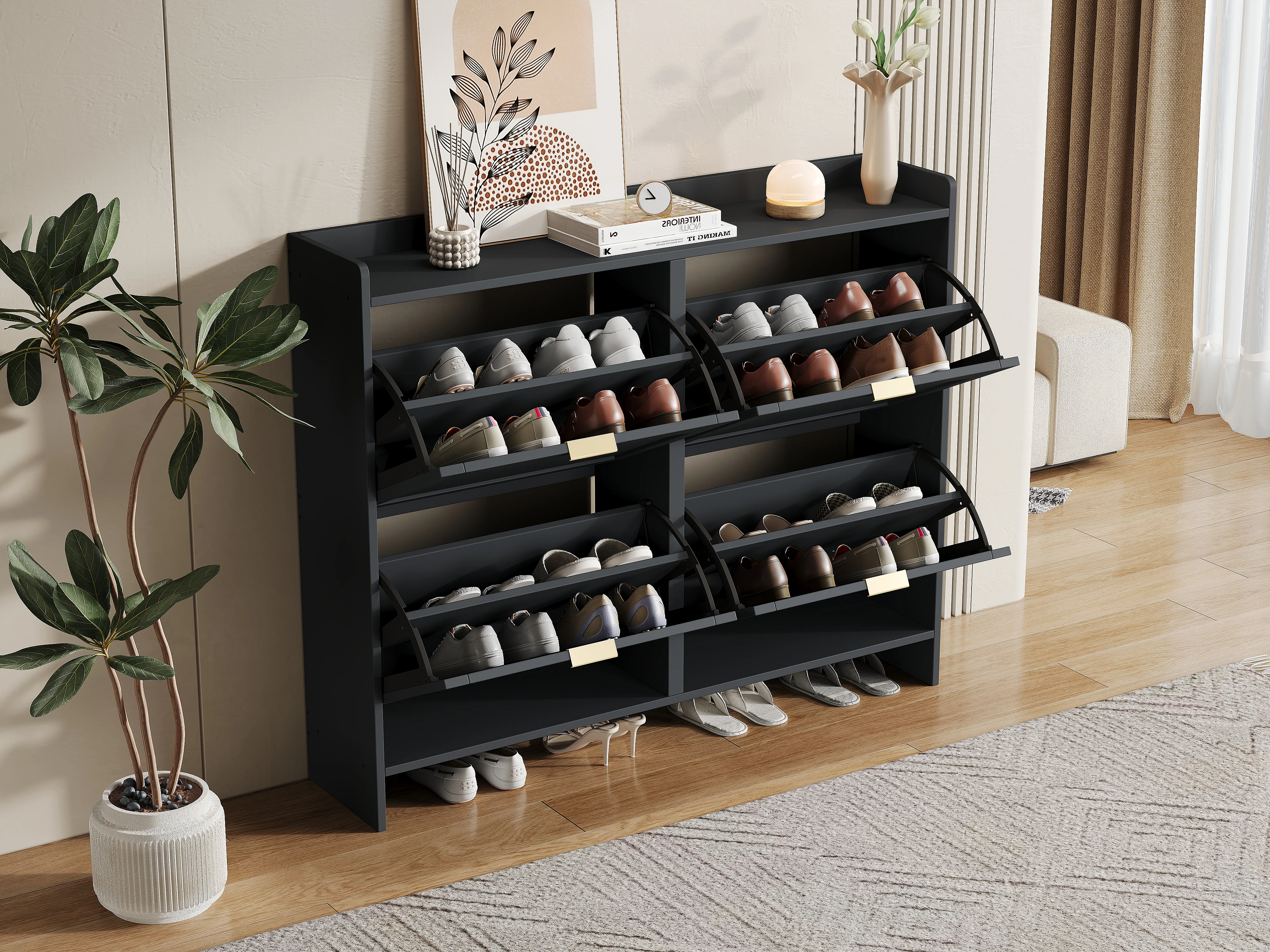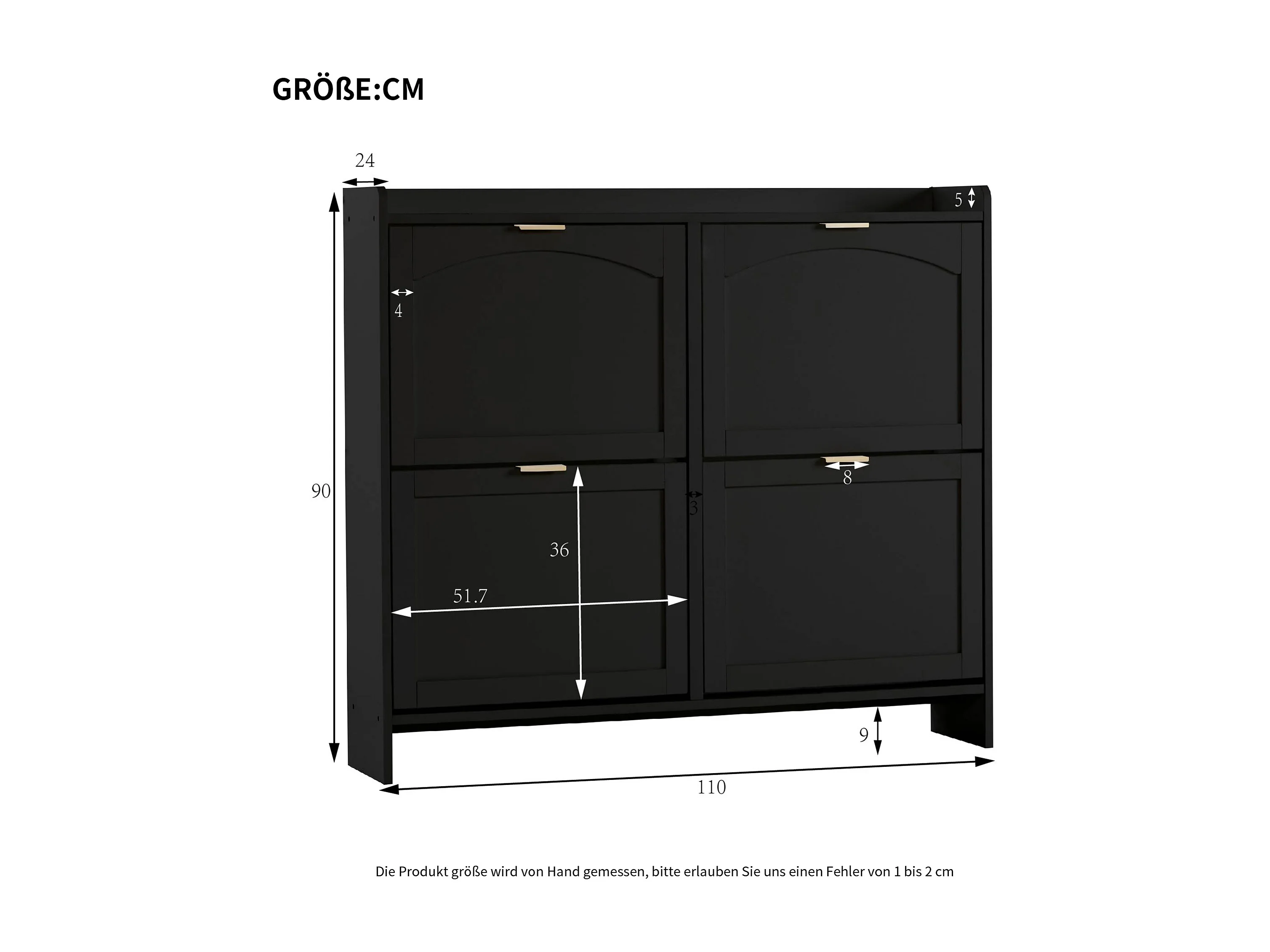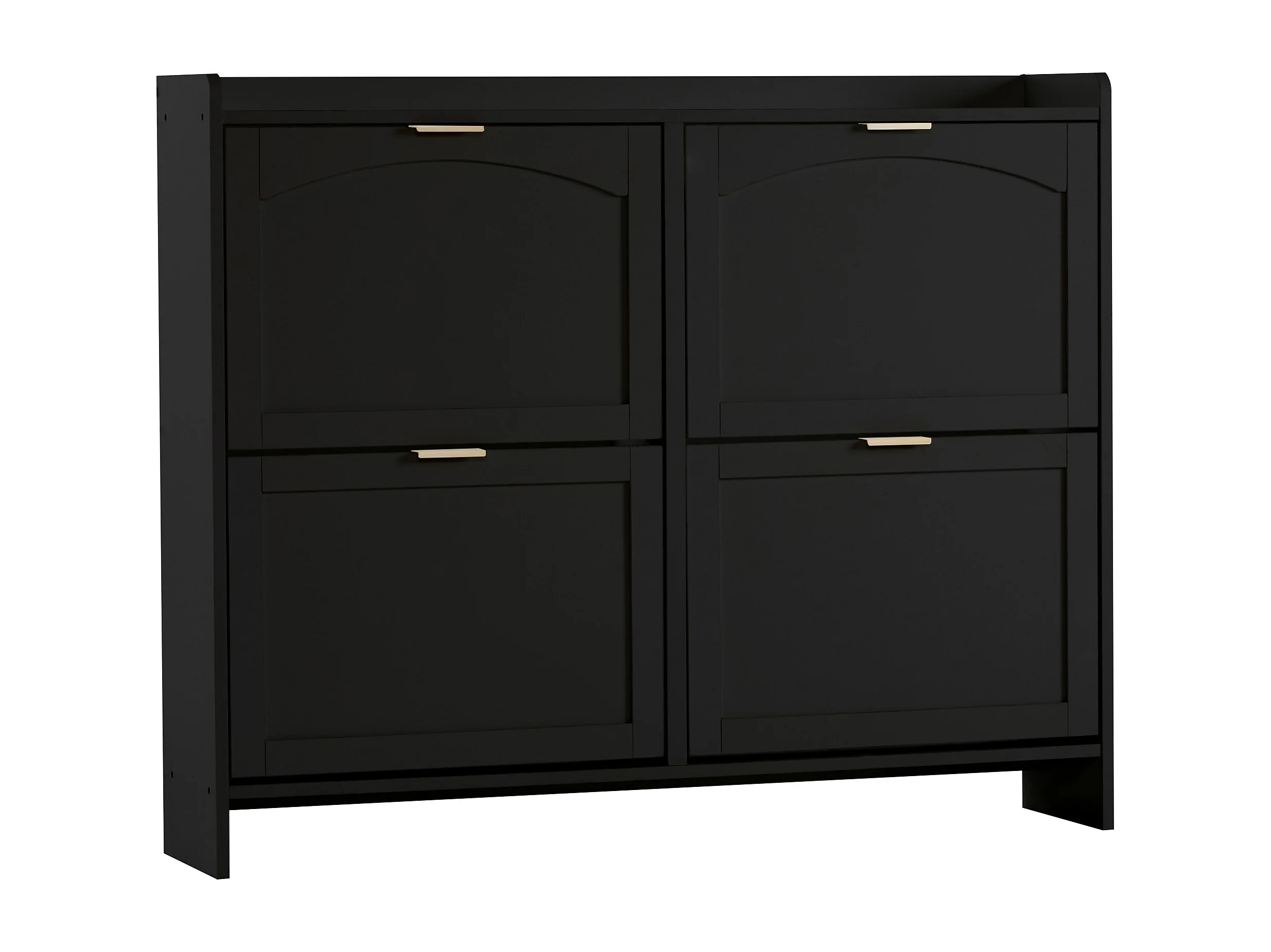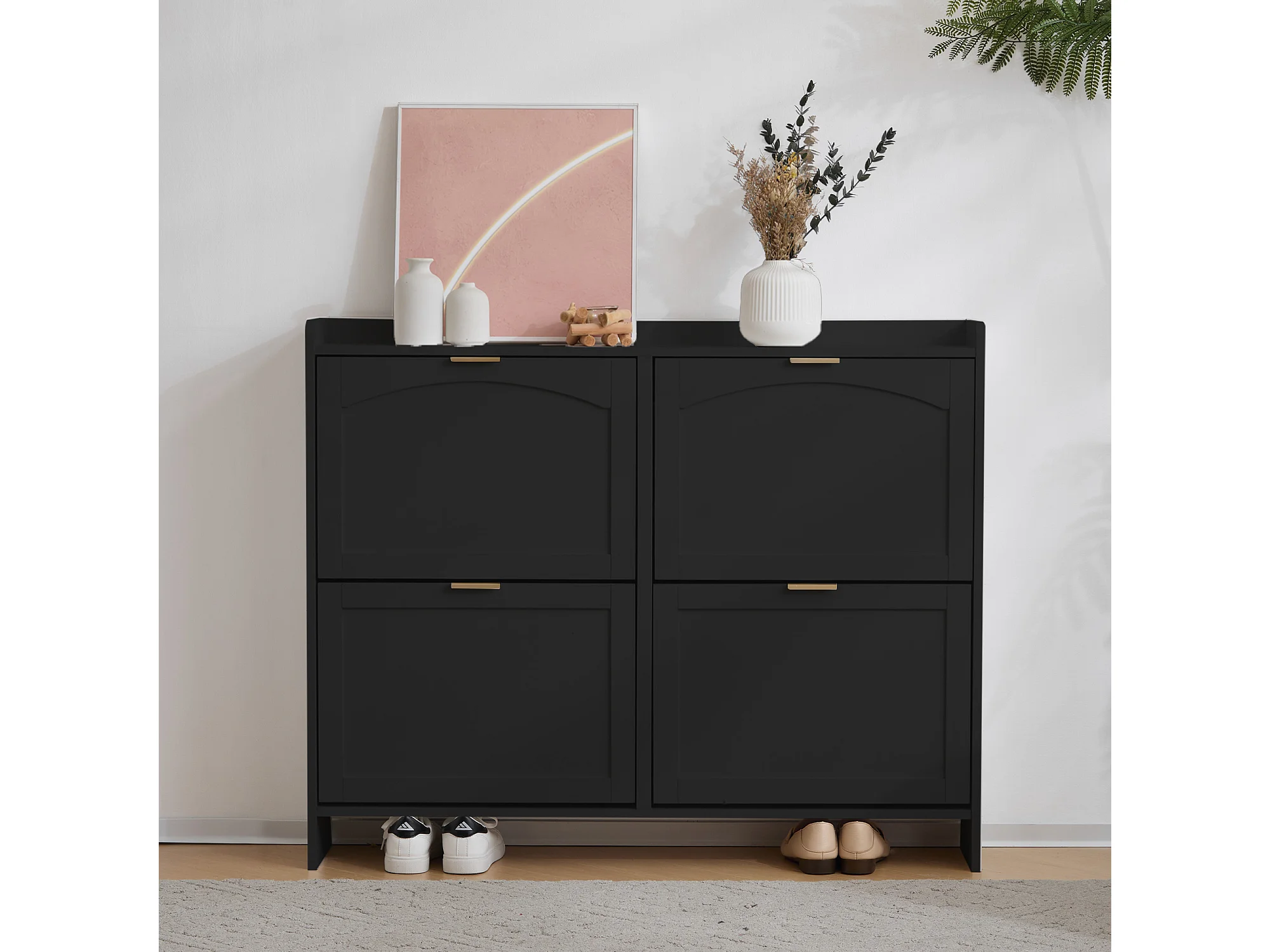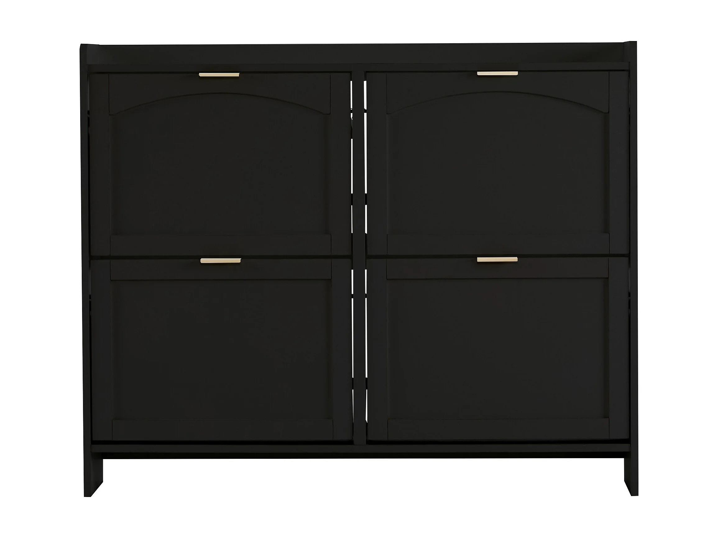 Meuble à chaussures avec 4 compartiments abattants en bois PB- Noir