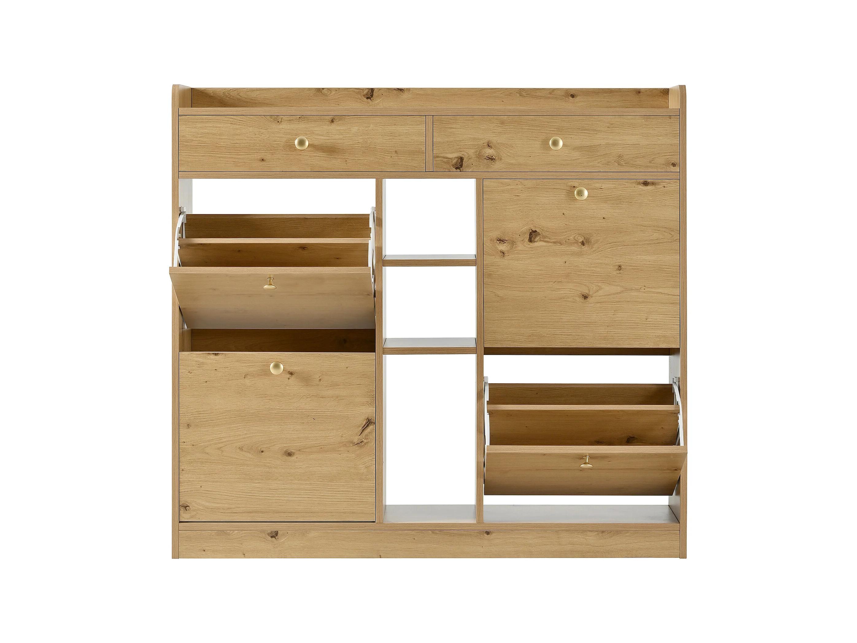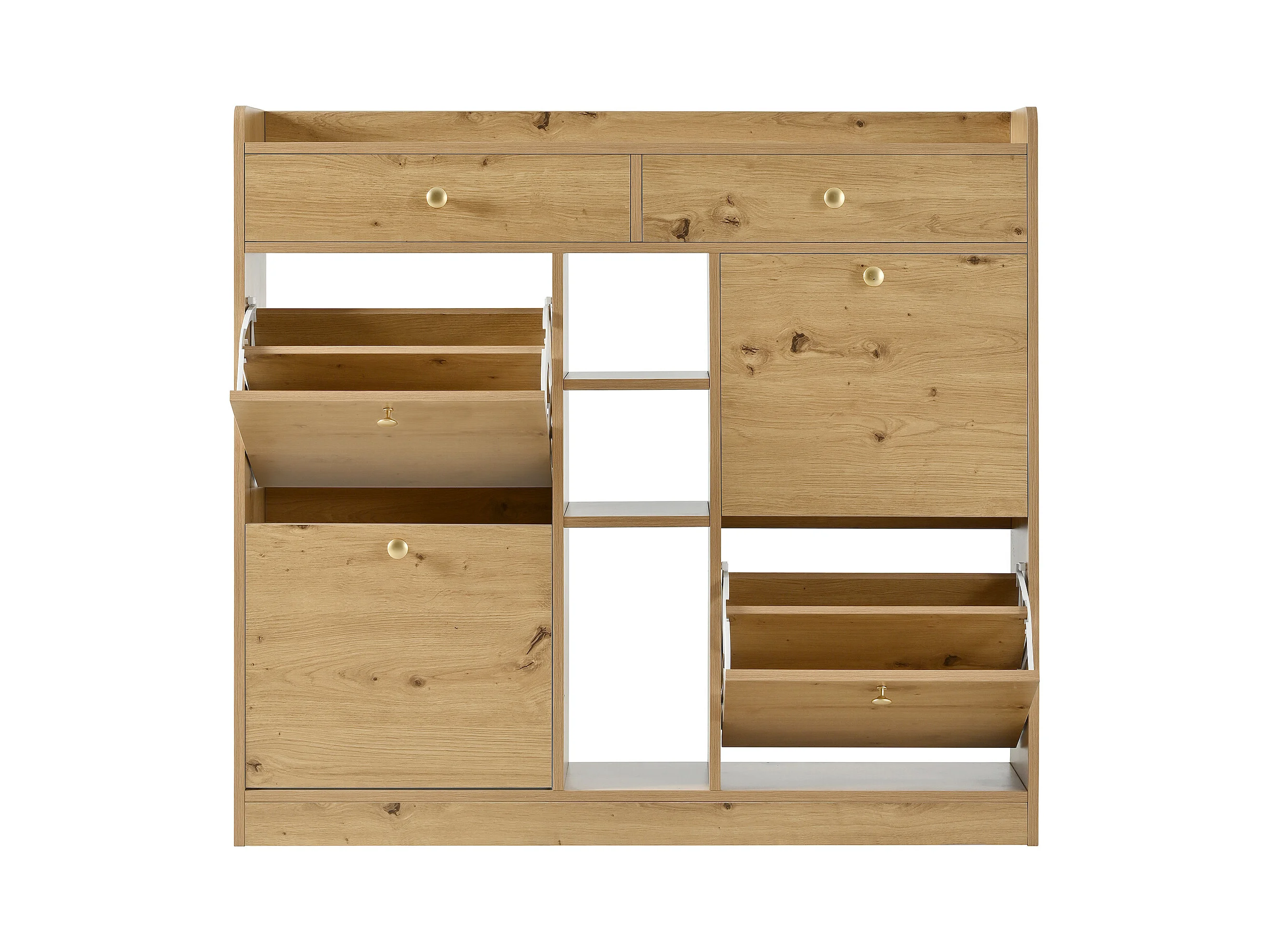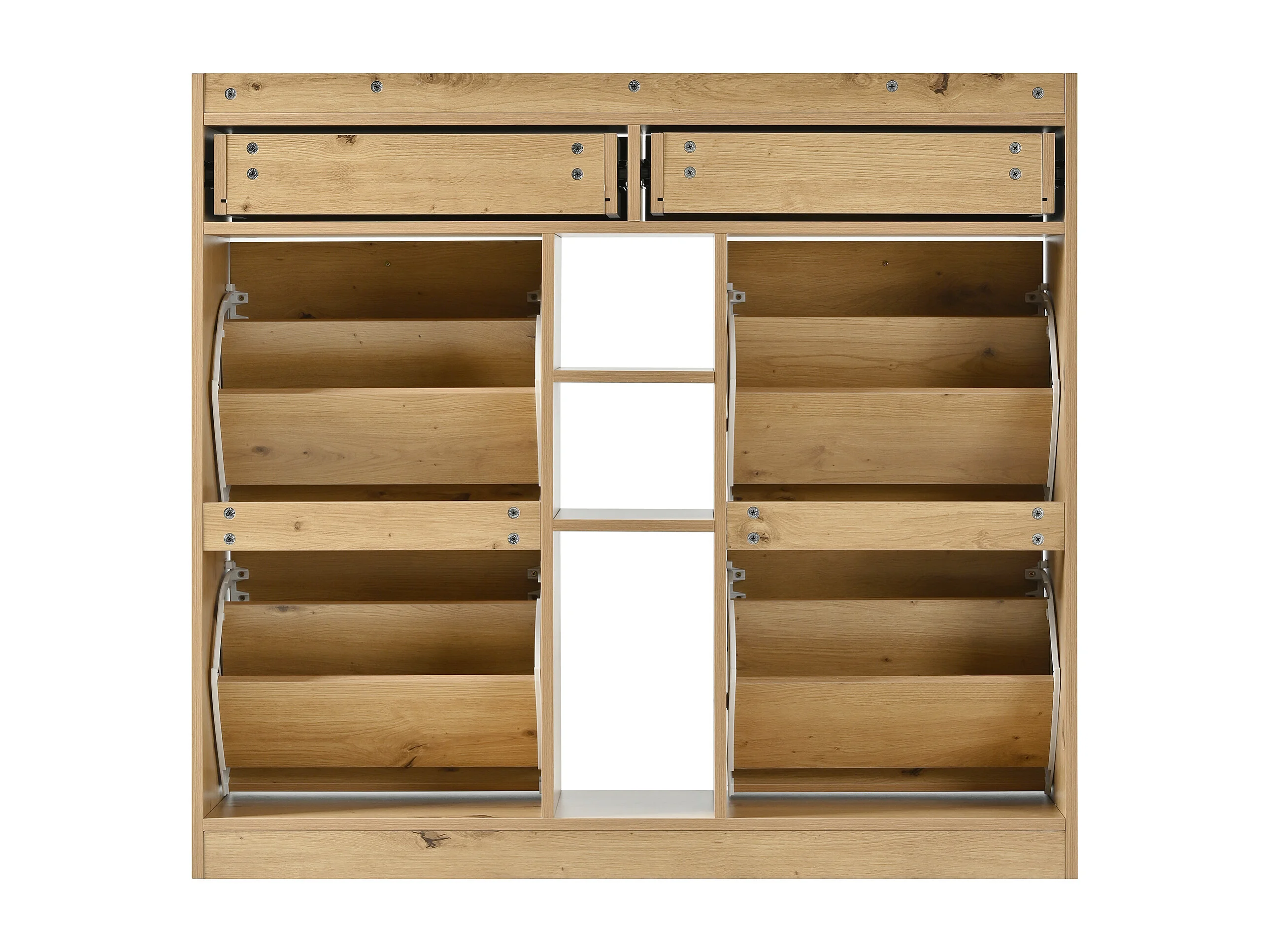 Meuble à chaussures avec 4 portes abattantes, 2 tiroirs et 3 niches - Couleur bois