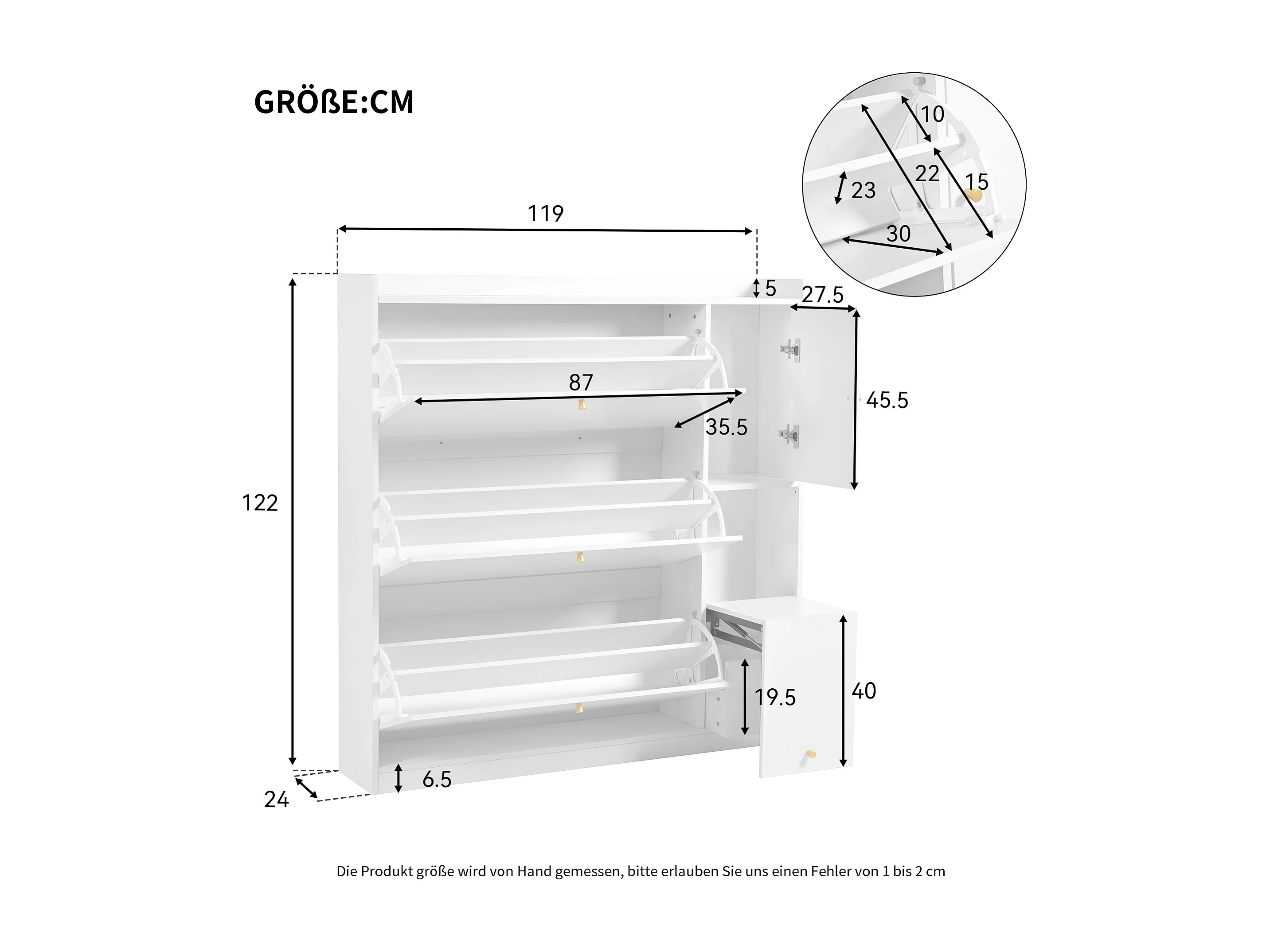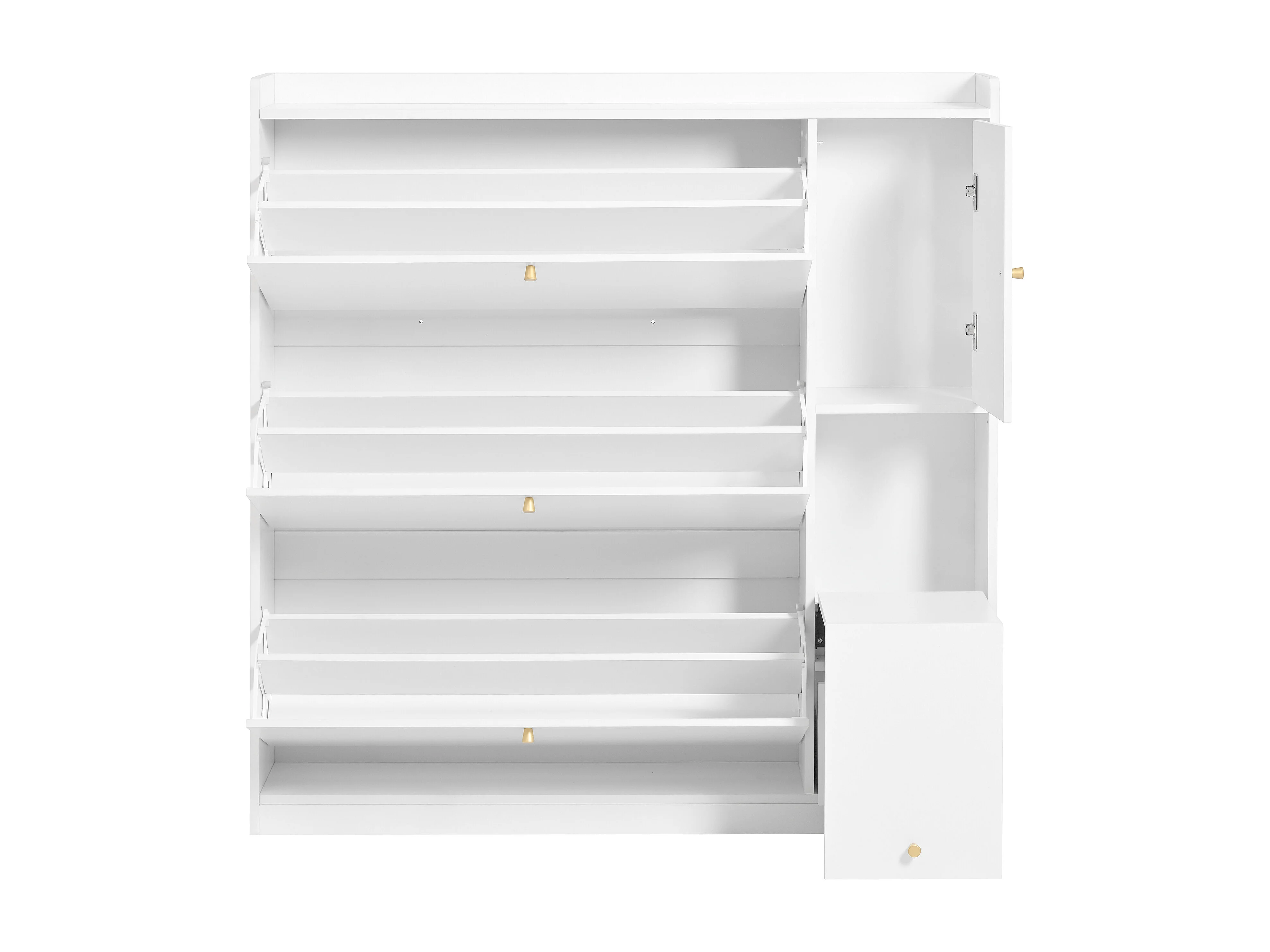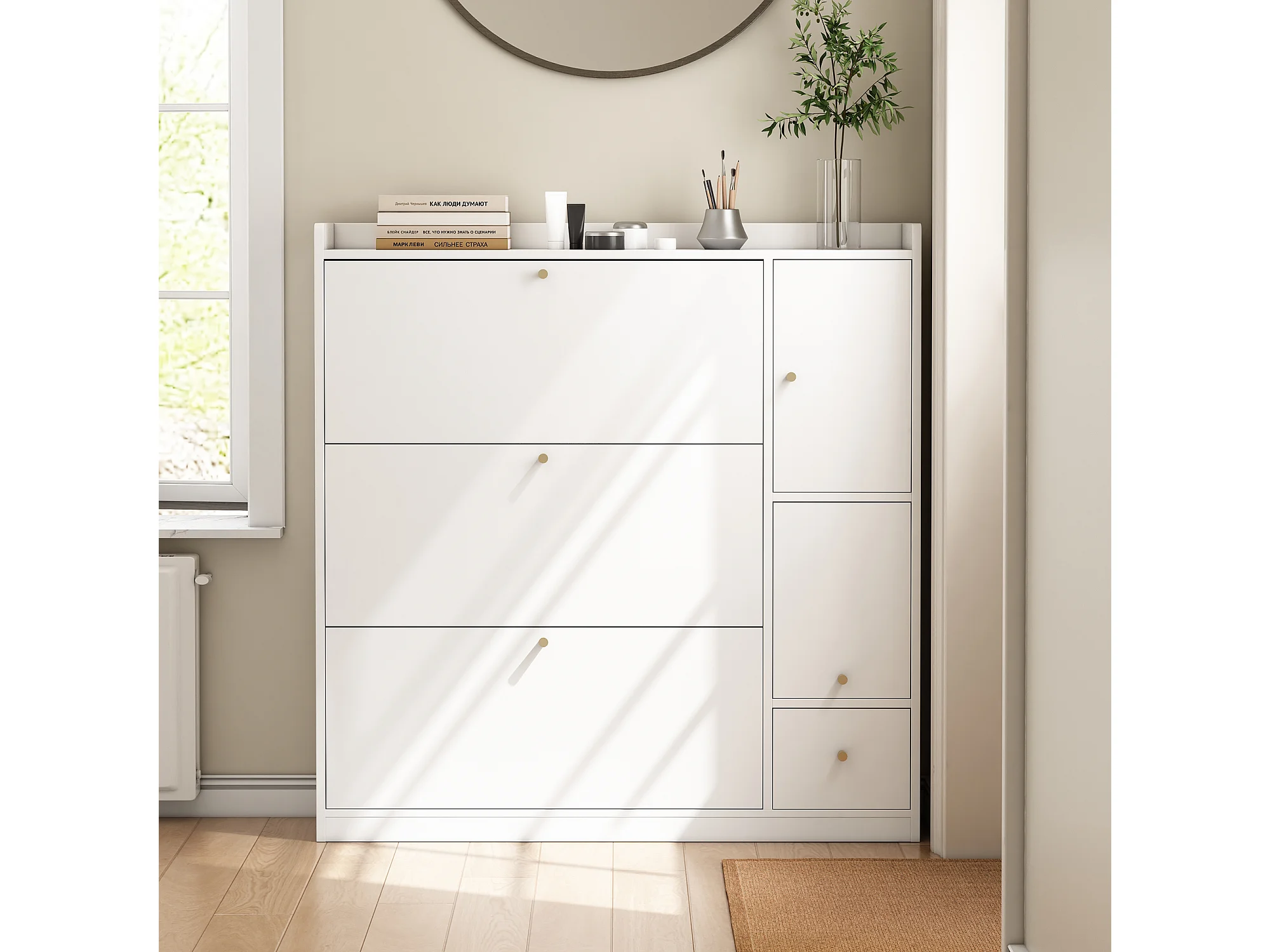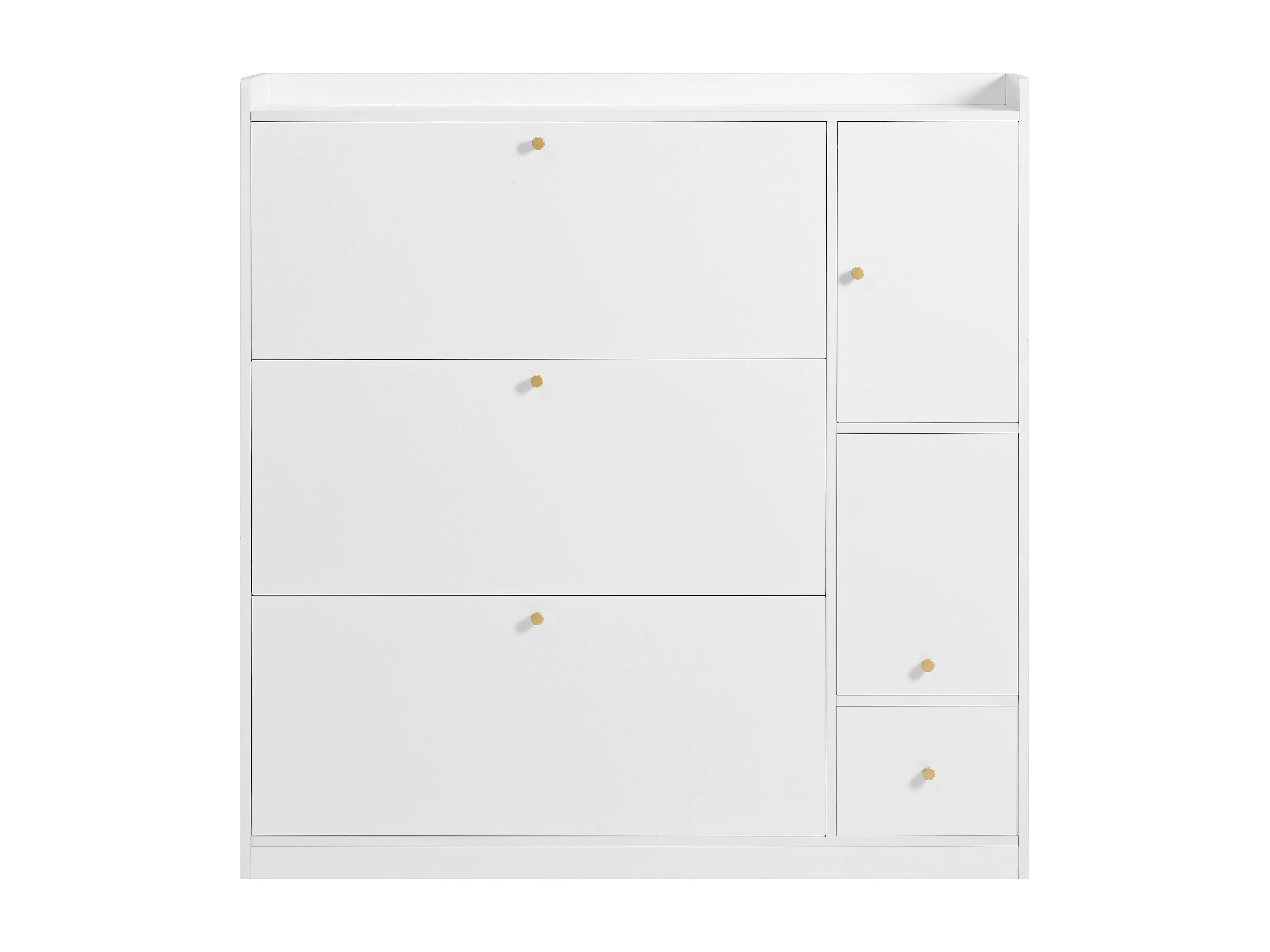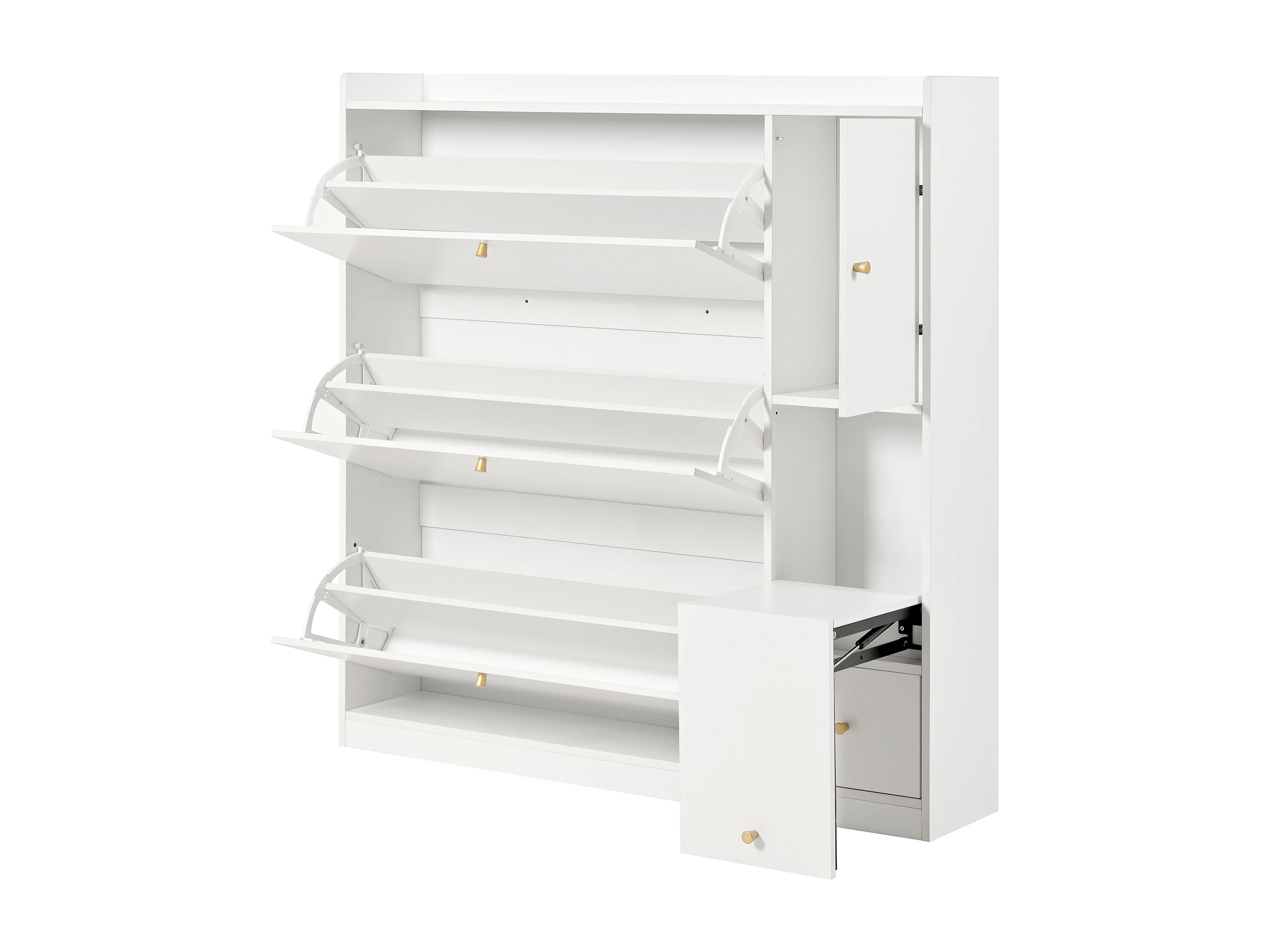 Meuble à chaussures avec 4 portes, banquette pliante et 1 tiroir - Bois en PB blanc