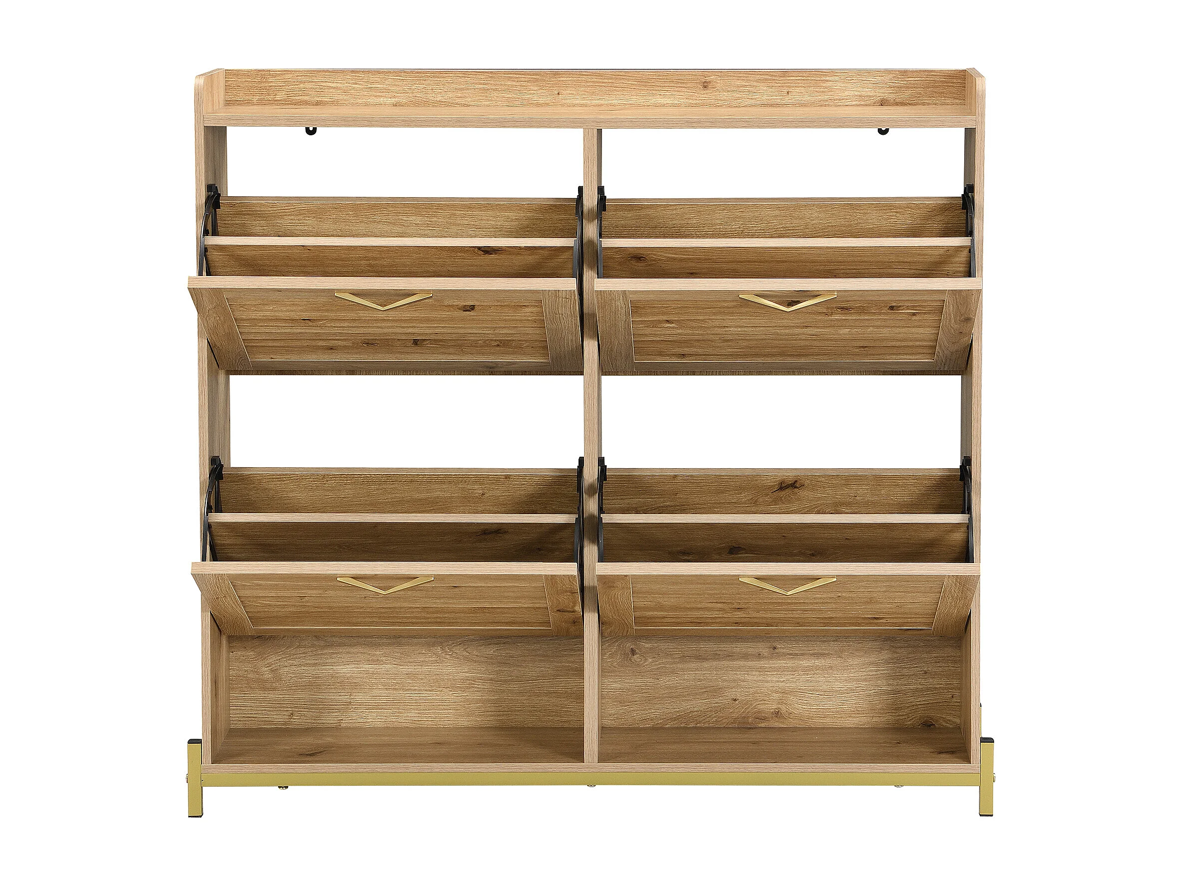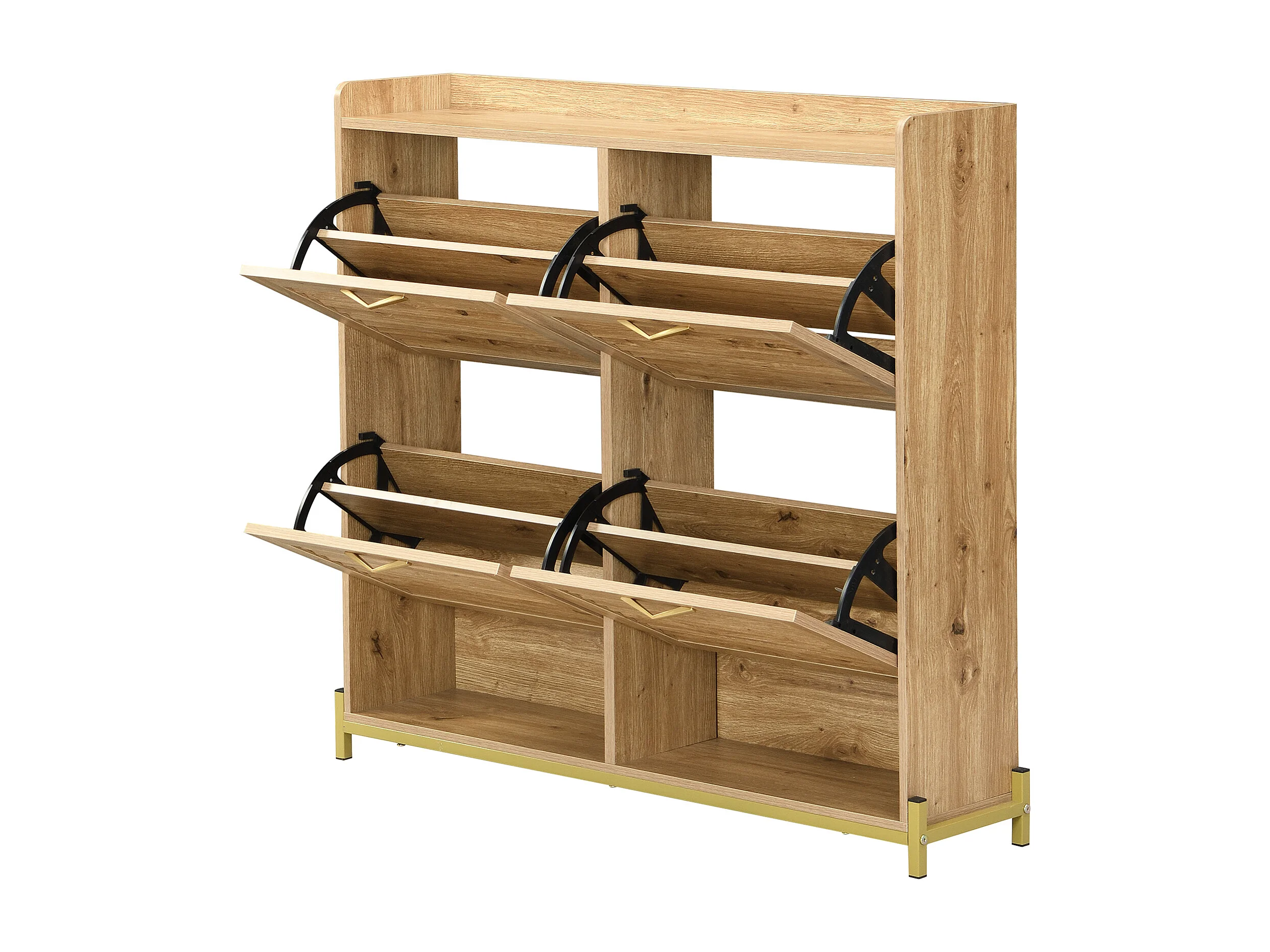 Meuble à chaussures avec 4 portes - Base en métal - Couleur bois 108.5x24x100cm
