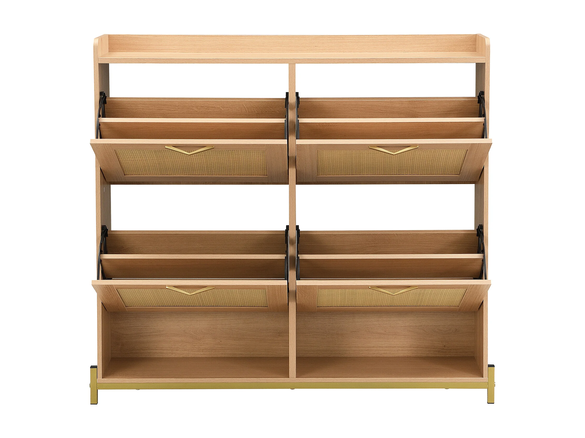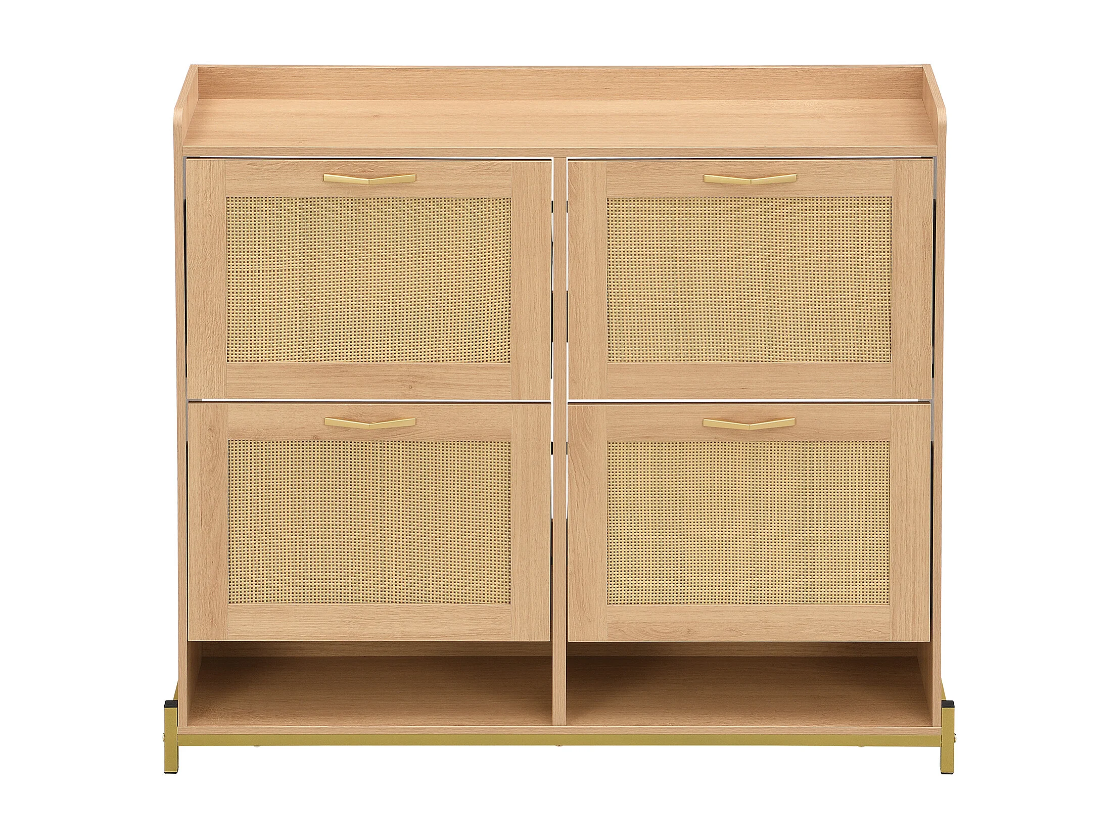 Meuble à chaussures avec 4 portes en rotin - Base en métal - Couleur chêne clair