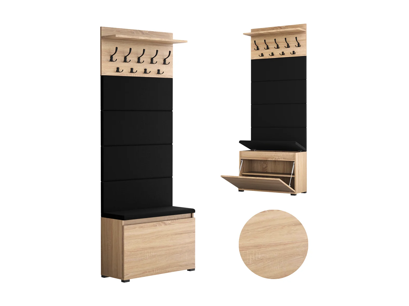 Meuble à chaussures avec assise, banc rembourré et patère pour entrée