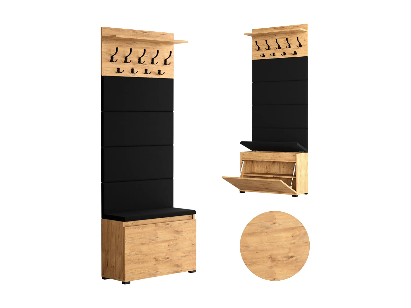 Meuble à chaussures avec assise, banc rembourré et patère pour entrée