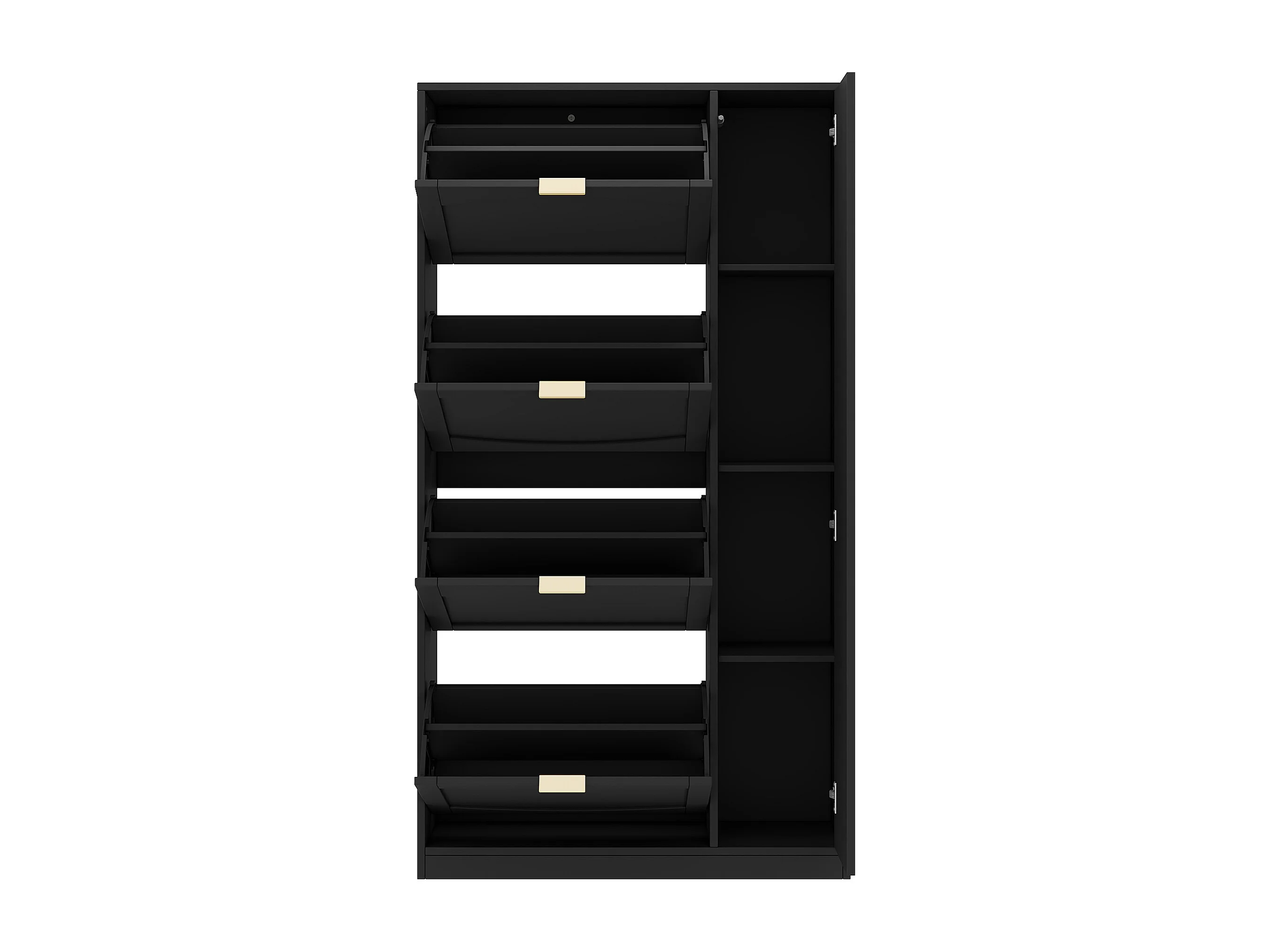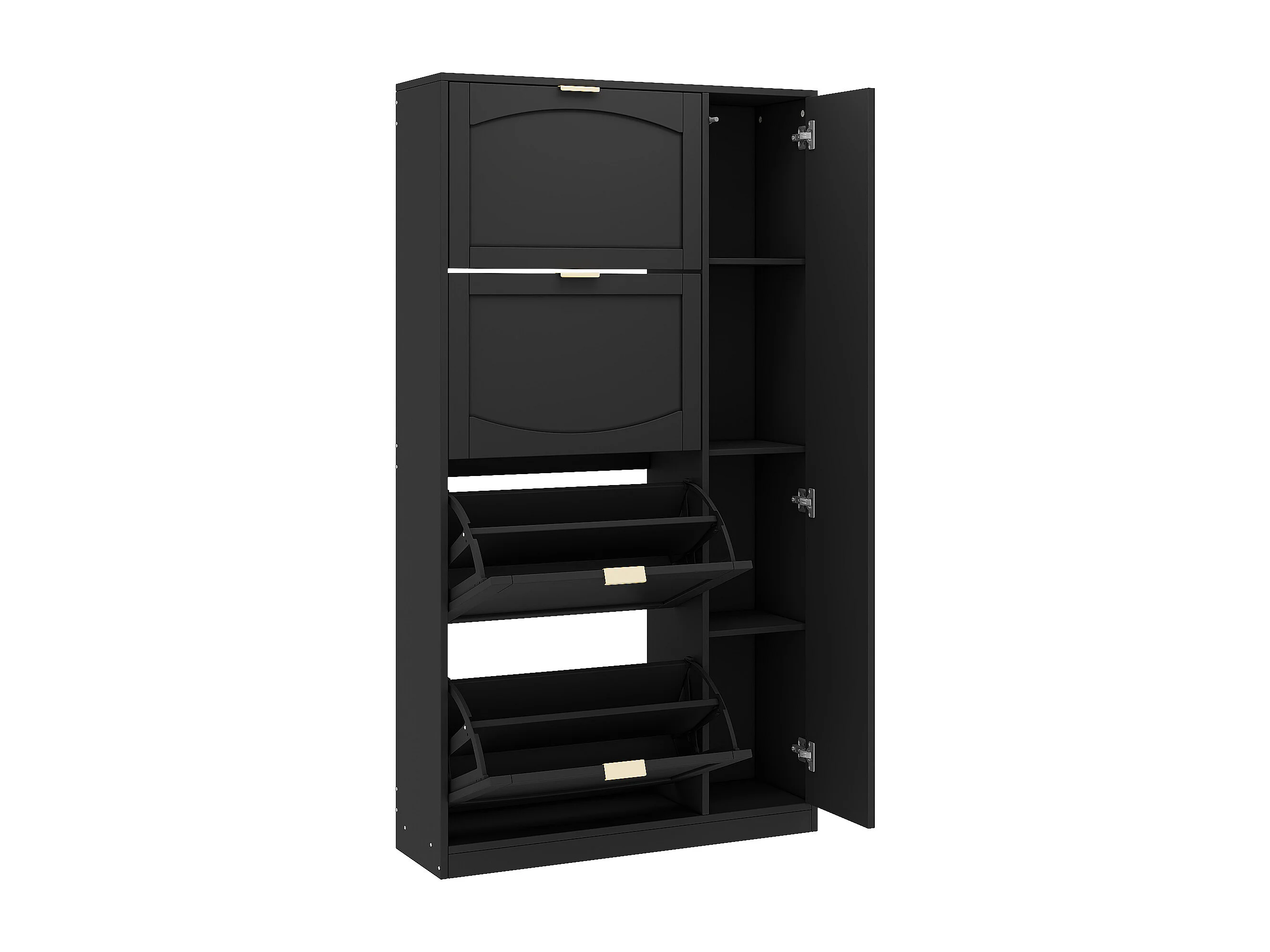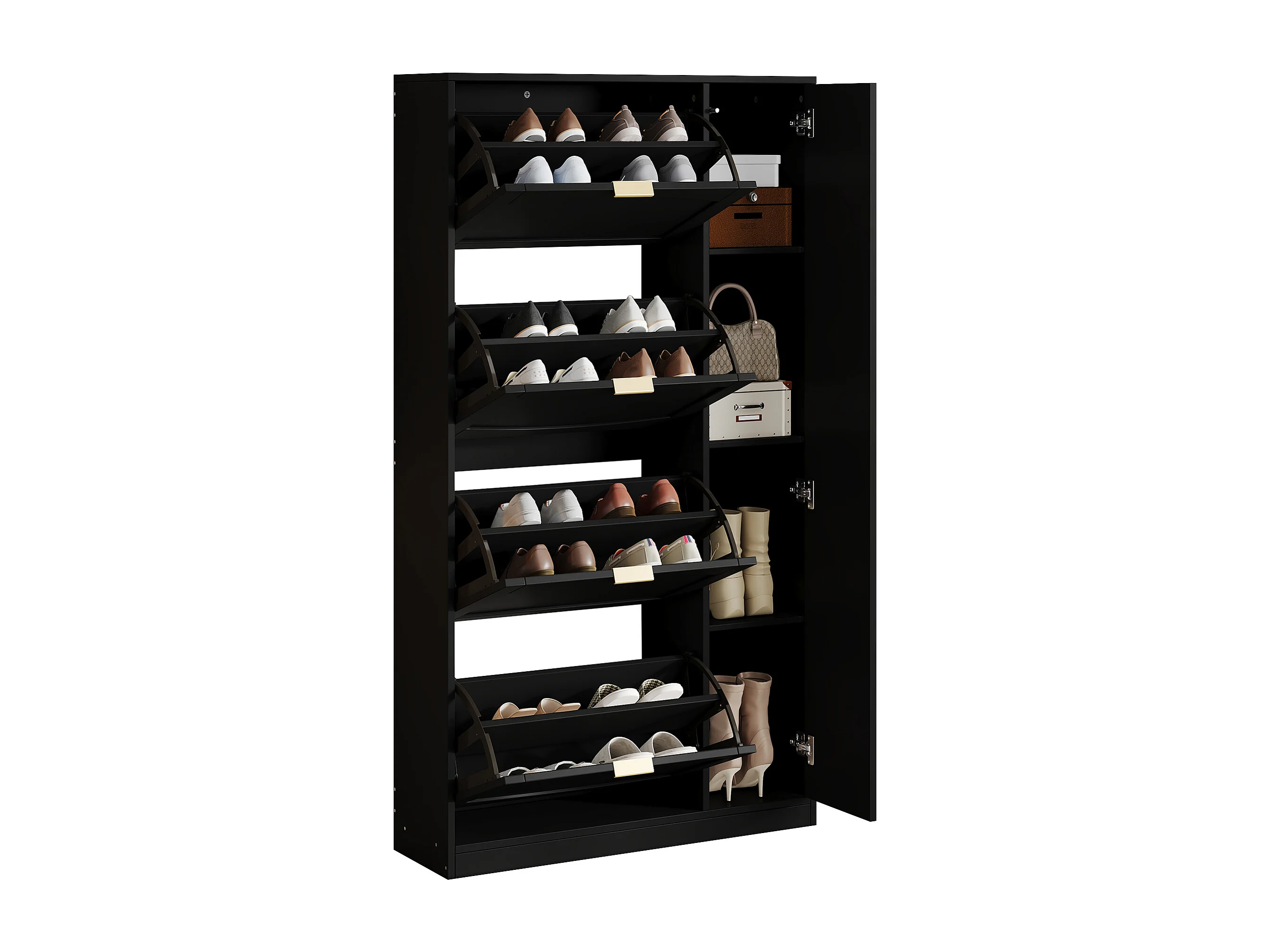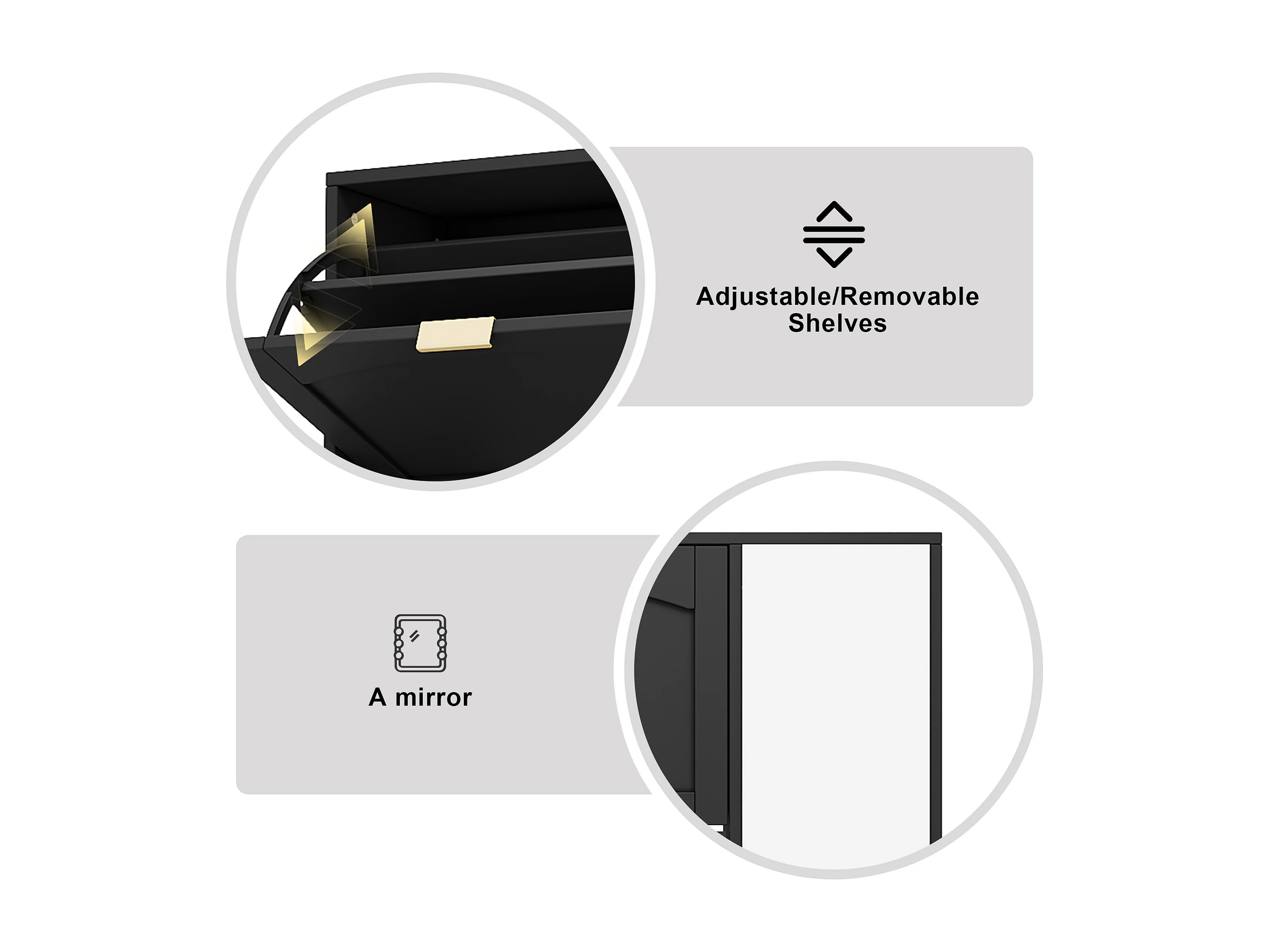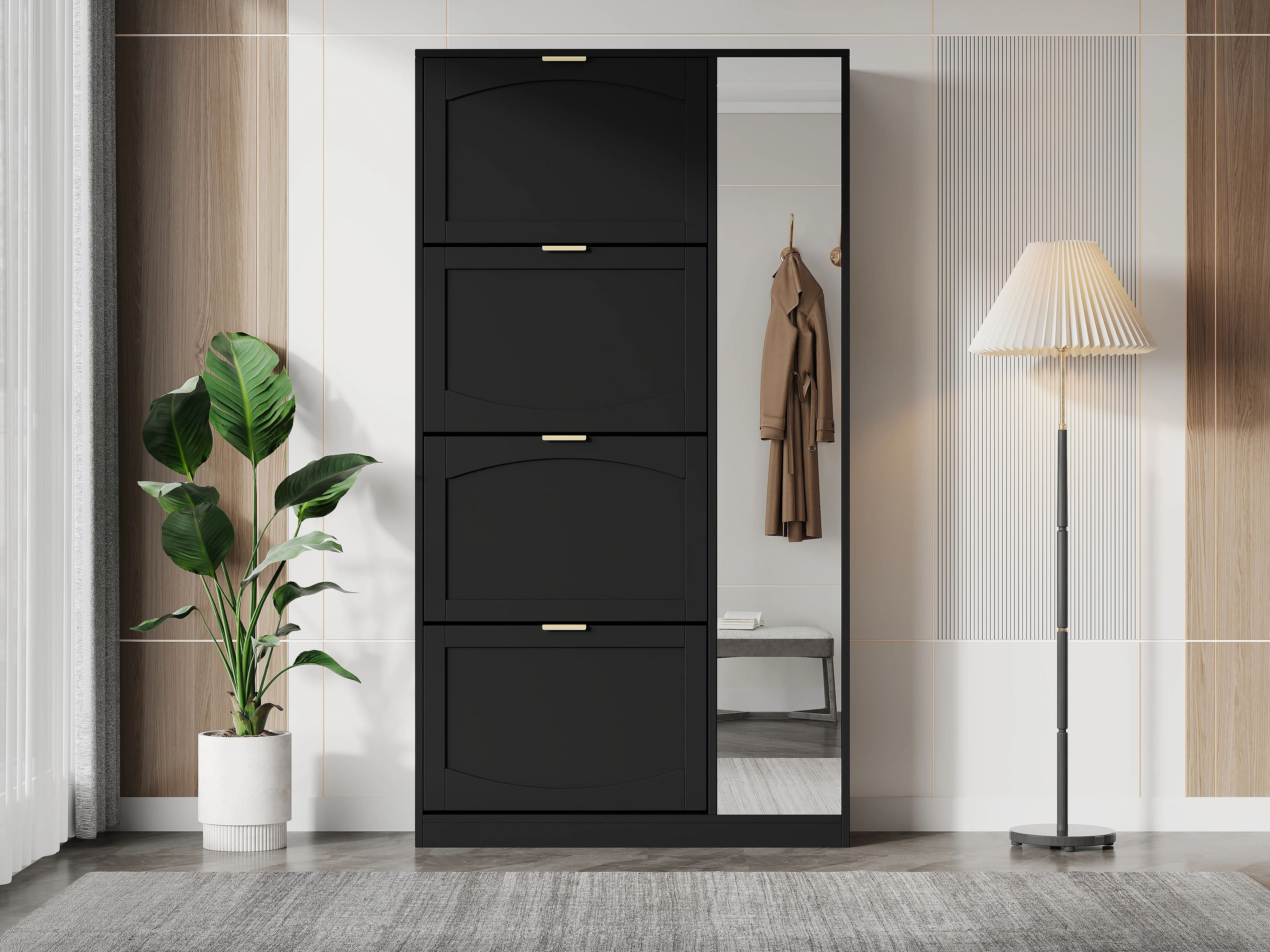 Meuble à chaussures avec miroir, 4 compartiments de rabattables - Noir