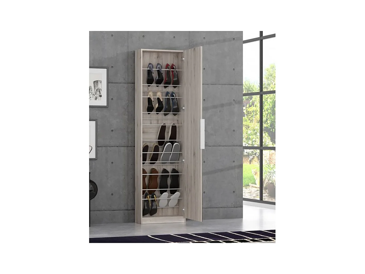 Meuble à chaussures avec miroir pour 12 paires décor chêne - DINO