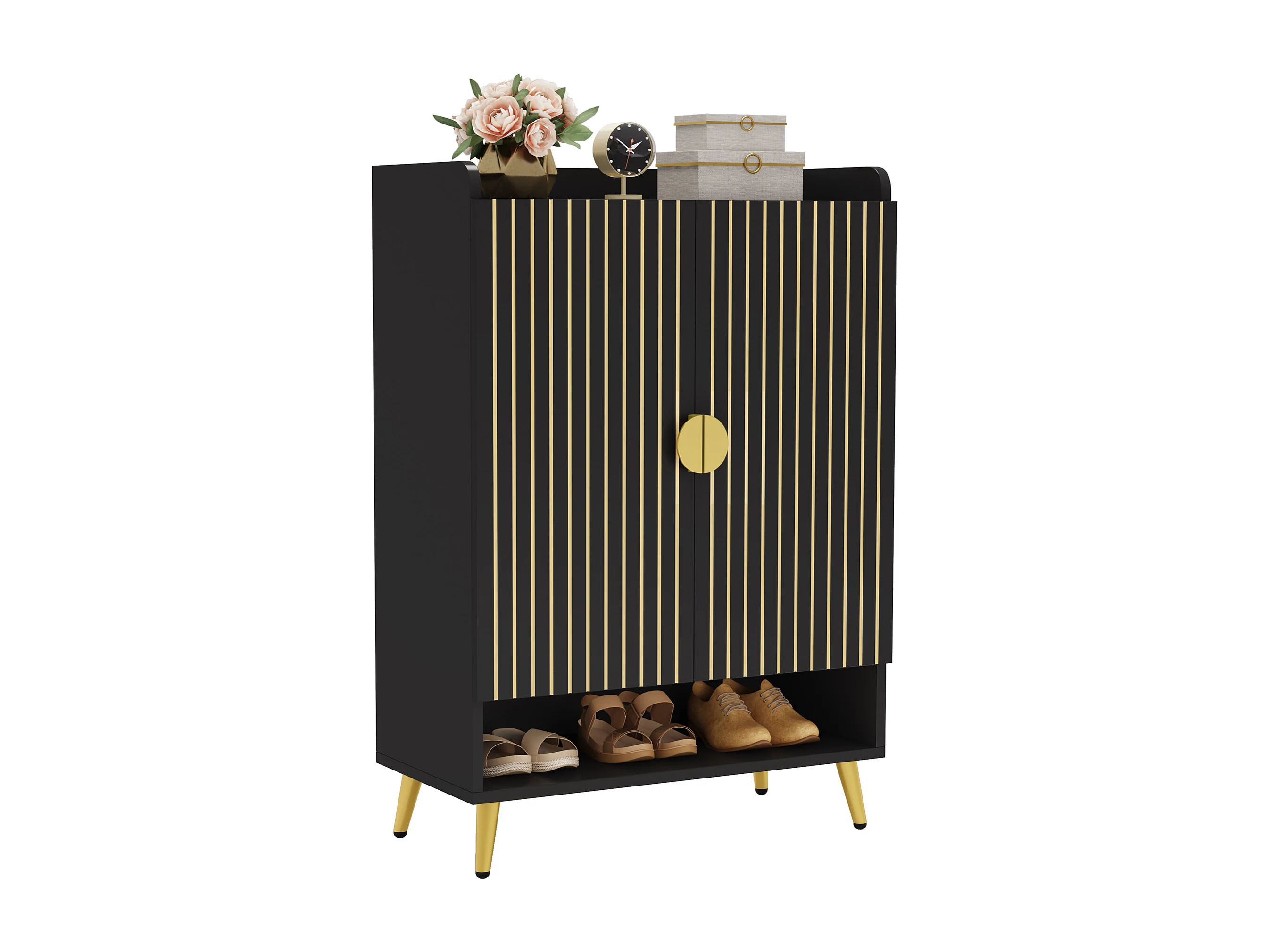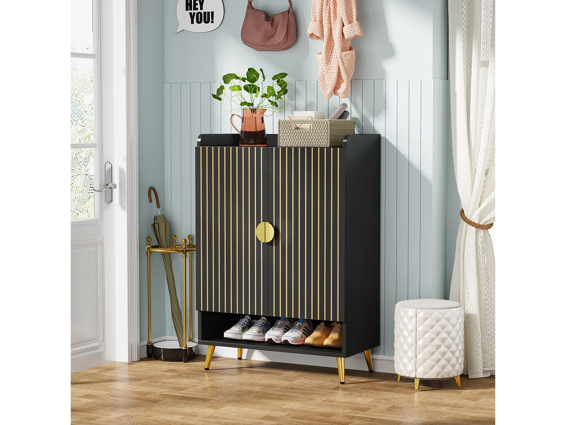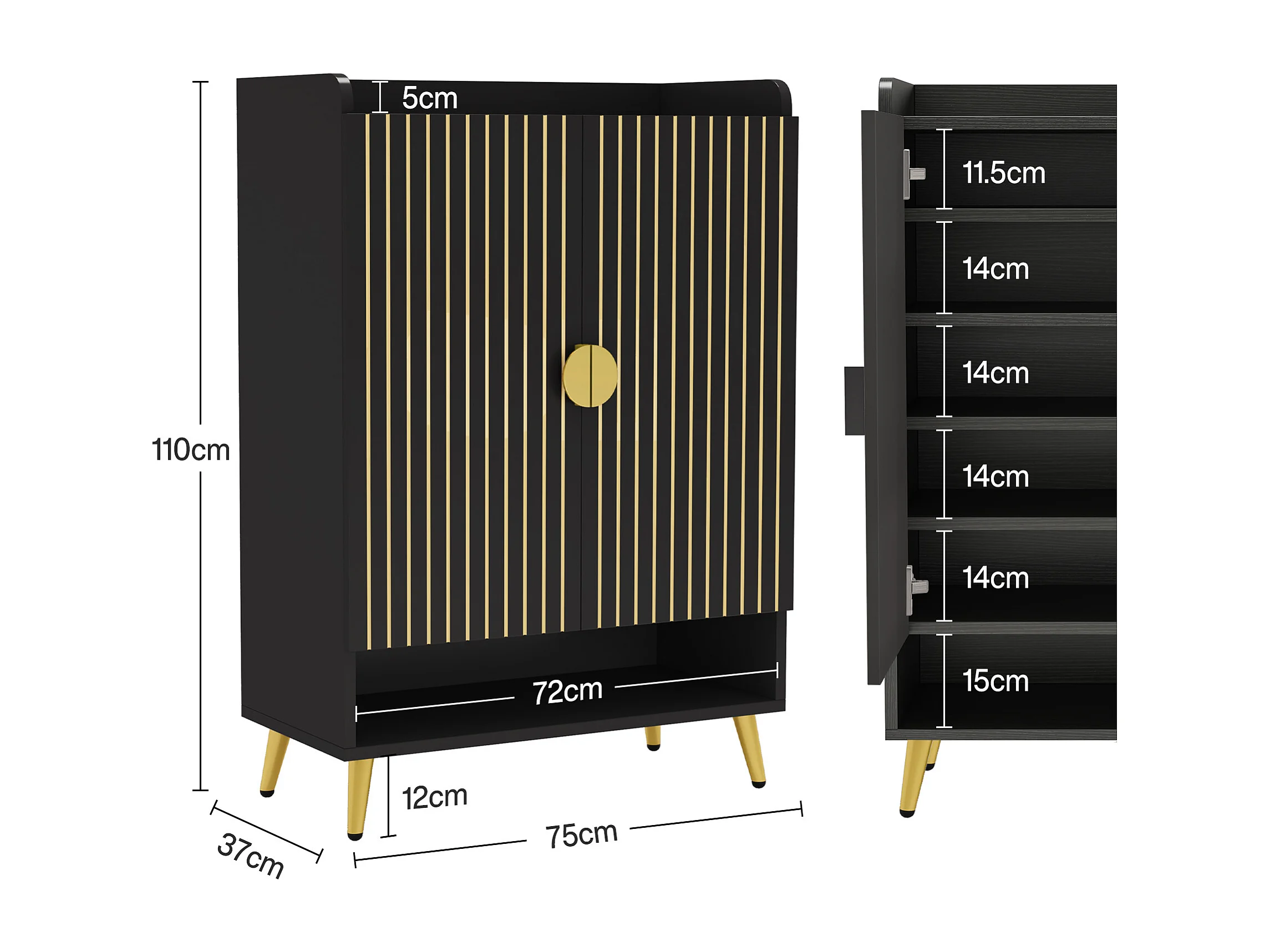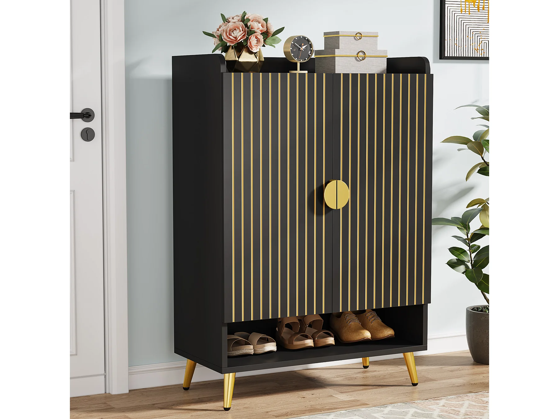 Meuble à chaussures avec portes, meuble de rangement à chaussures à 6 niveaux avec étagères réglables