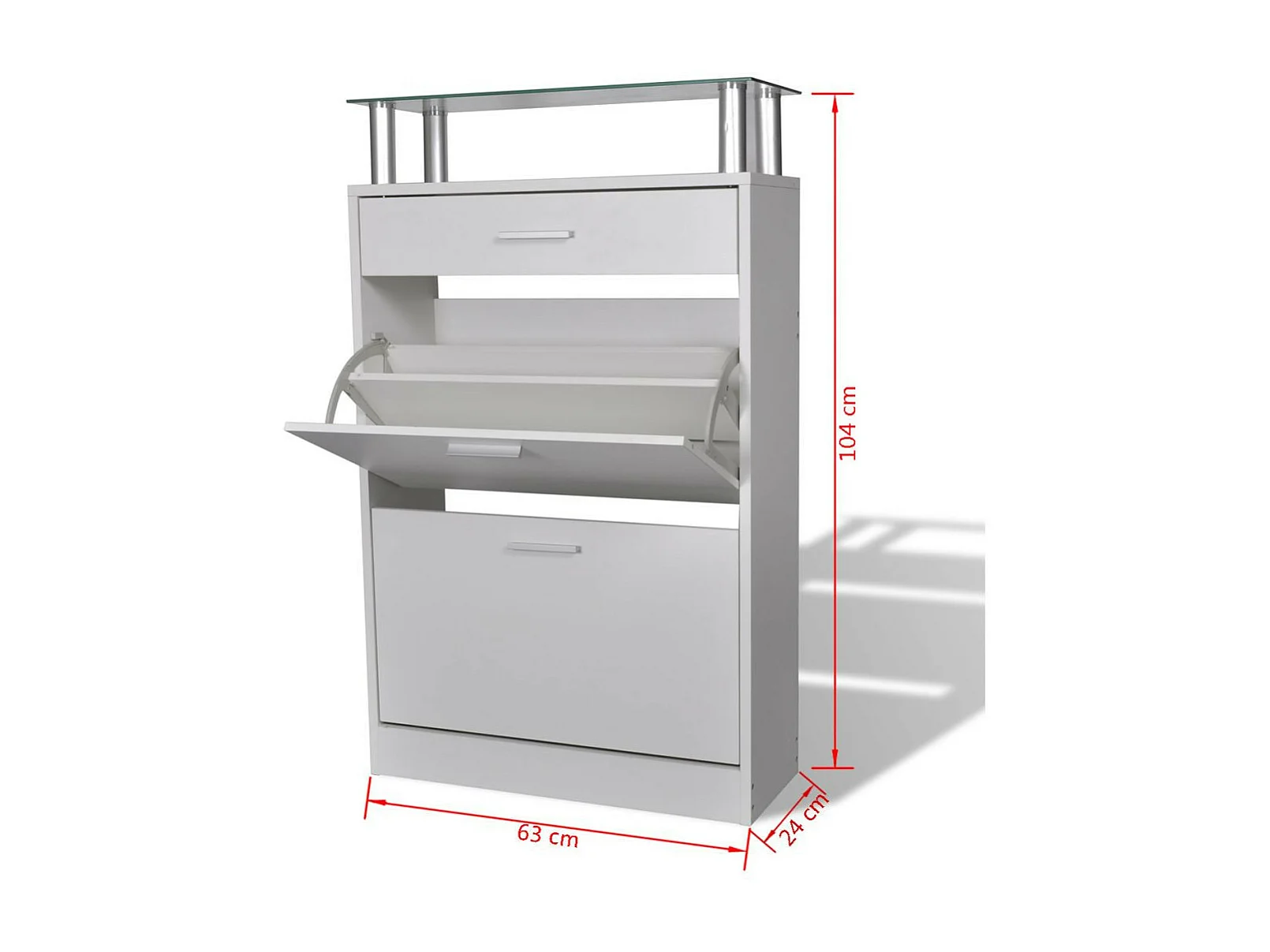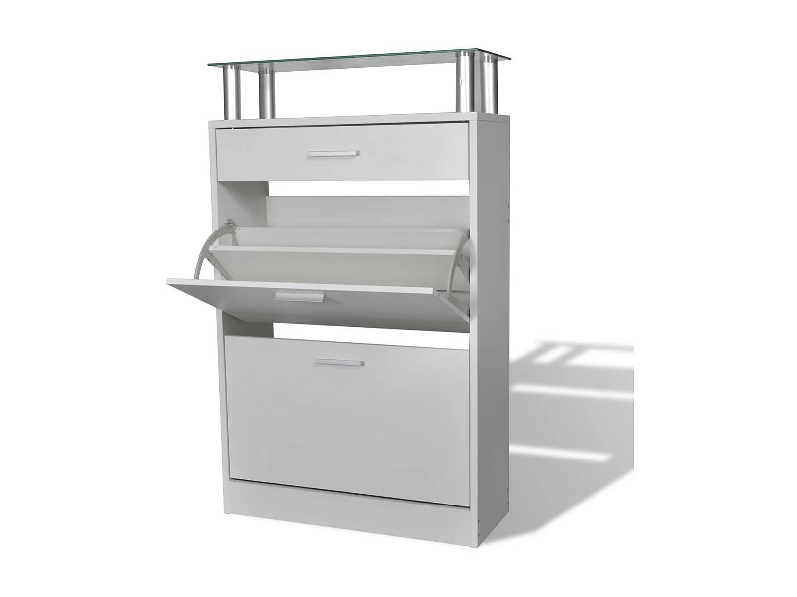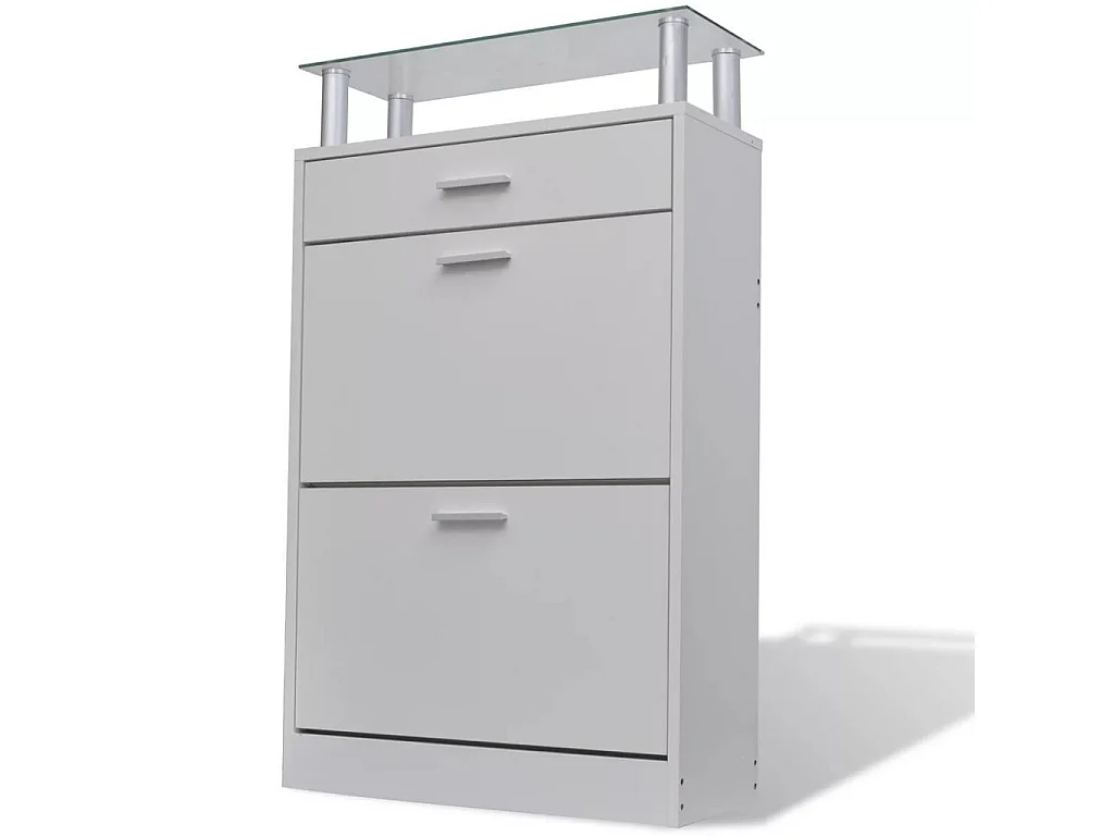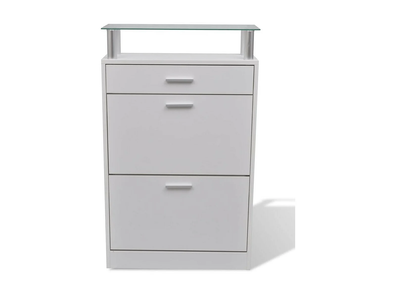 Meuble à chaussures avec tiroir et plateau en verre Bois Blanc