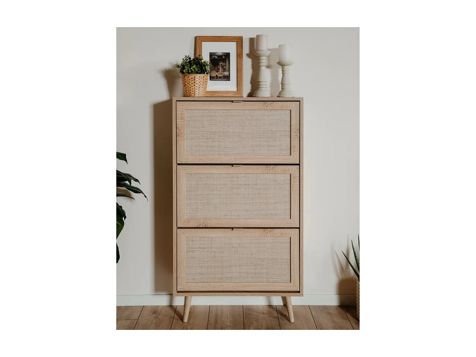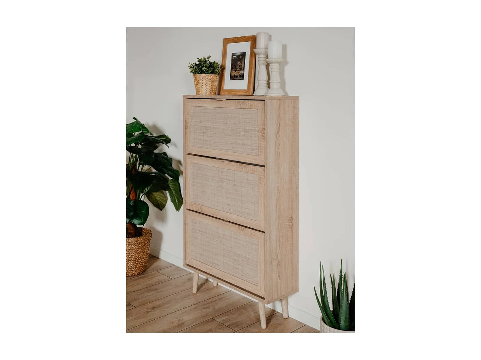 Meuble à chaussures Bali 49A Chêne sonoma/ impression de canne FR48324