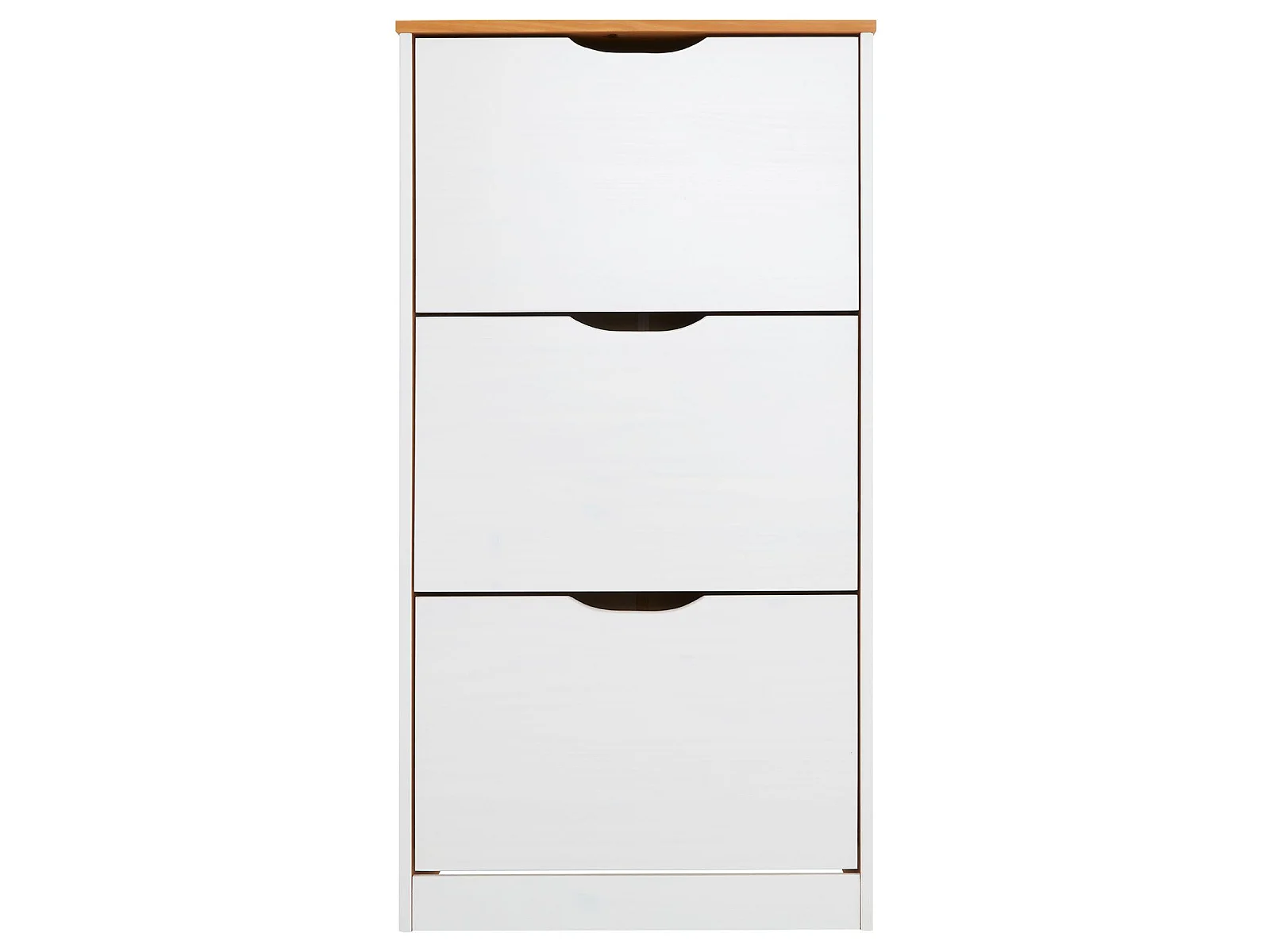 Meuble à chaussures BASIL armoire avec 3 abattants rangement pour 18 paires, pin massif lasuré blanc et brun, style campagne