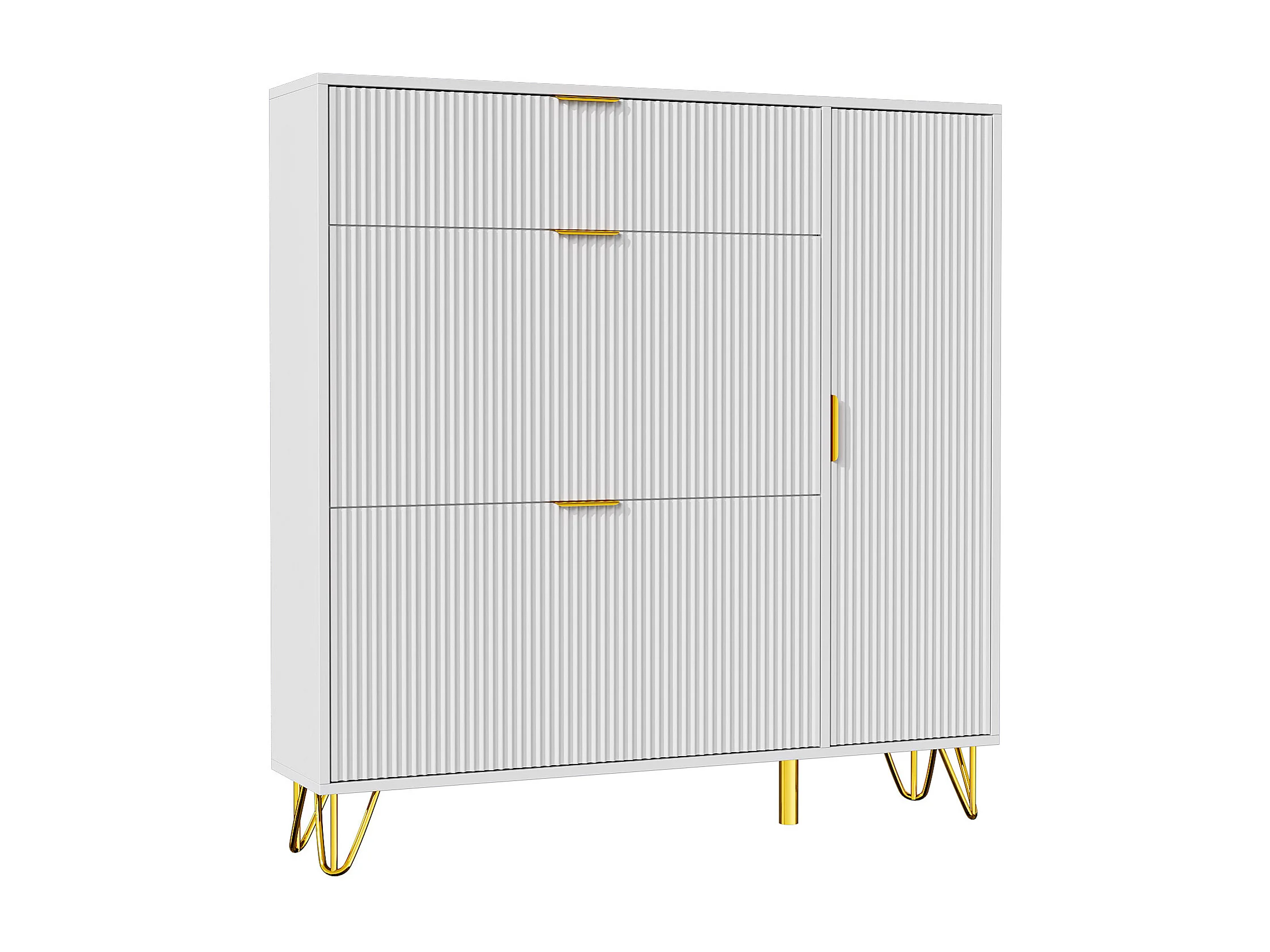 Meuble à chaussures blanc à 3 abattants et 1 porte, avec étagères réglables, 110 x 24 x 118,5 cm