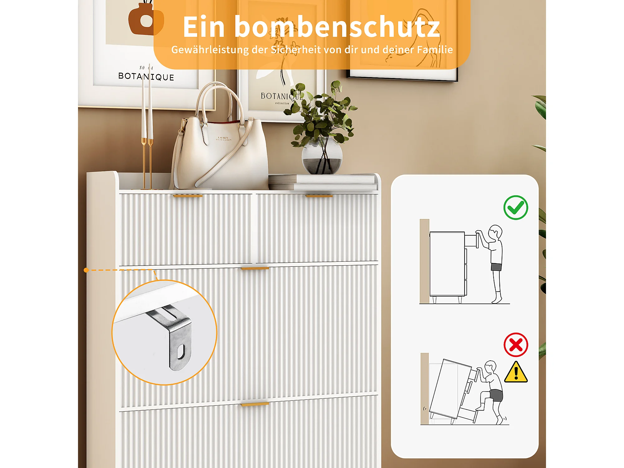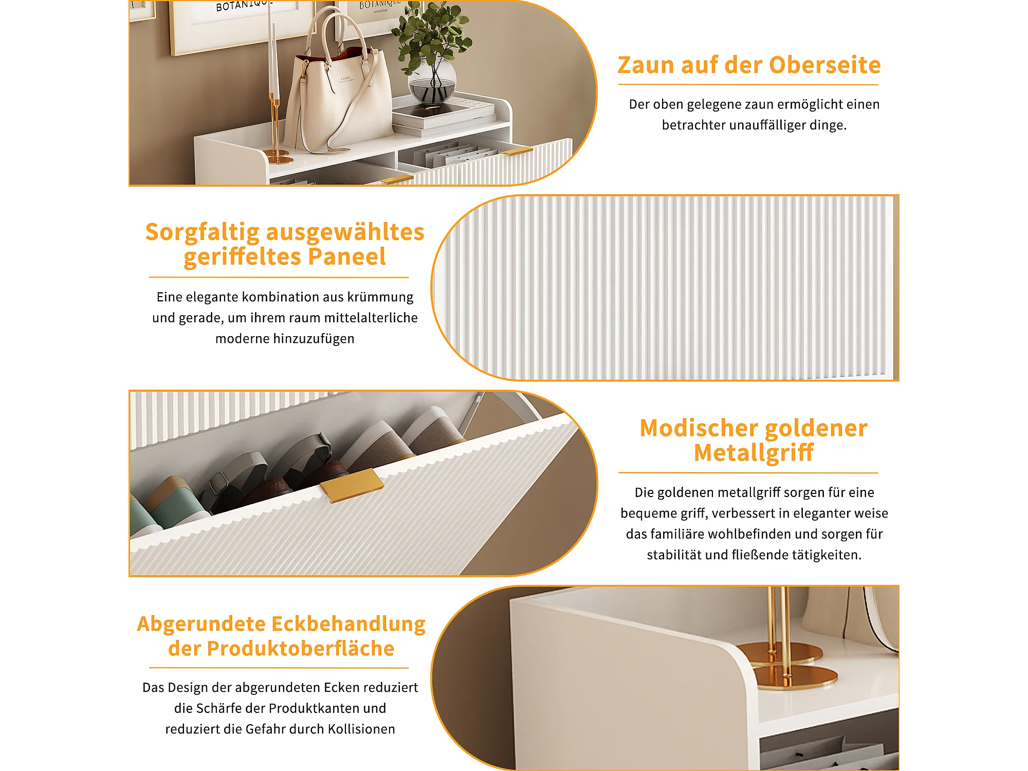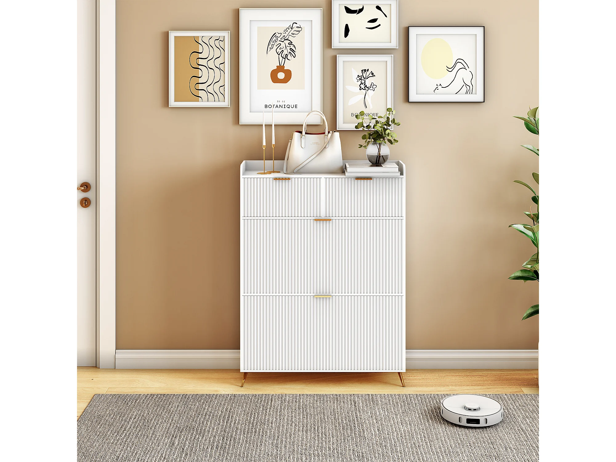 Meuble à chaussures blanc avec 2 tiroirs et 2 abattants, design moderne, rangement multifonction, bois & métal, facile à assembler