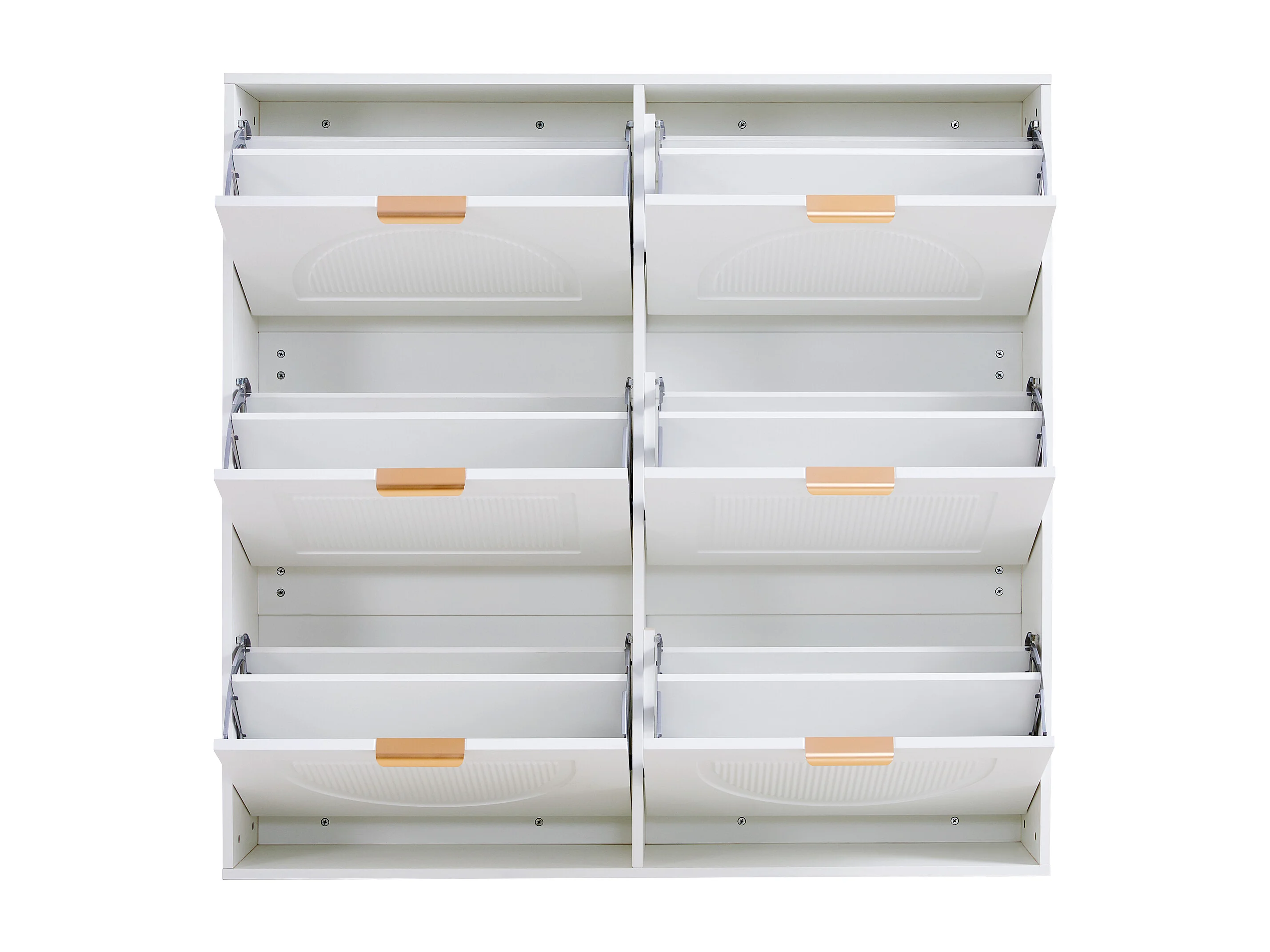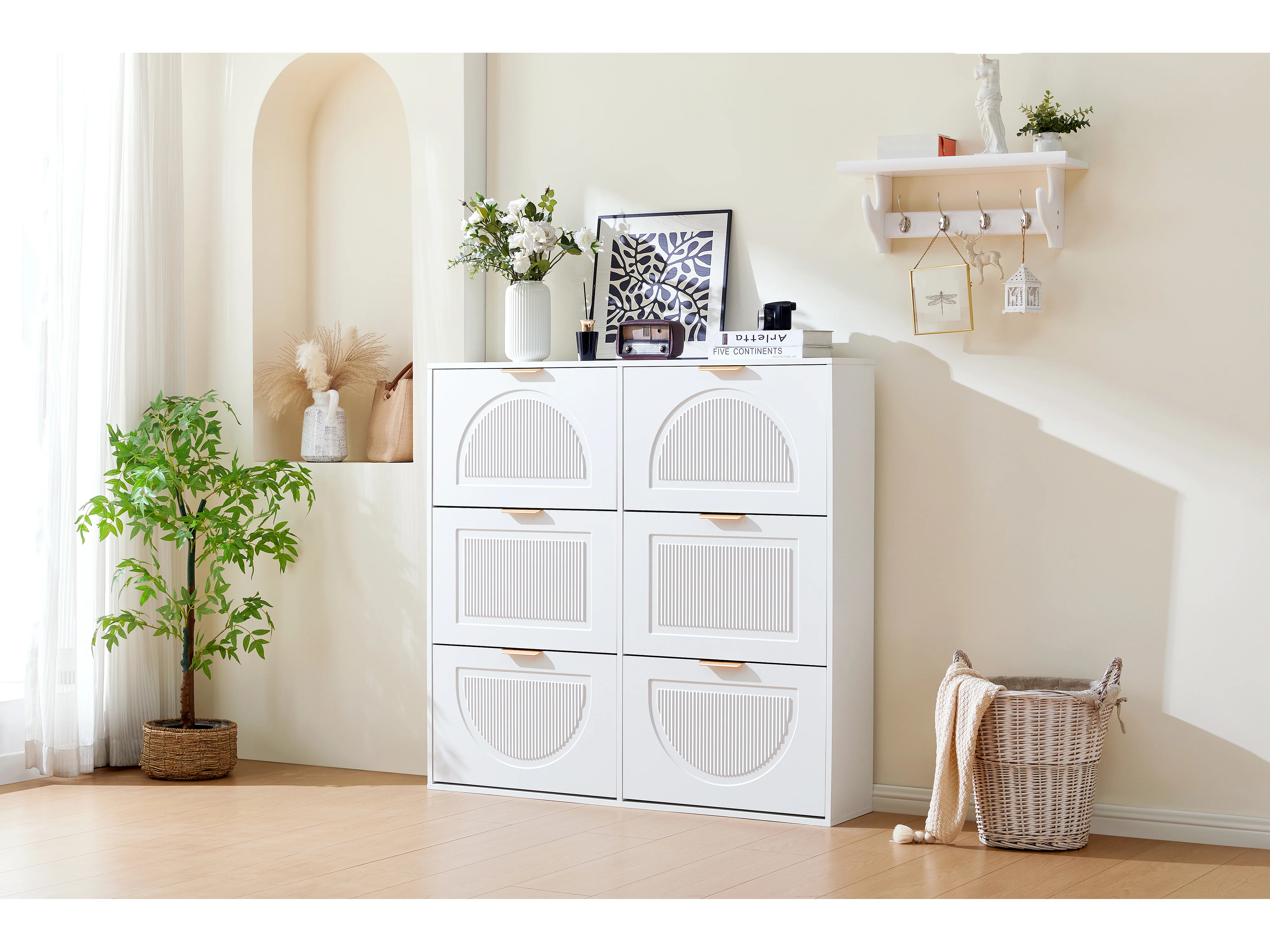 Meuble à chaussures blanc avec 6 portes abattants 118x25x115 cm