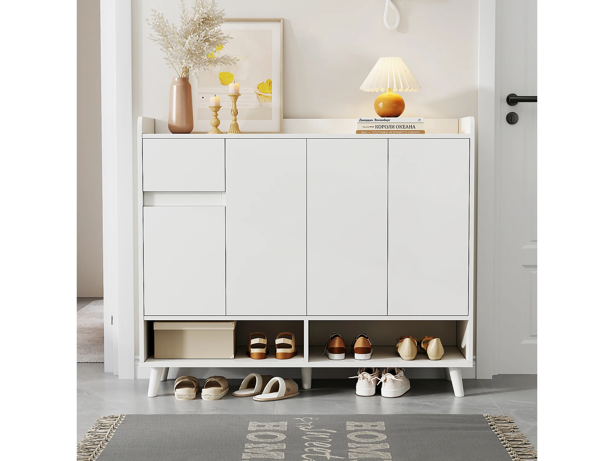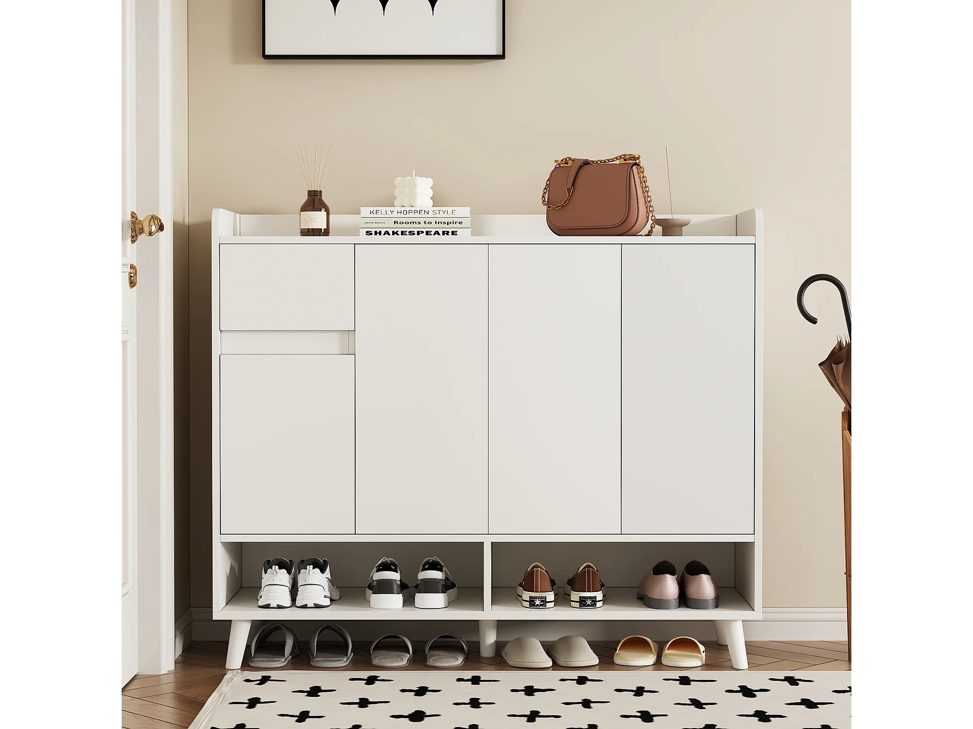 Meuble à chaussures blanc - Meuble à chaussures avec 1 tiroir et 4 portes - étagères réglables et rangement ouvert
