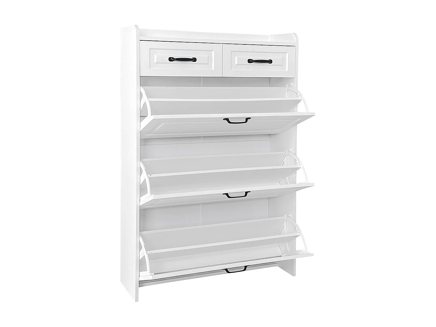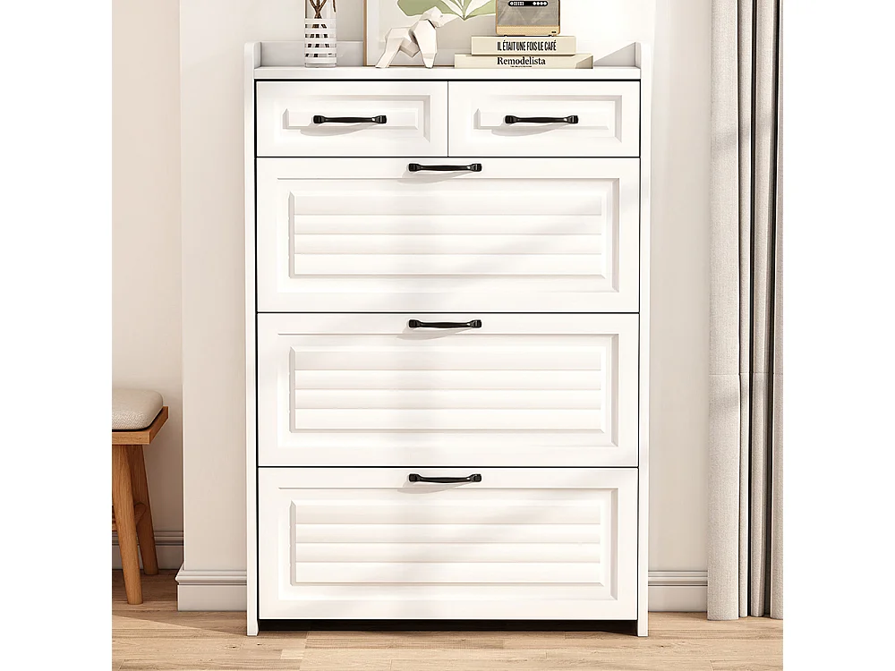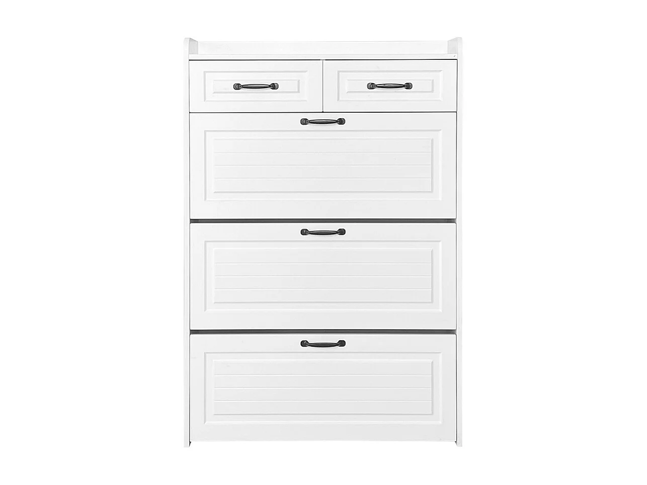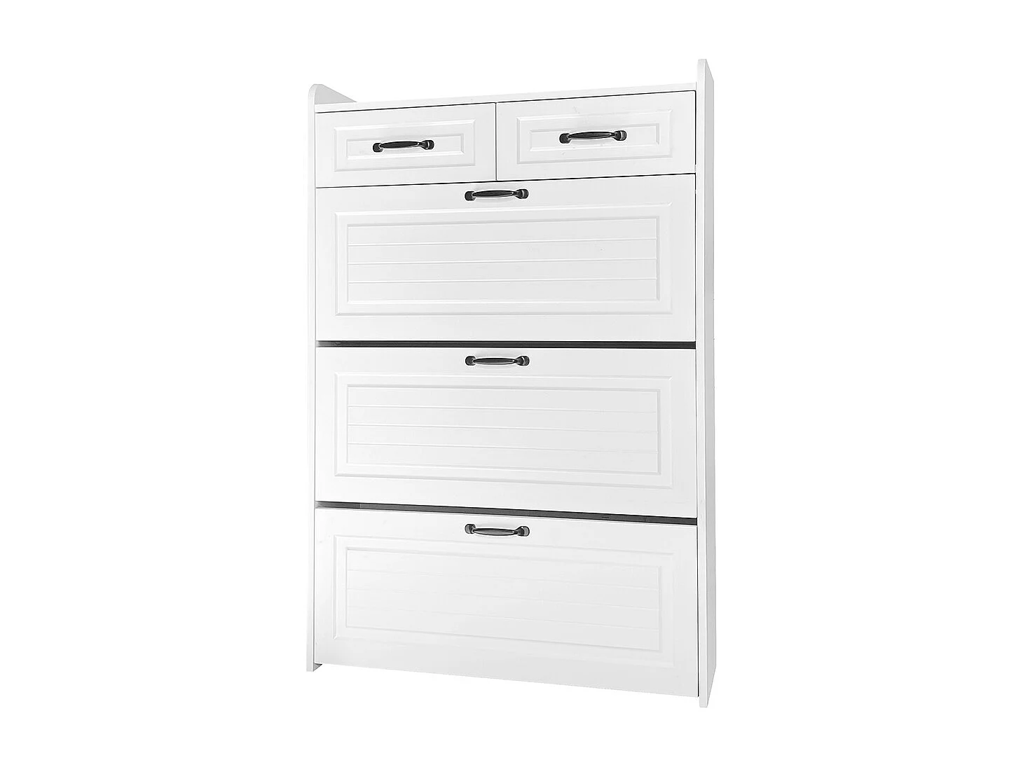 Meuble à chaussures blanc trois volets deux tiroirs bois entrées salons
