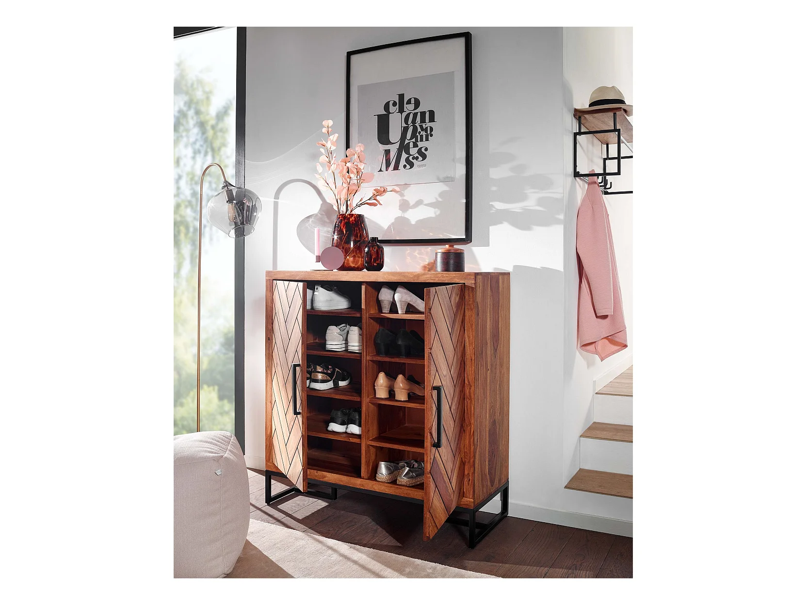 Meuble à Chaussures Bois Massif 100 cm Rangement Meuble de Entrée
