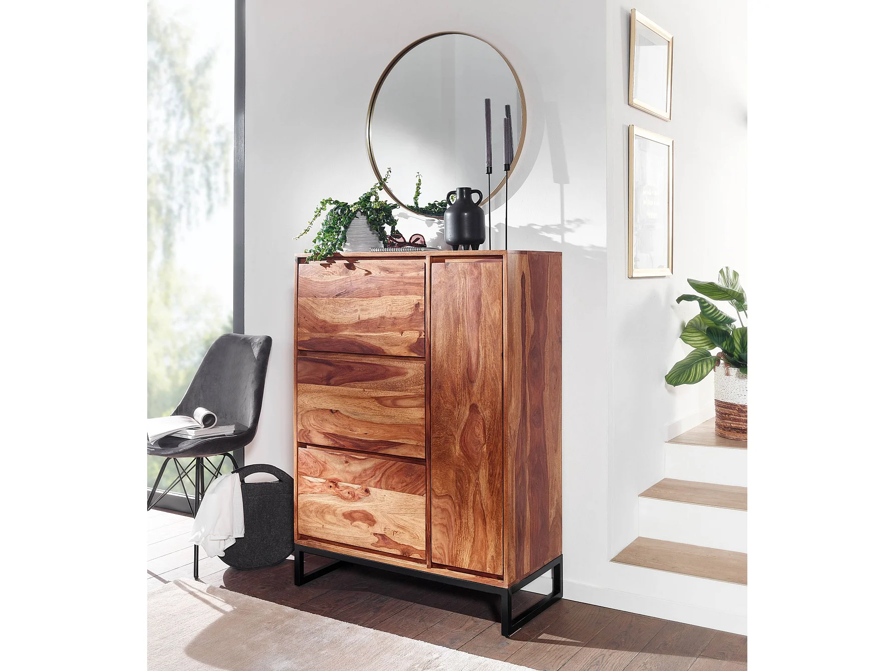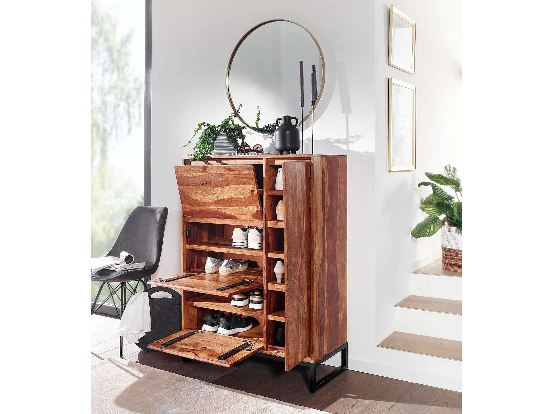 Meuble à Chaussures Bois Massif 120 cm Rangement Meuble de Entrée