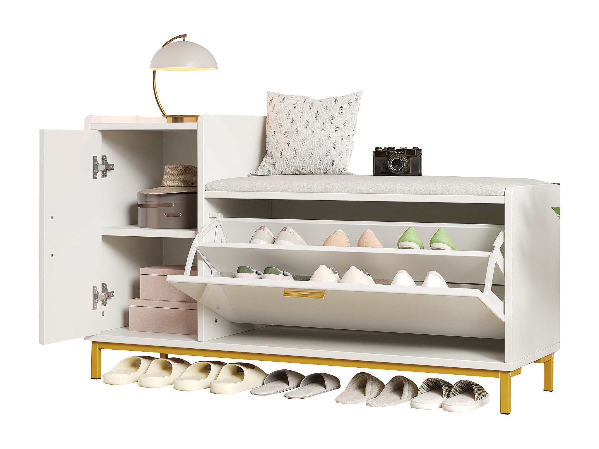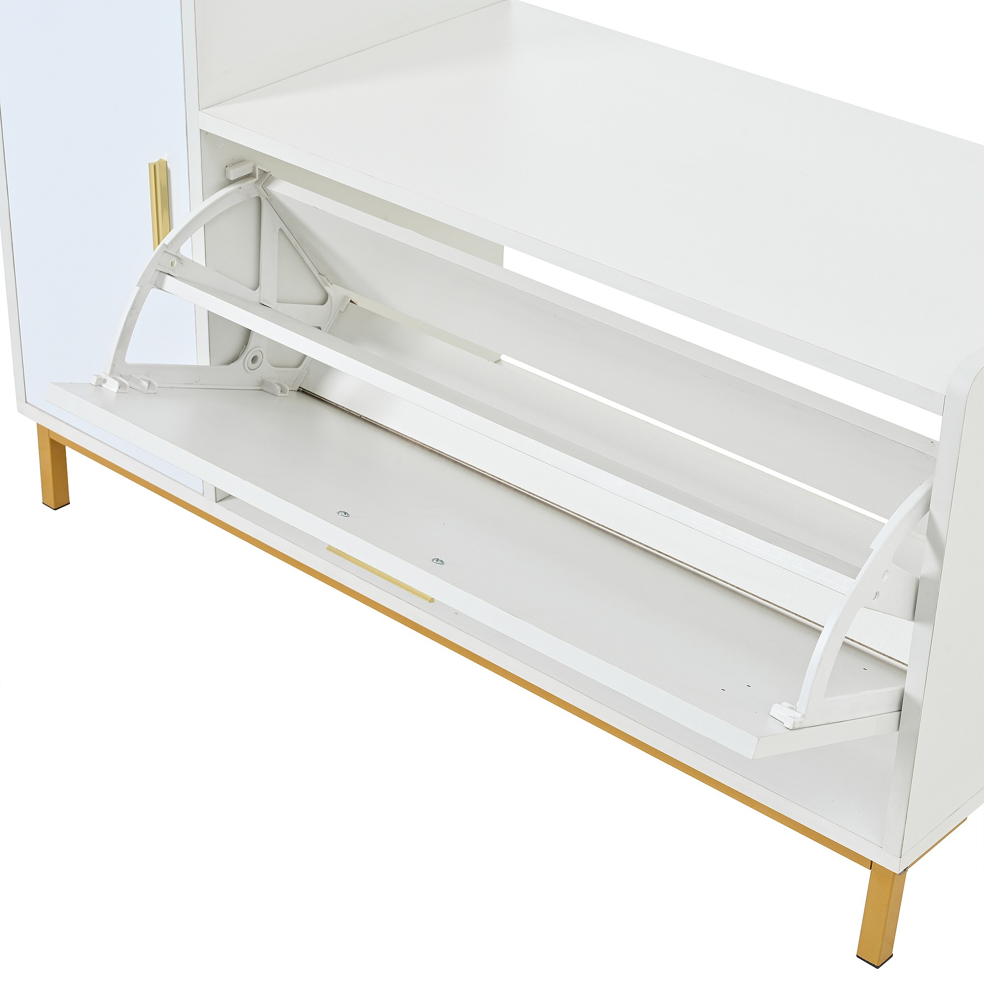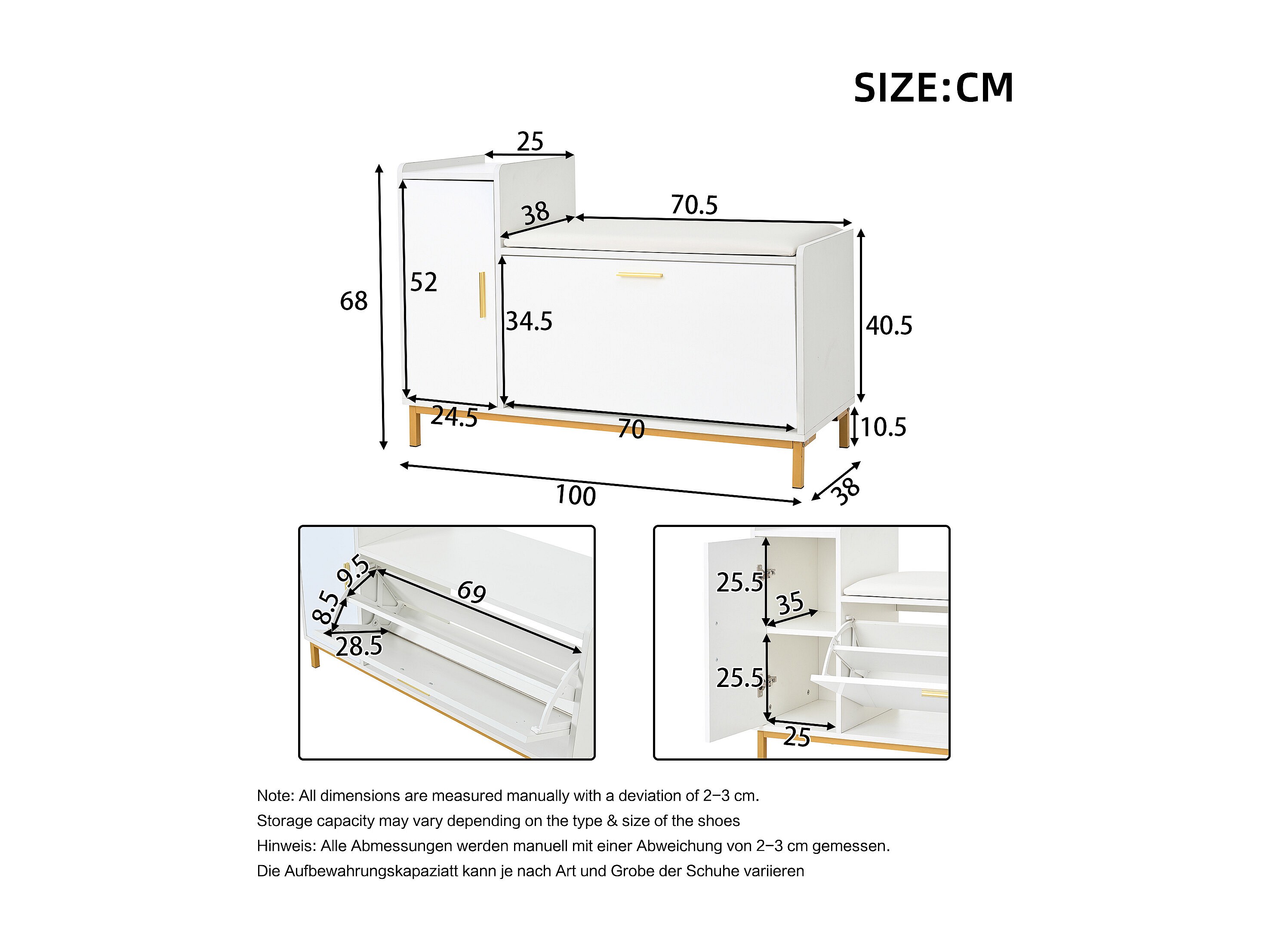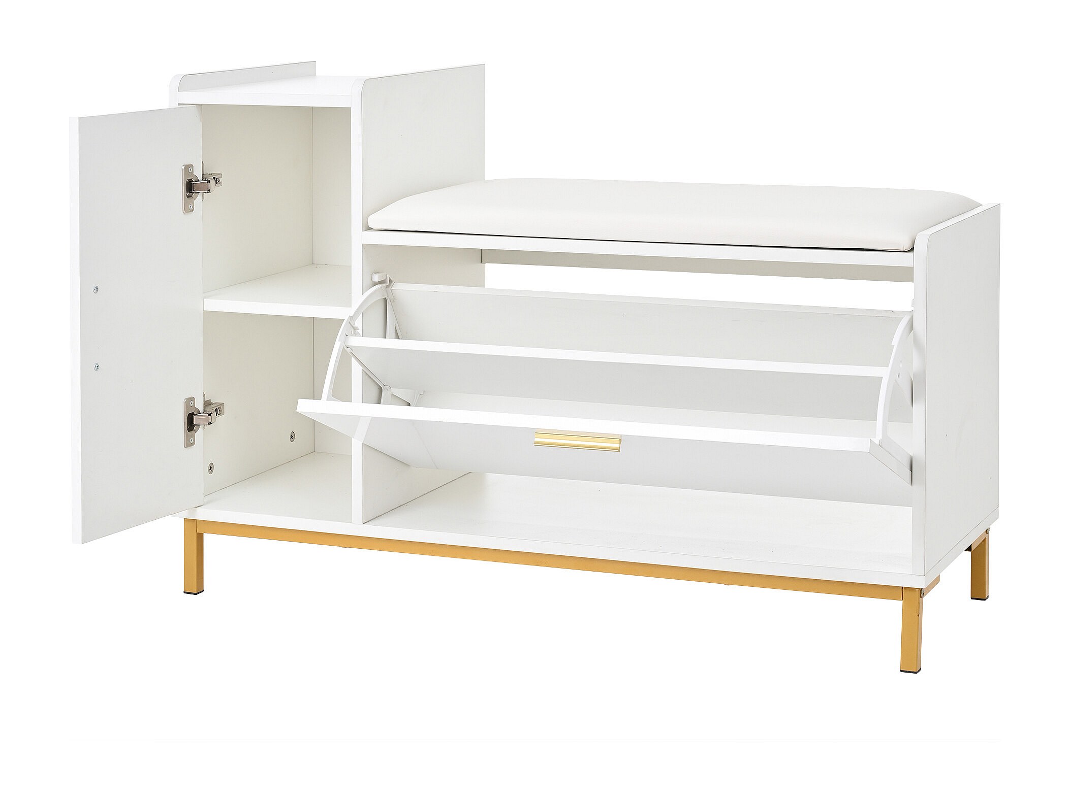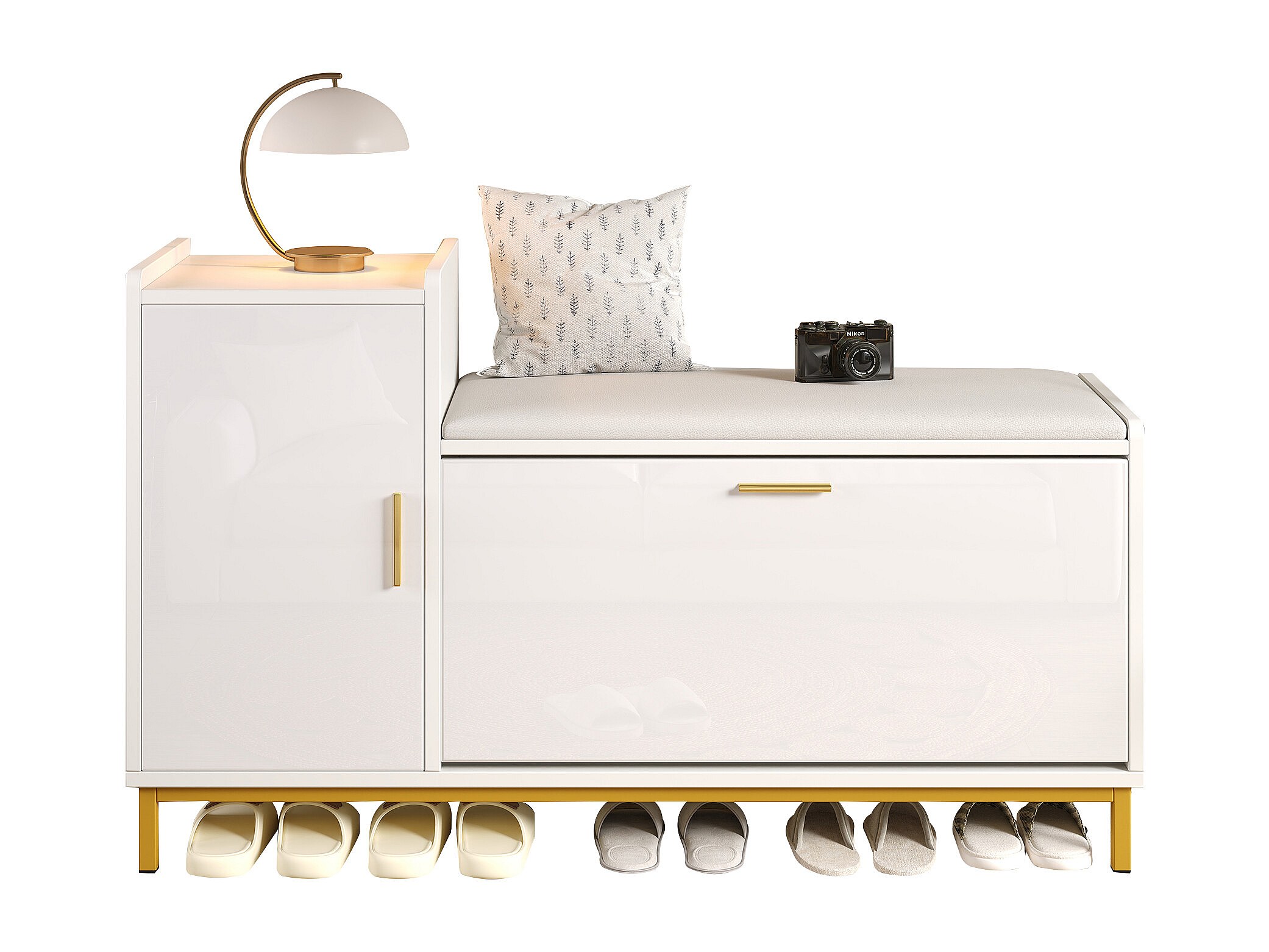 Meuble à chaussures brillant 100x38x68 cm - avec 2 portes - avec table à langer - Pieds en métal - Blanc + or