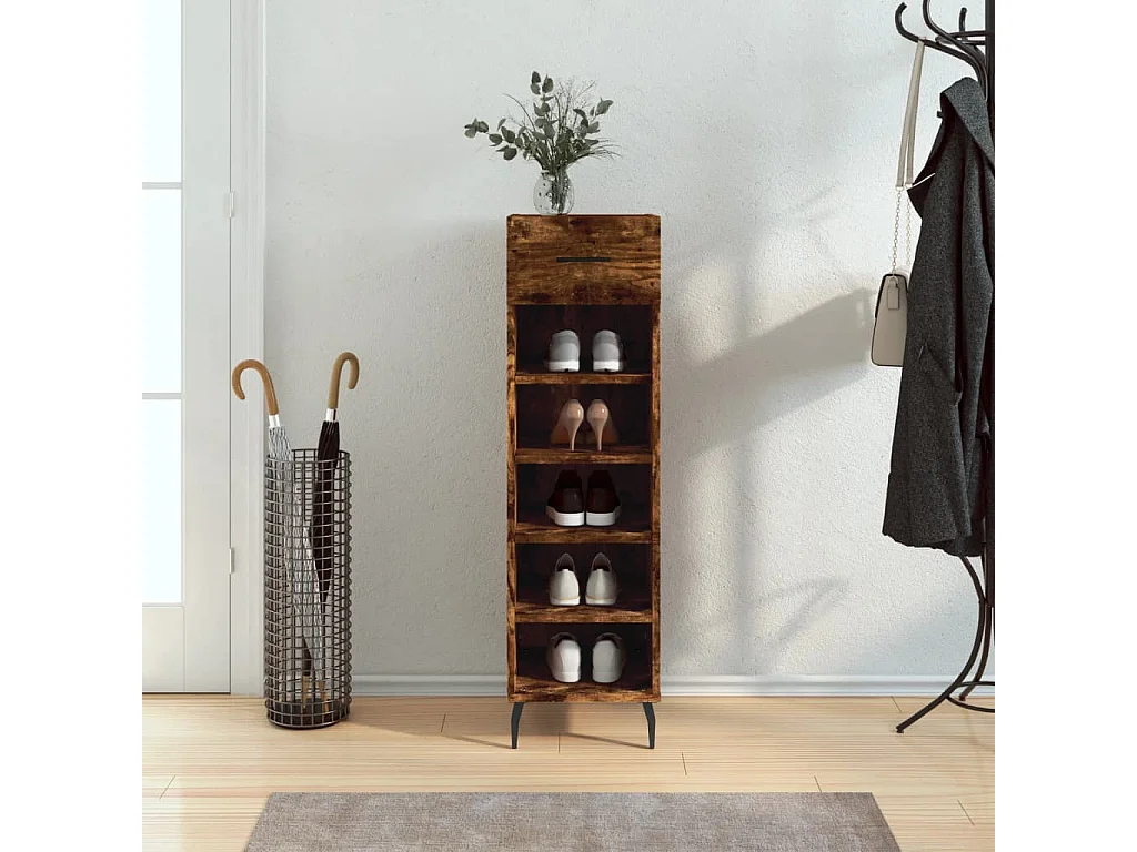 Meuble à chaussures chêne fumé 30x35x105 cm bois d'ingénierie