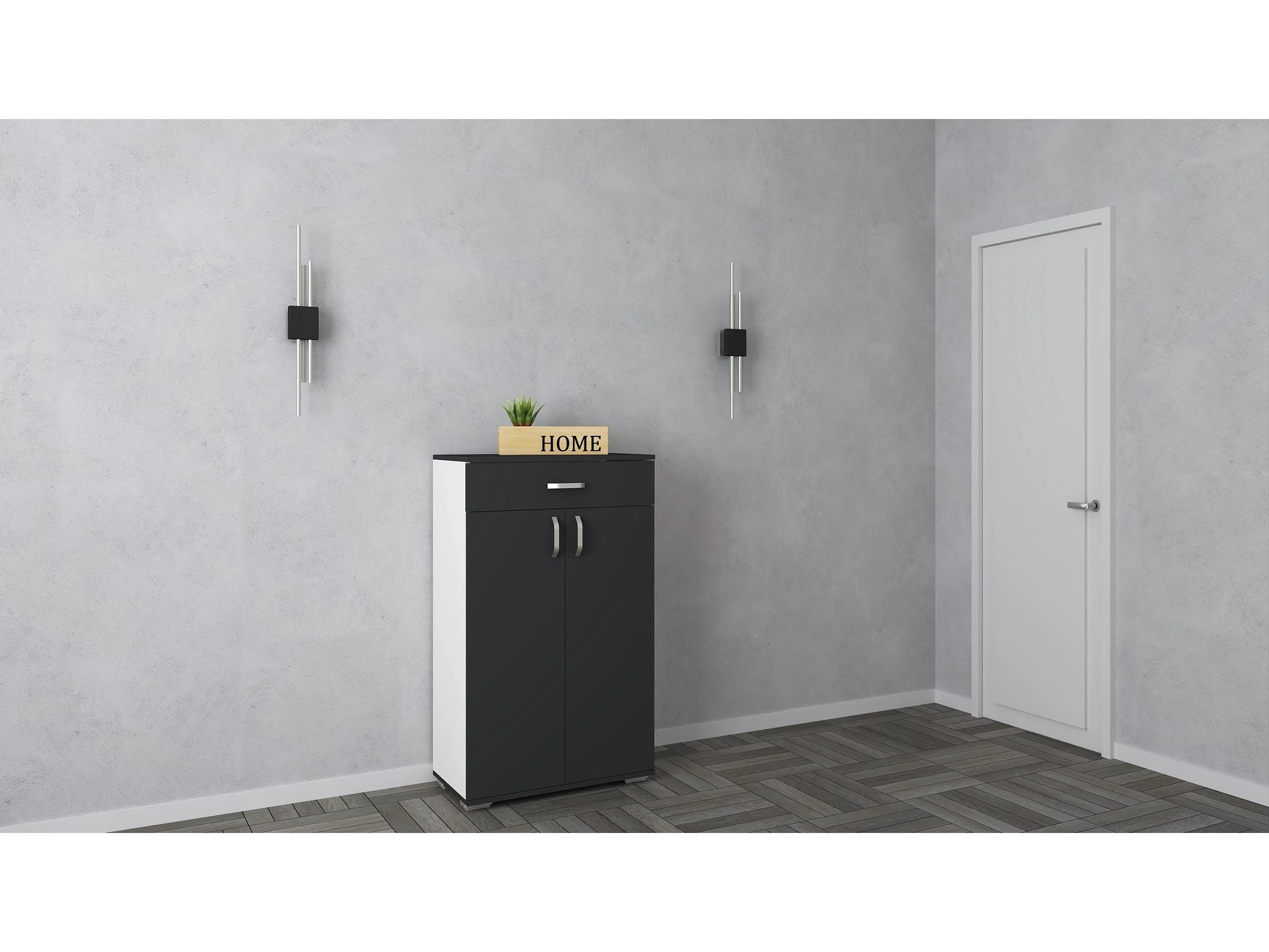 Meuble à chaussures Como, 1 tiroir, 2 portes, Antracite/Blanc, L 66 x l 35 x H 110 cm