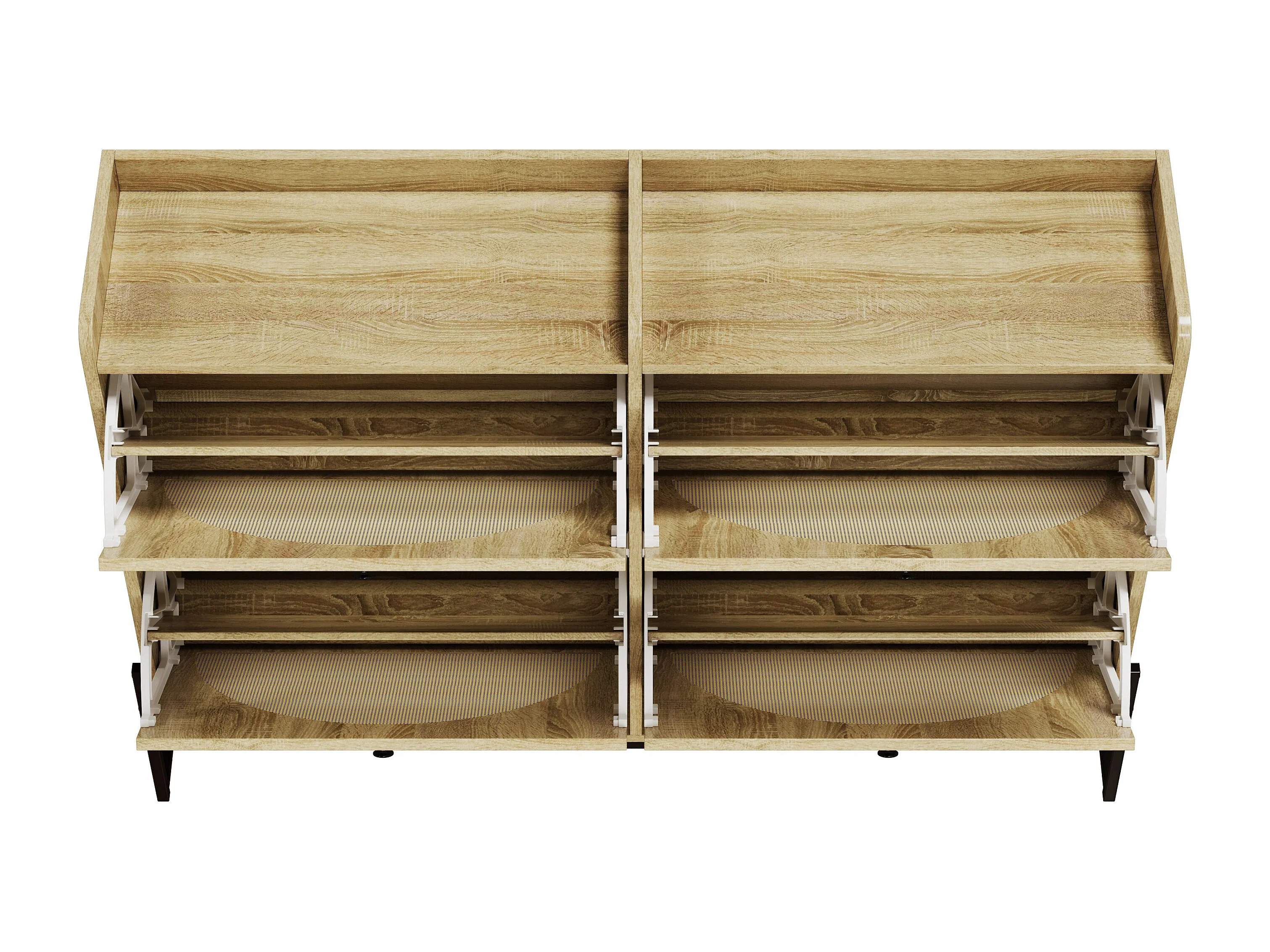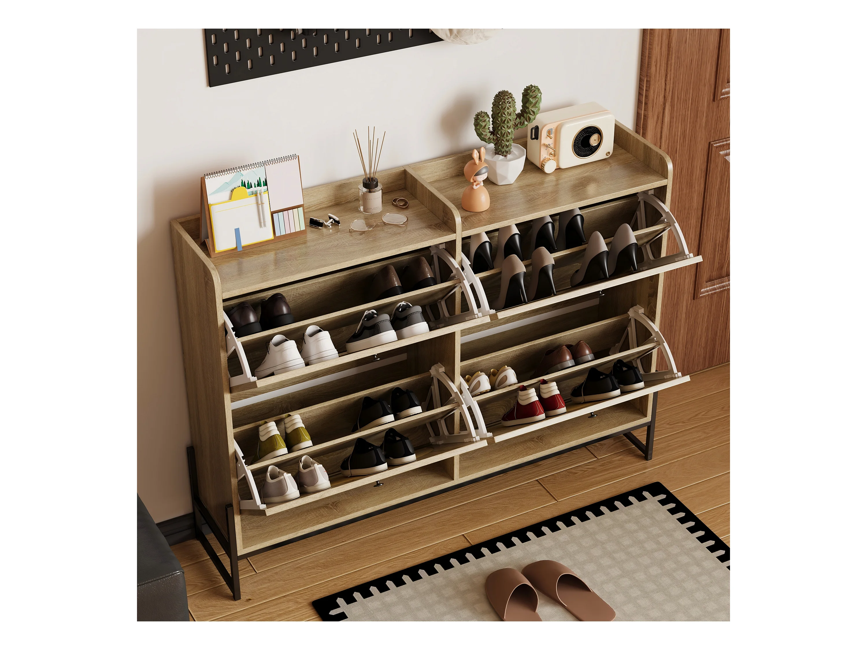 Meuble à chaussures 4 portes abattants - panneaux de particule - Chêne clair
