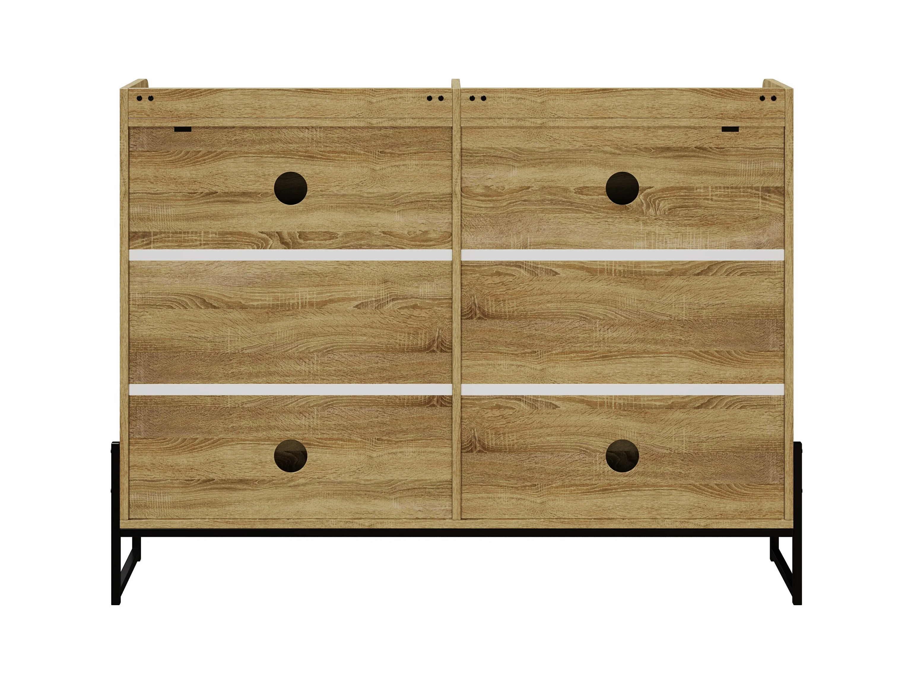 Meuble à Chaussures Blanc Bicolore 8 Niches - Coloris: Chêne Naturel