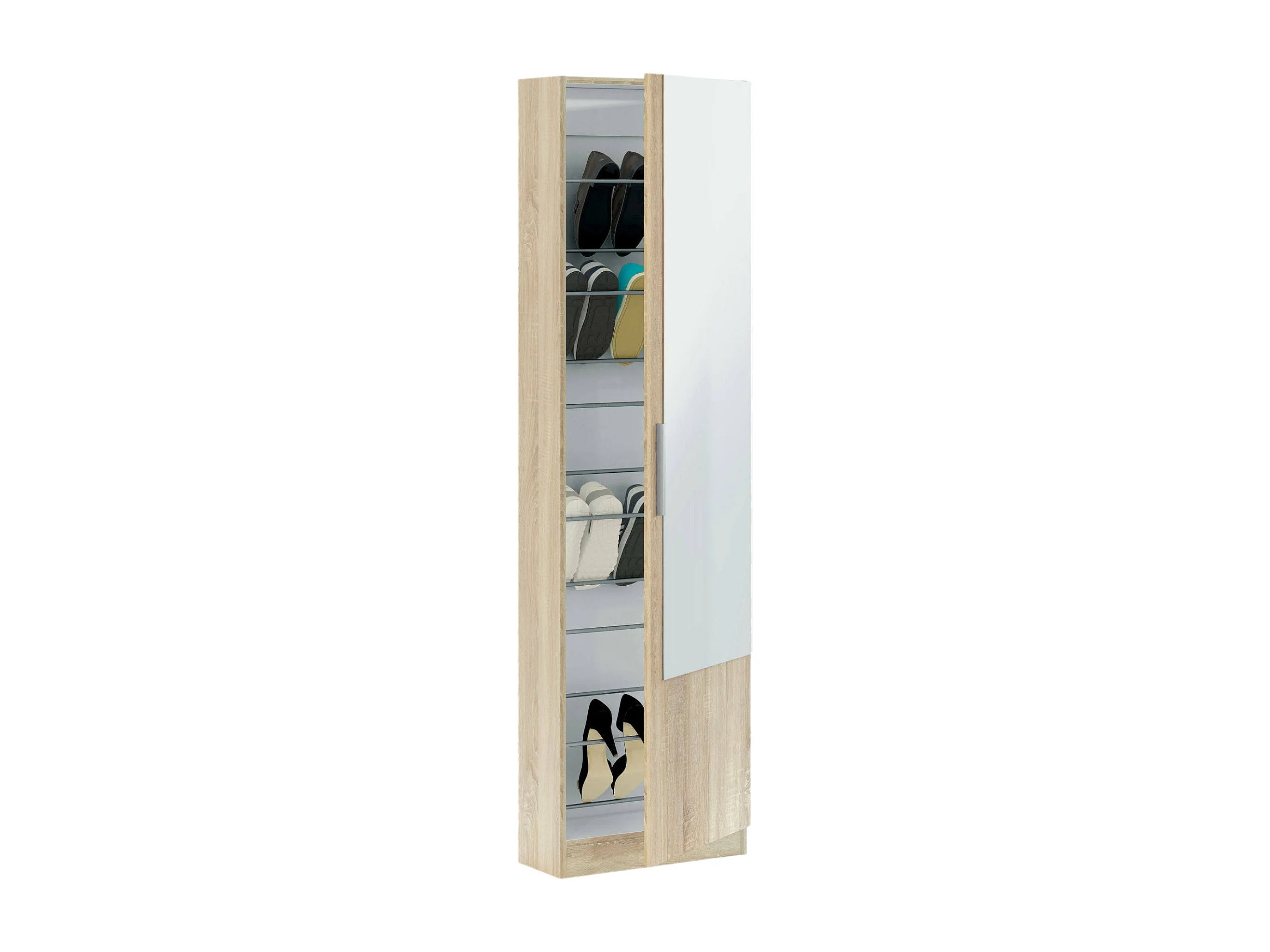 Étagère à chaussures Dcozzol, Armoire à chaussures haute avec 1 porte, Armoire à chaussures moderne, Armoire d'entrée avec miroir, 50x22h180 cm, Chêne