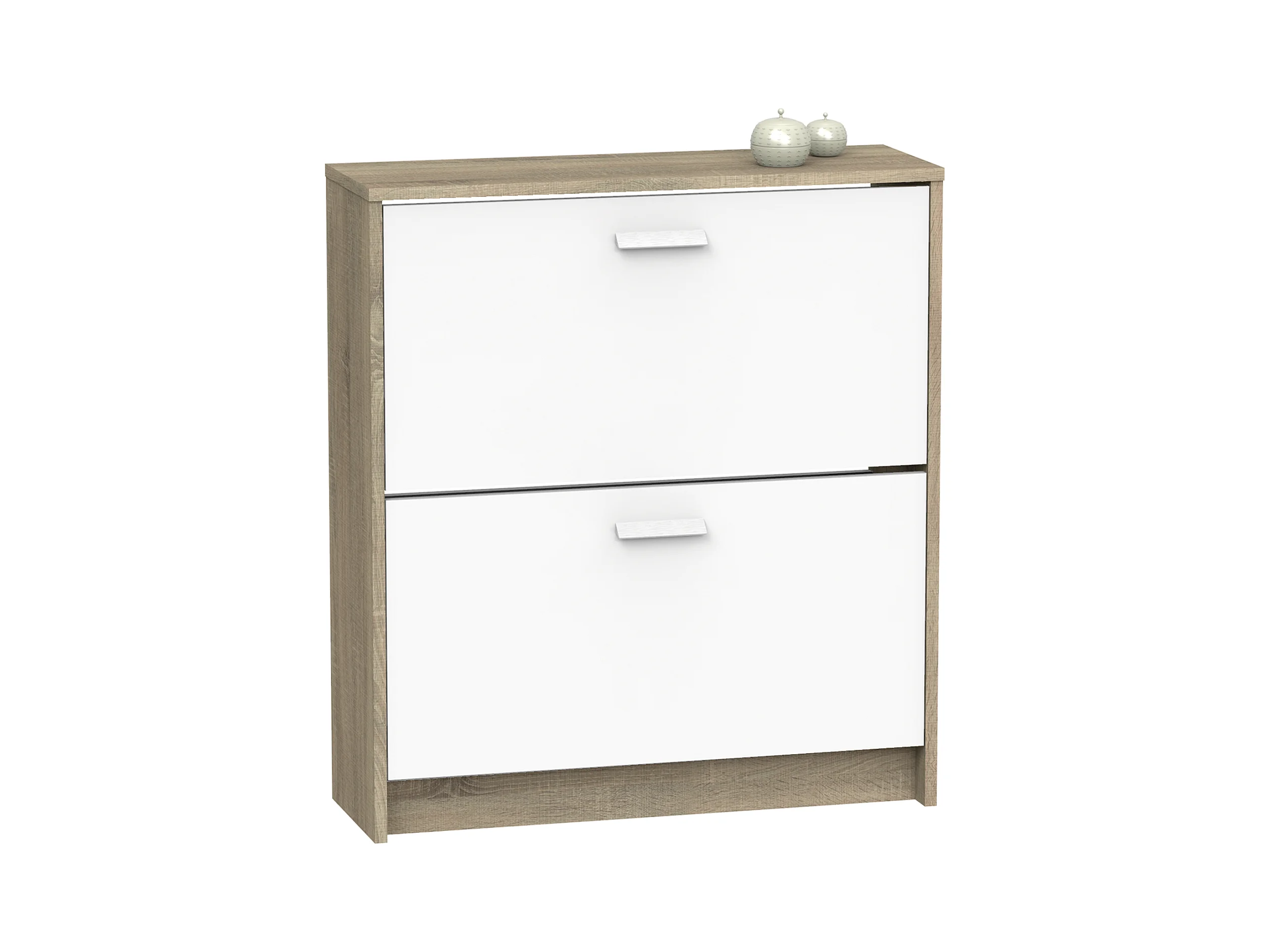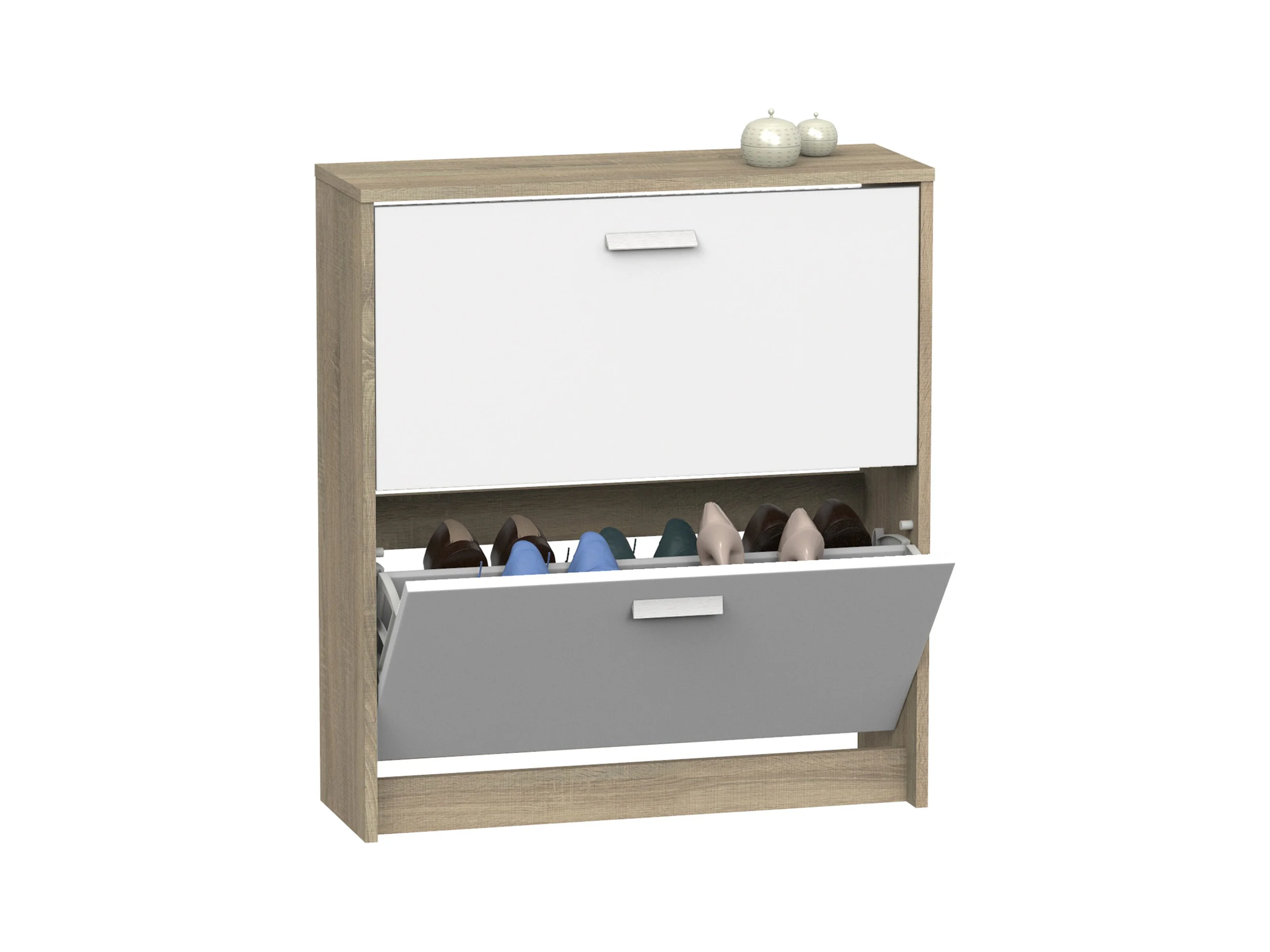 Meuble à chaussures de 2 portes, 12 paires coloris Blanc/Chêne cambrien - Longueur 74 x Profondeur 25 x Hauteur 82 cm