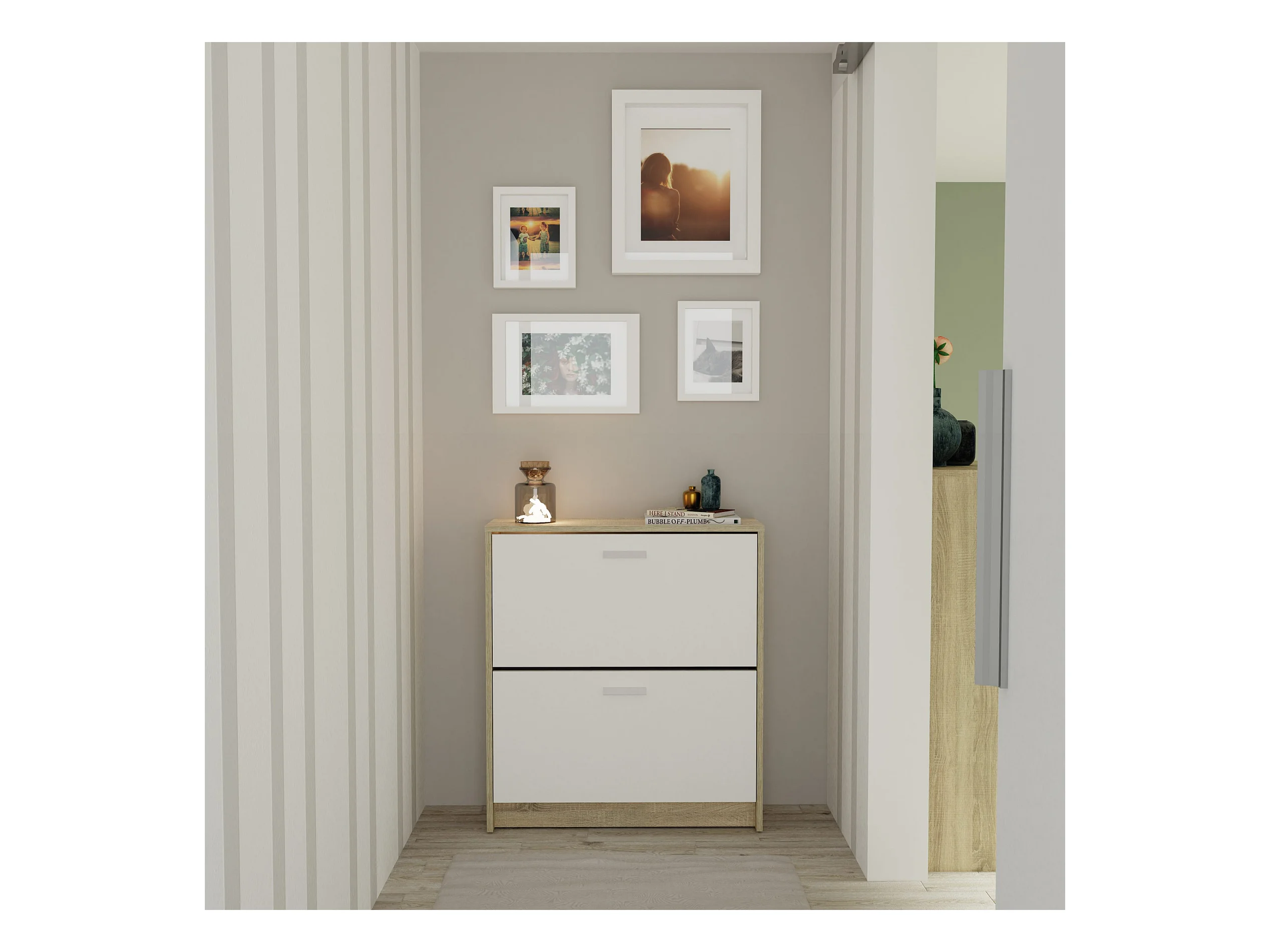Meuble à chaussures avec 2 compartiments abattants et 3 niches - Blanc et naturel - VYLARA