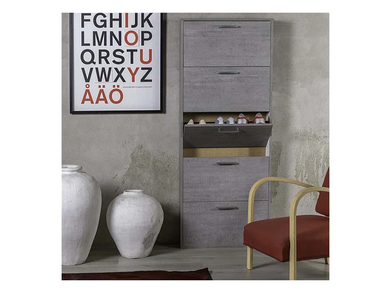 Meuble à chaussures décor béton 5 tiroirs 15 paires H.164 cm - TIDY