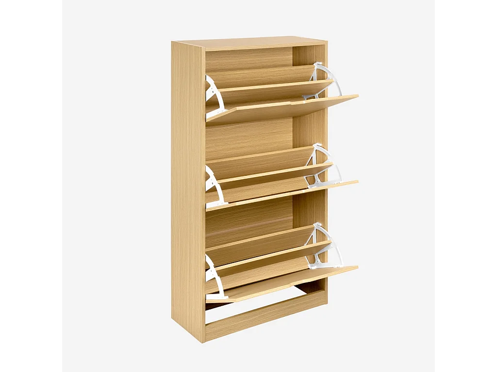 Meuble à chaussures décor bois chêne 3 tiroirs 60 x 23.5 x 119.5 cm - Shooz